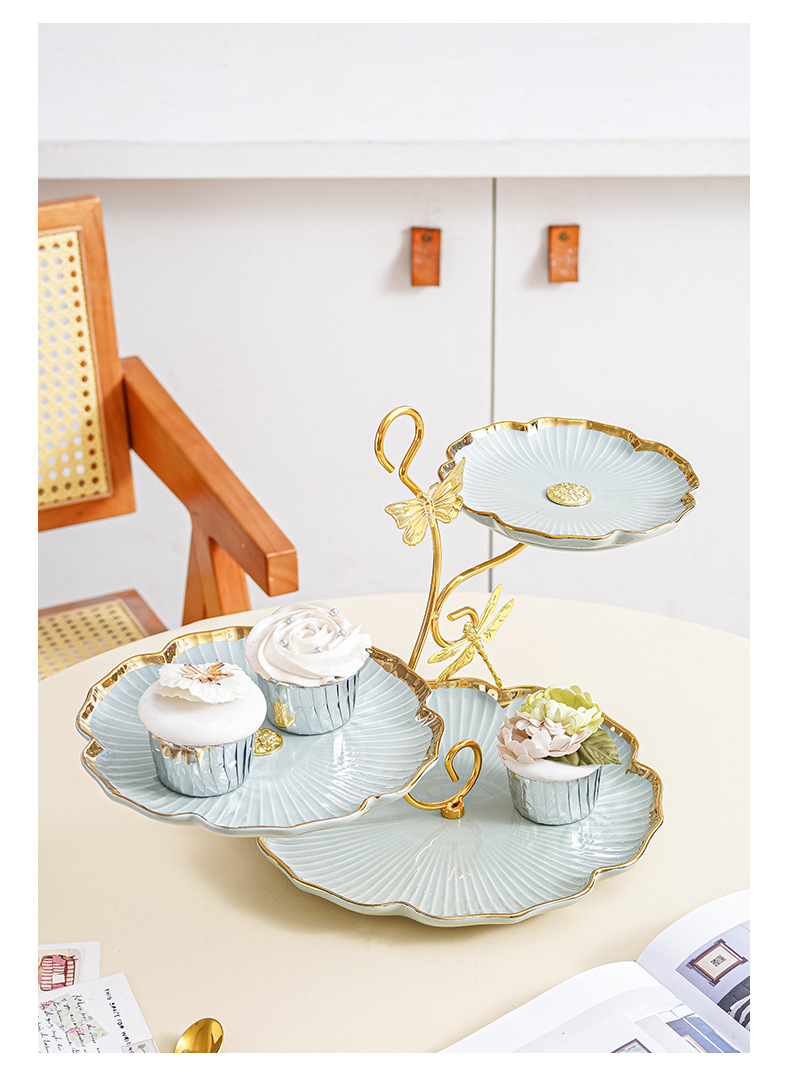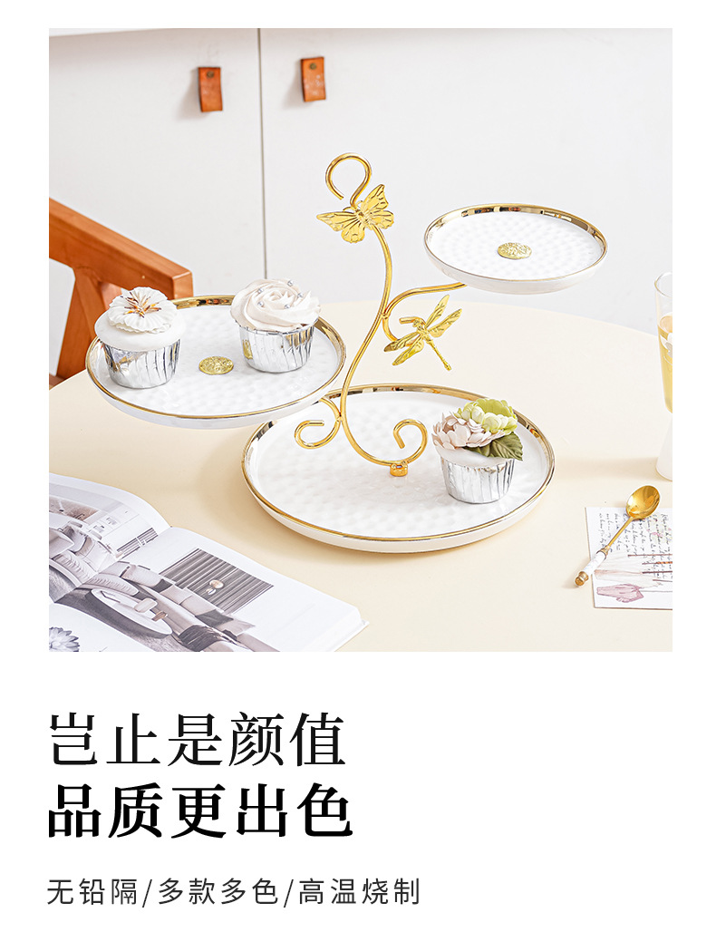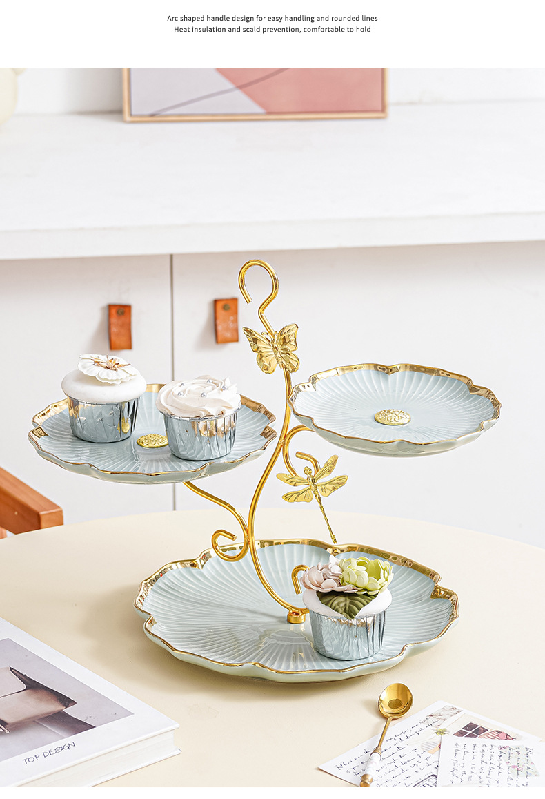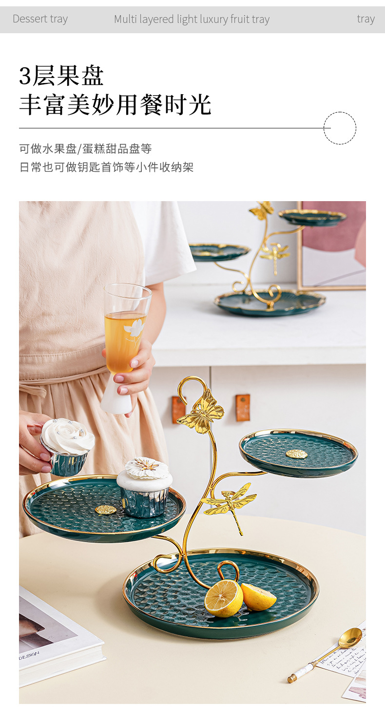 Plato de fruta de lujo ligero sala de estar mesa de café en casa pantalla de aperitivos plato de dulces de múltiples capas estante de aperitivos mesa de postre pantalla de la torta