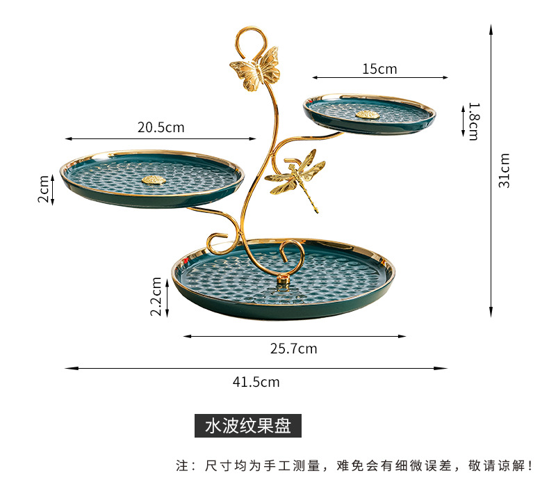 | Color | Plato de fruta multicapa con ondulación de agua (verde),Plato de fruta de múltiples capas de ondulación de agua (blanco),Plato de fruta multicapa a rayas de encaje (verde),Plato de fruta multicapa a rayas de encaje (blanco),Plato de fruta de múltiples capas a rayas de encaje (Matcha Green) |
