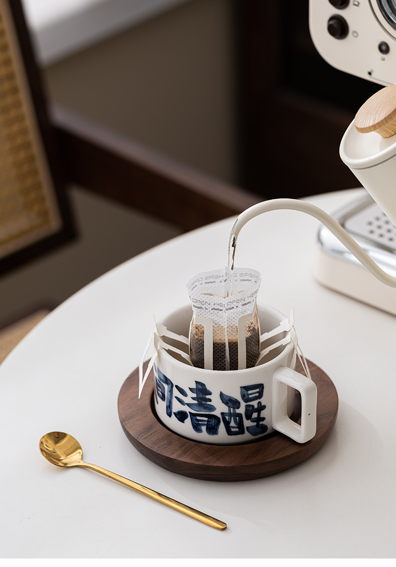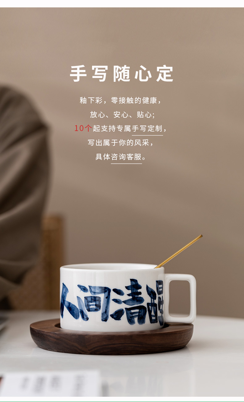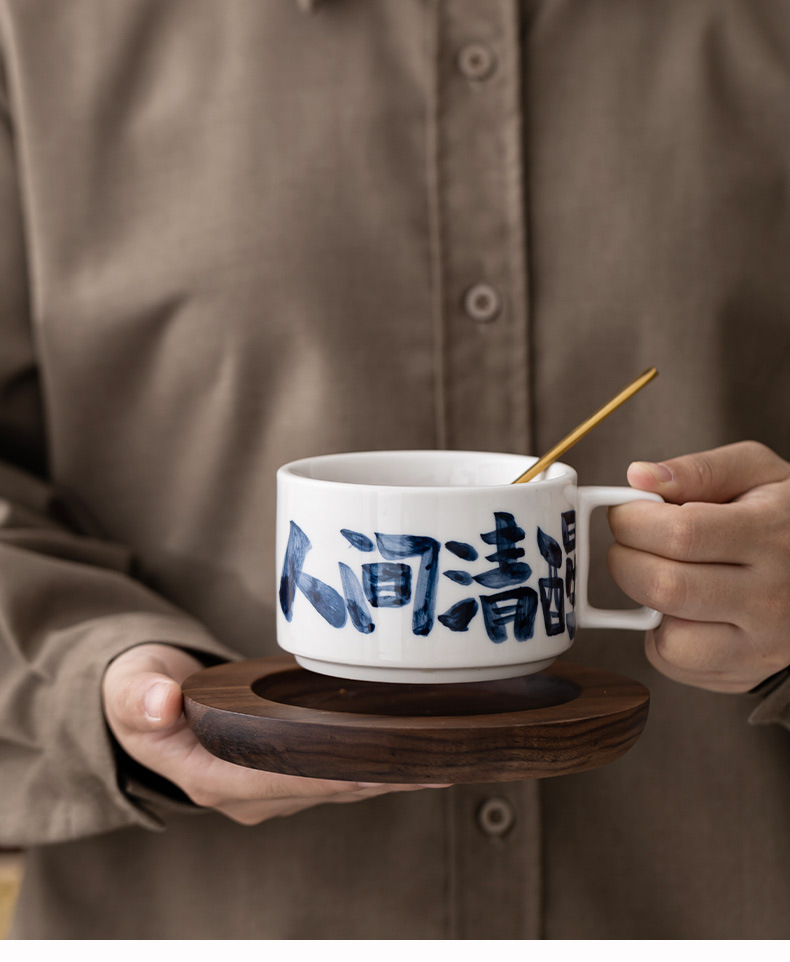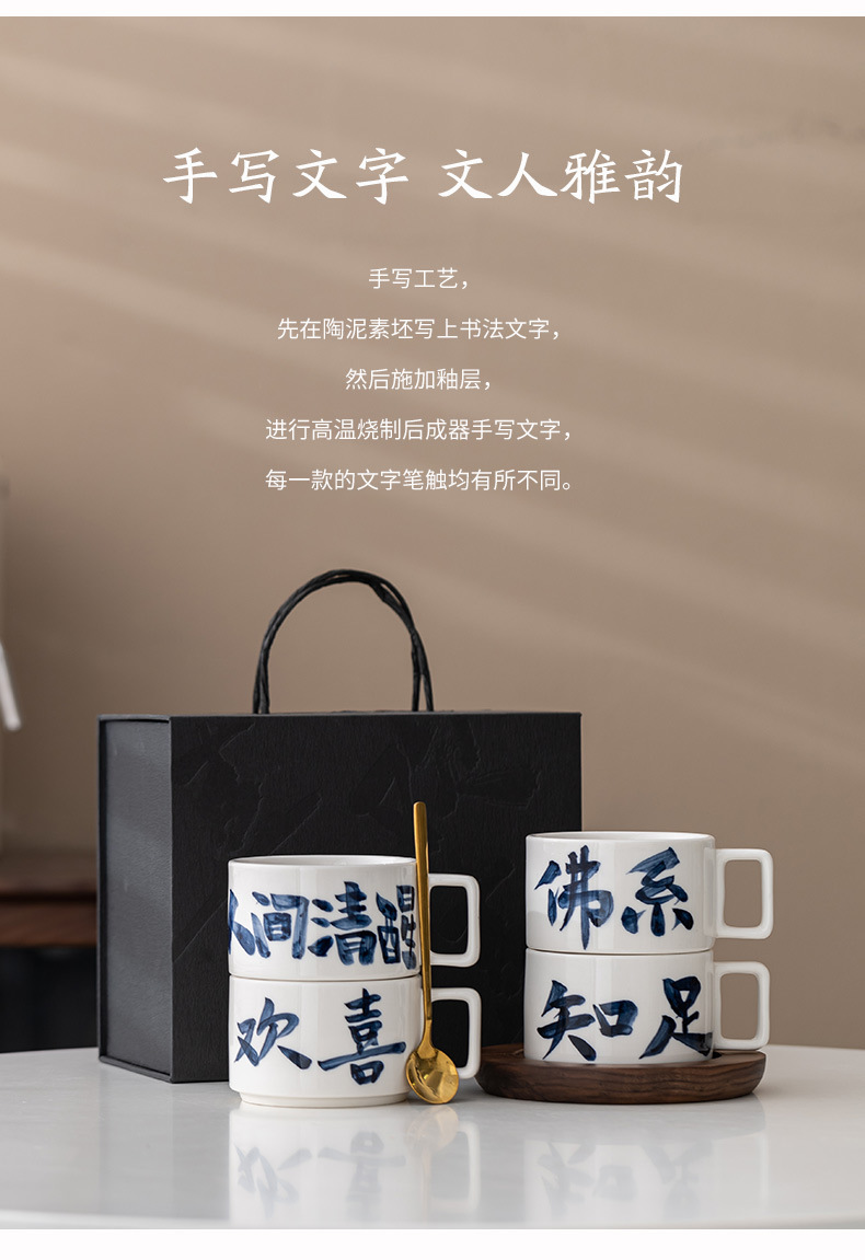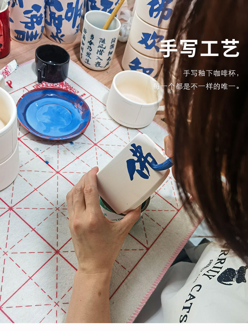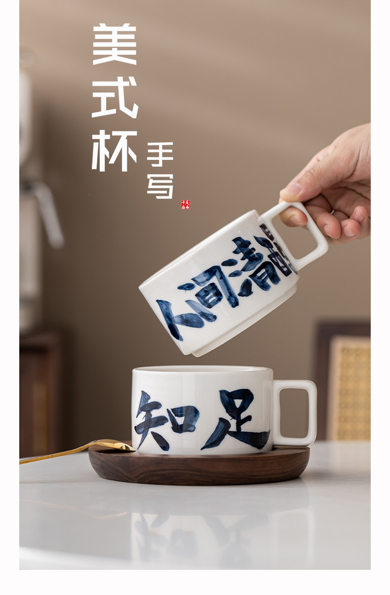 Taza de café americana Taza de cerámica pintada a mano Taza de escritura a mano Taza de agua de color bajo vidriado Conjunto personalizado Regalo de mano al por mayor