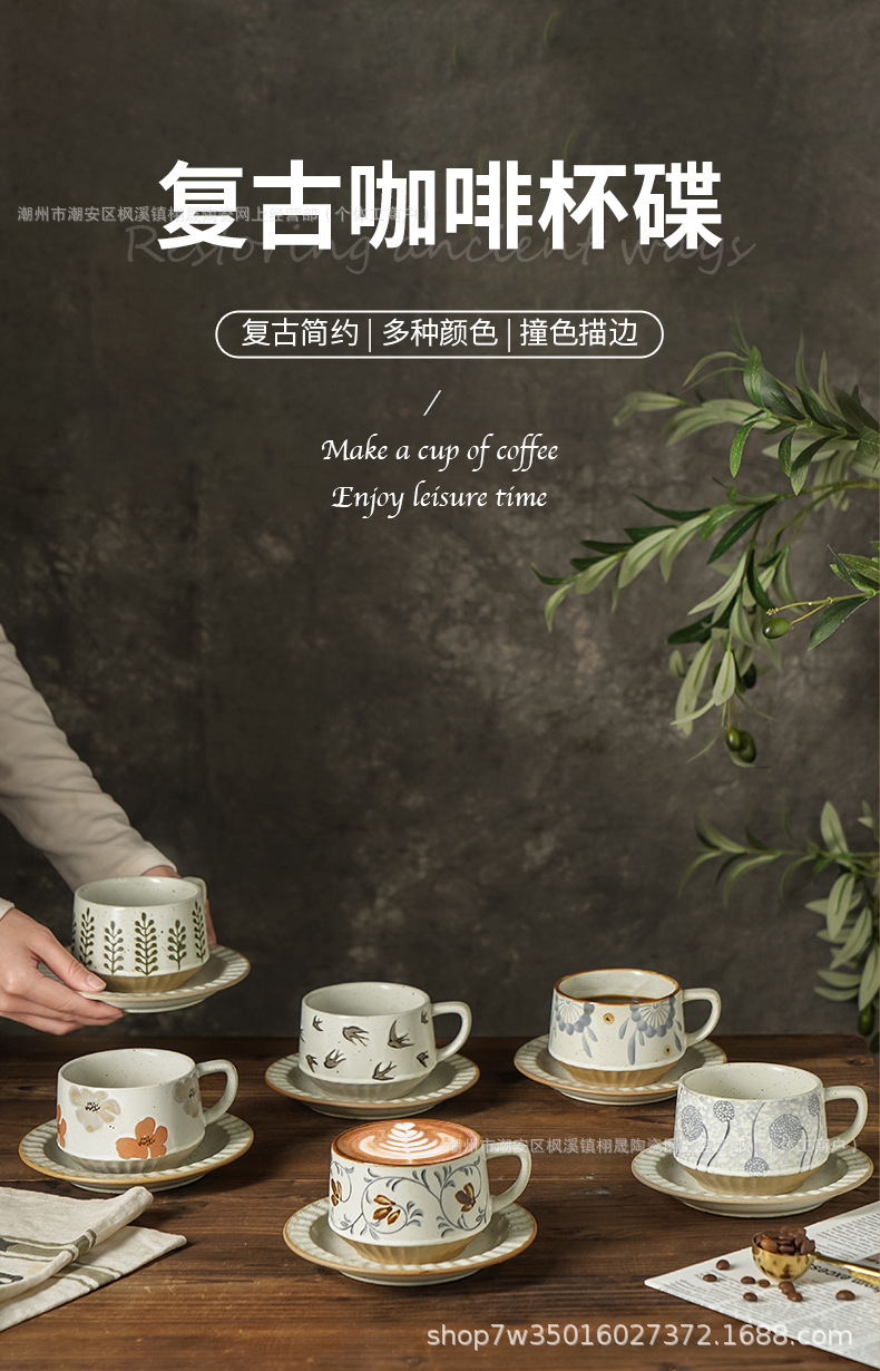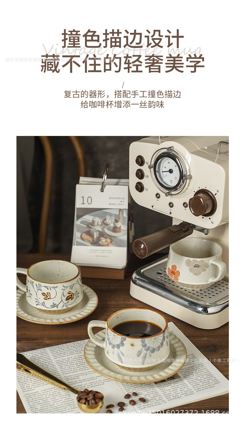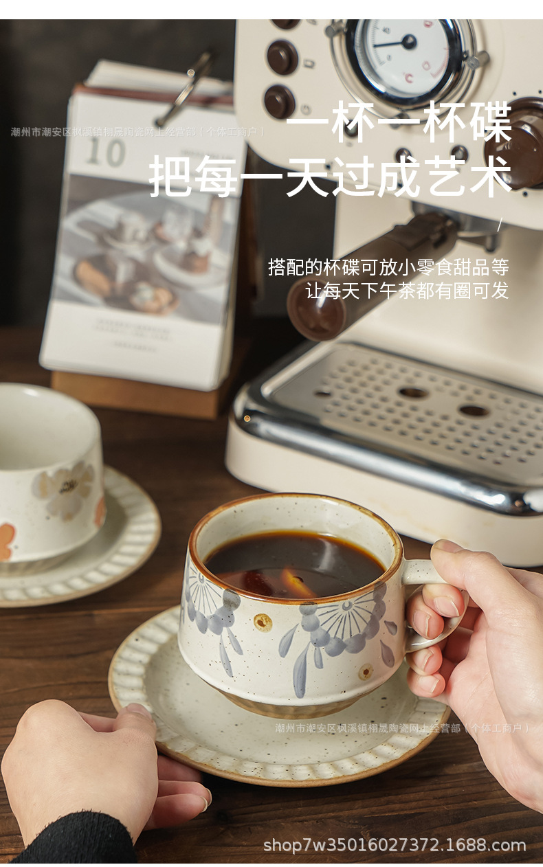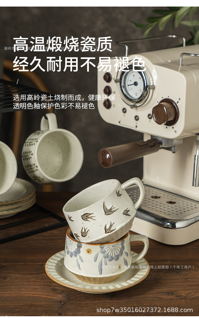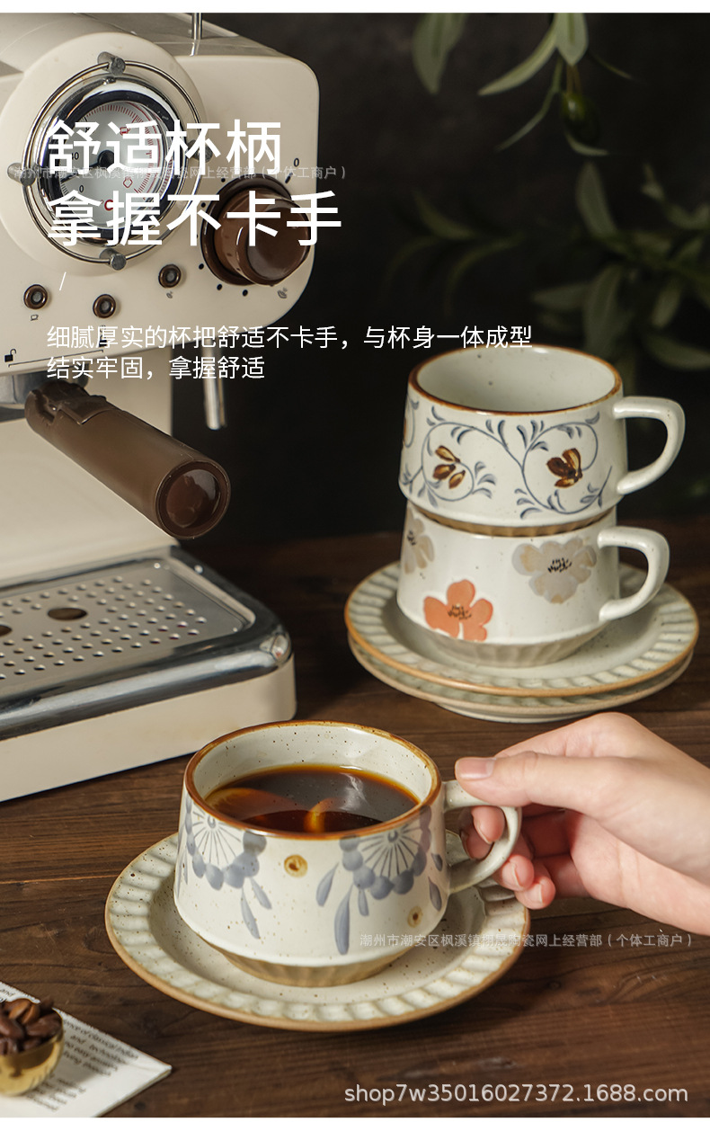 Tazas de café de cerámica retro japonesa y platos de cerámica, tazas de café de color especial para café de hotel