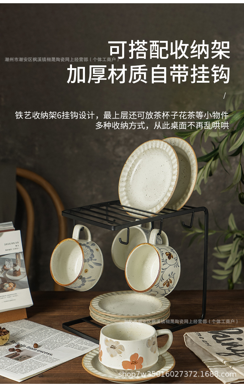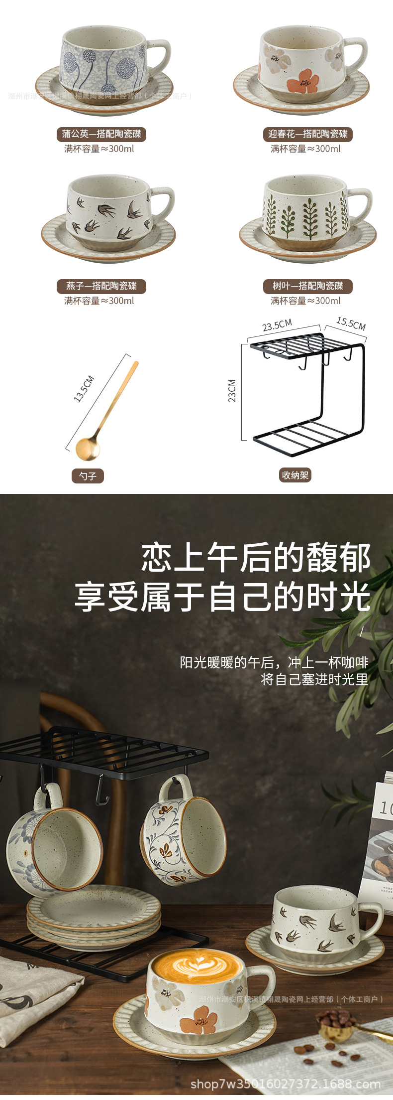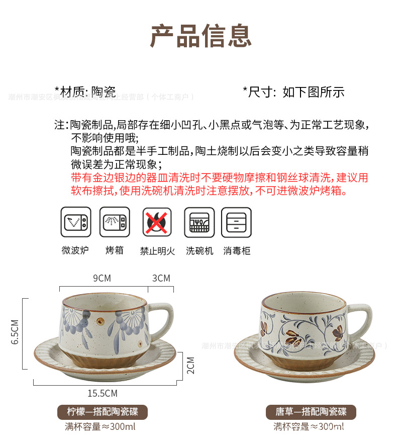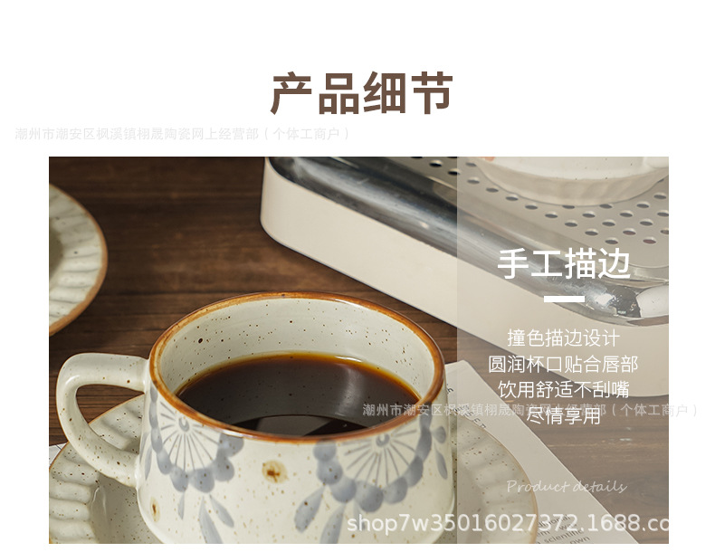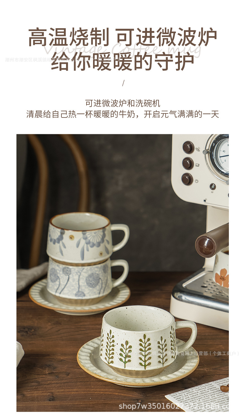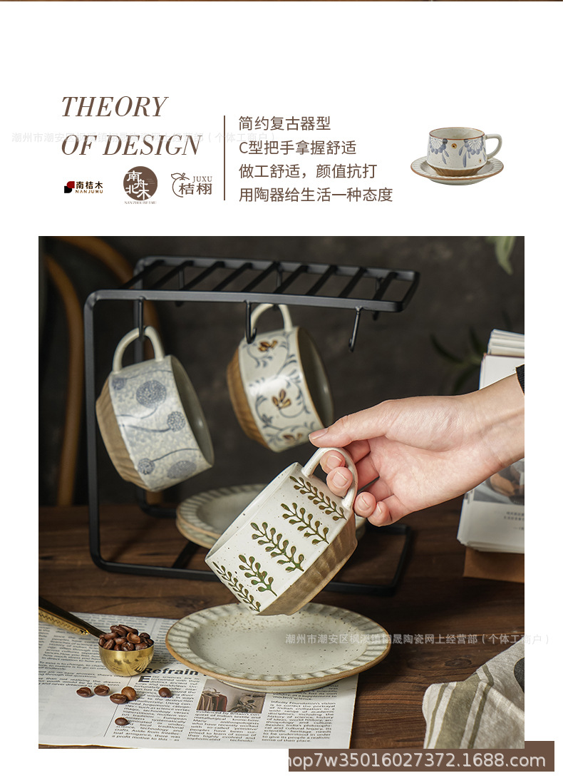 Tazas de café de cerámica retro japonesa y platos de cerámica, tazas de café de color especial para café de hotel