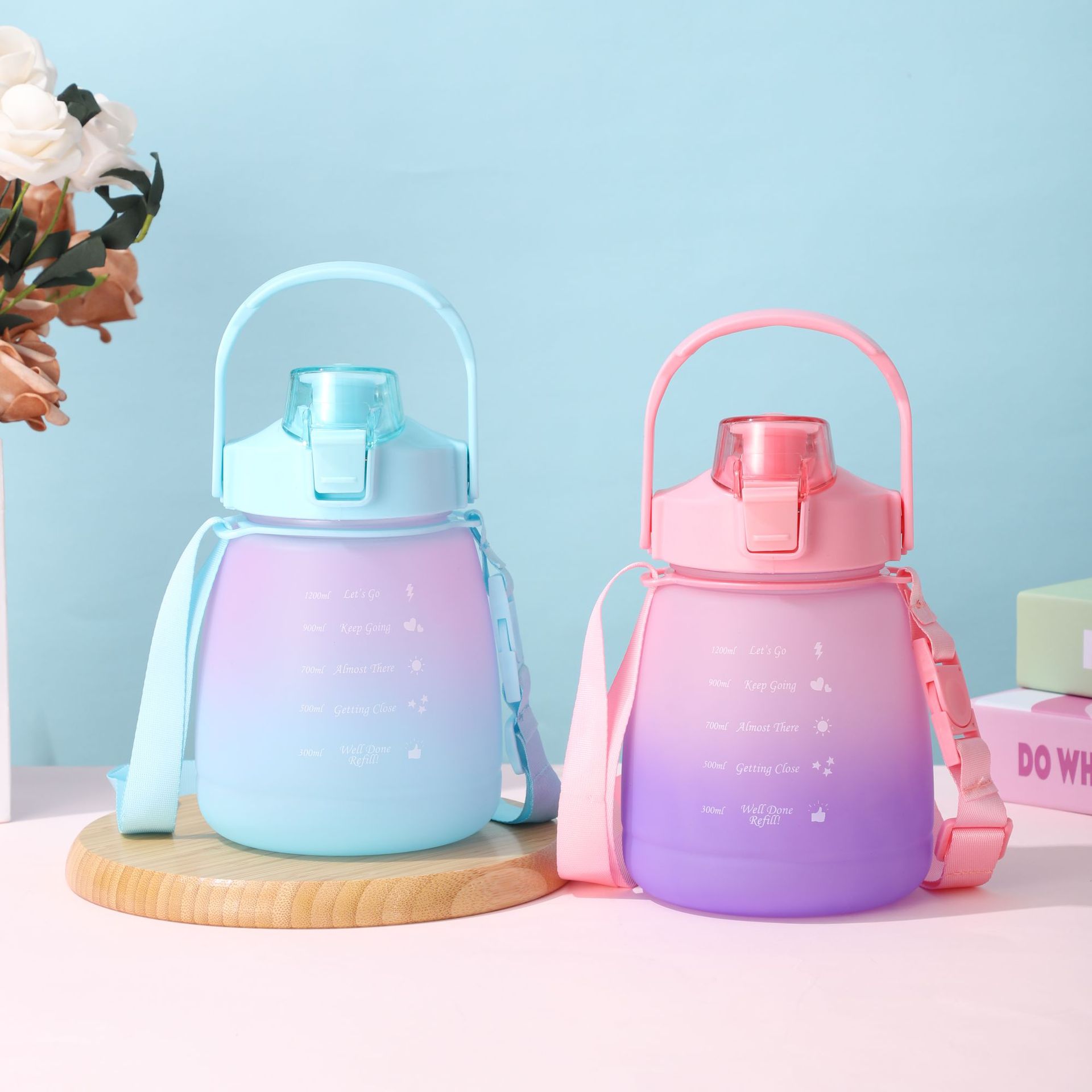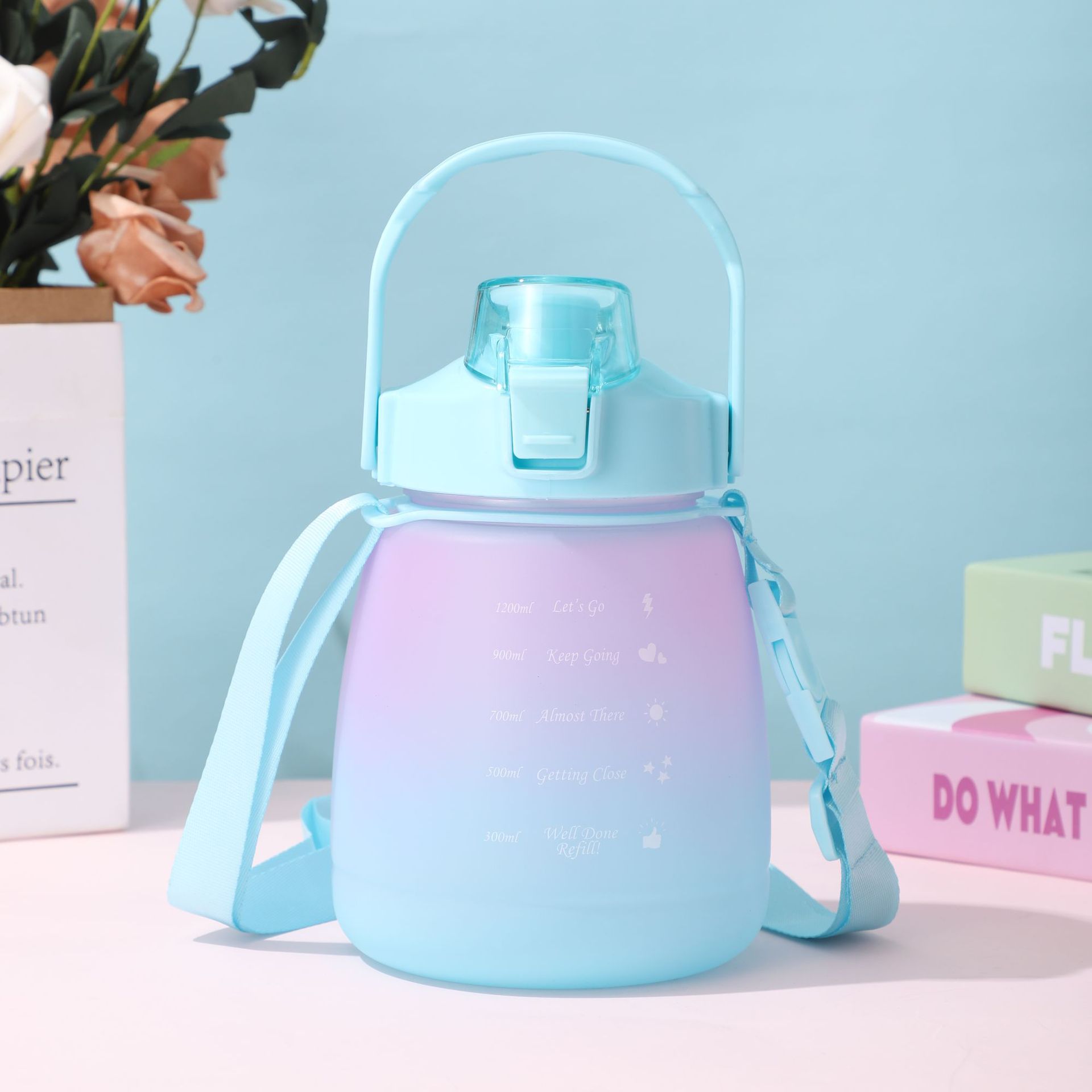Estudiante gradiente gran vientre taza de alto aspecto de gran capacidad taza de vacío niños correa de hombro portátil taza de agua paja deportes taza de agua