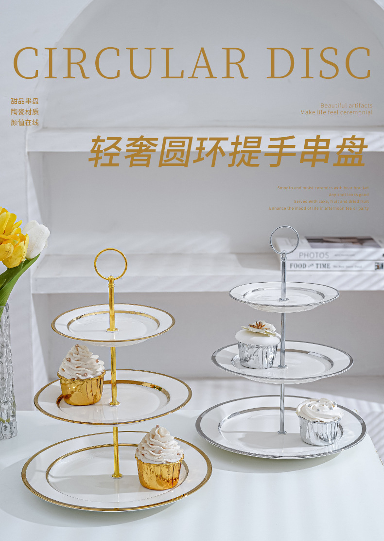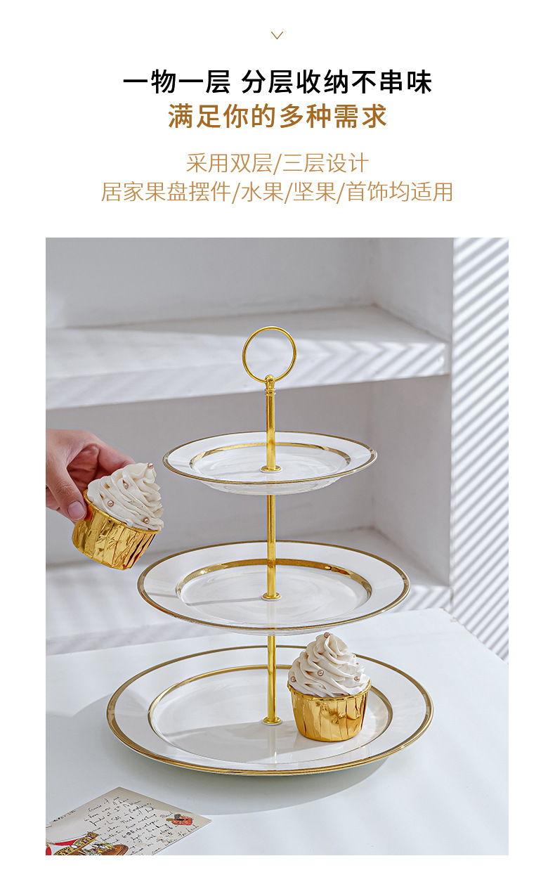 Plato de fruta de tres capas mesa de café de la sala de estar hogar plato de caramelo Pantalla de recepción merienda plato de postre de té de la tarde plato de postre