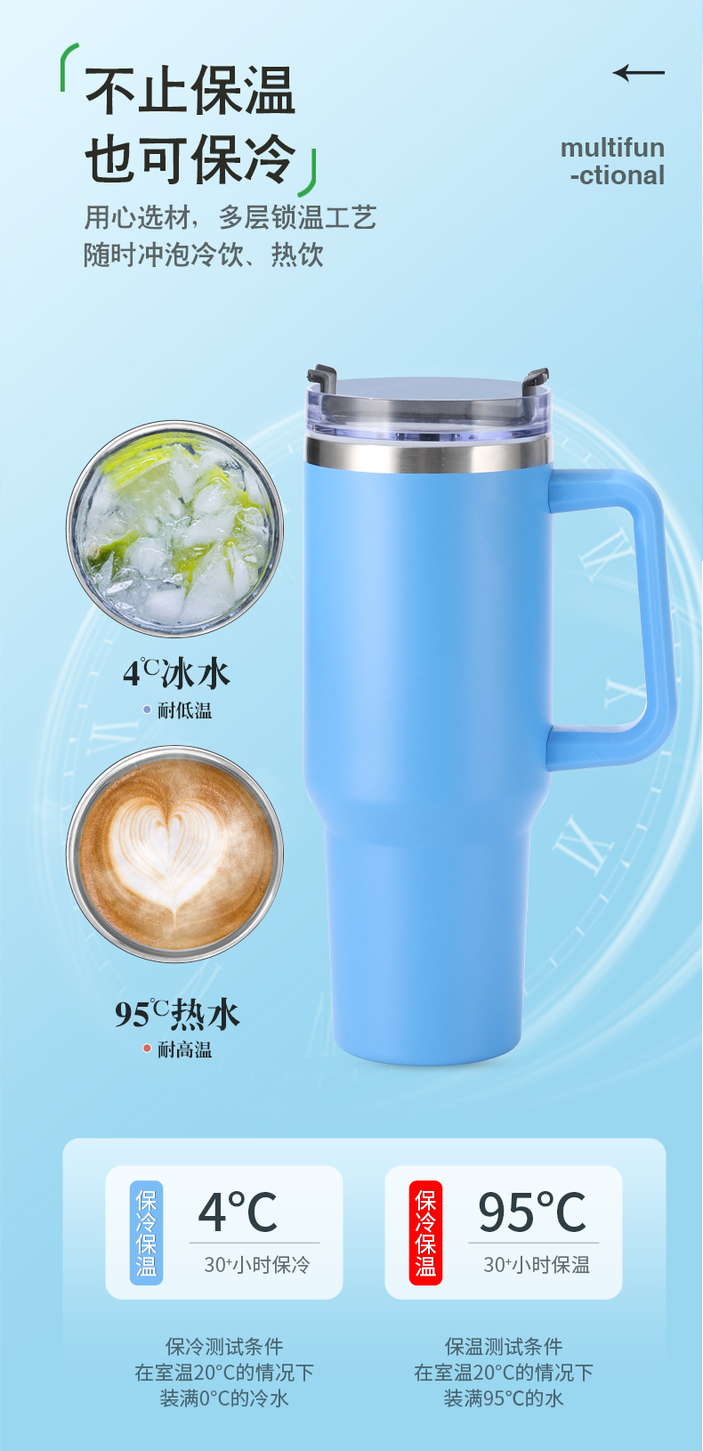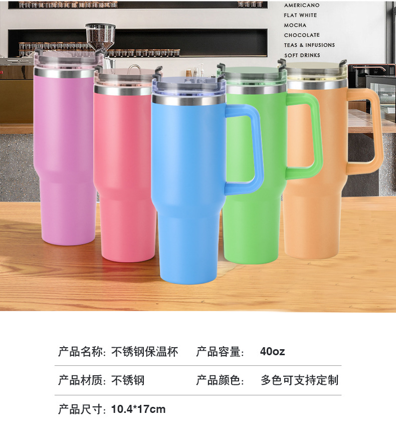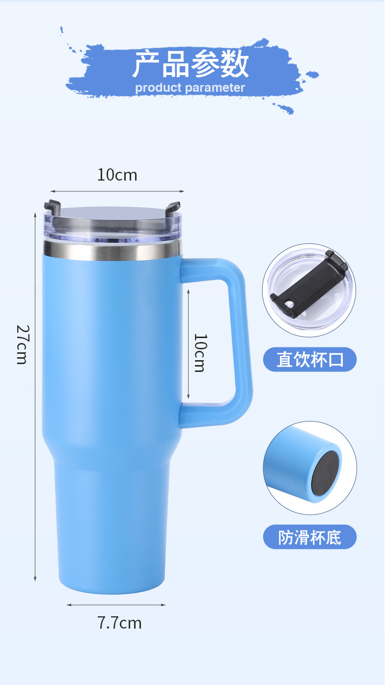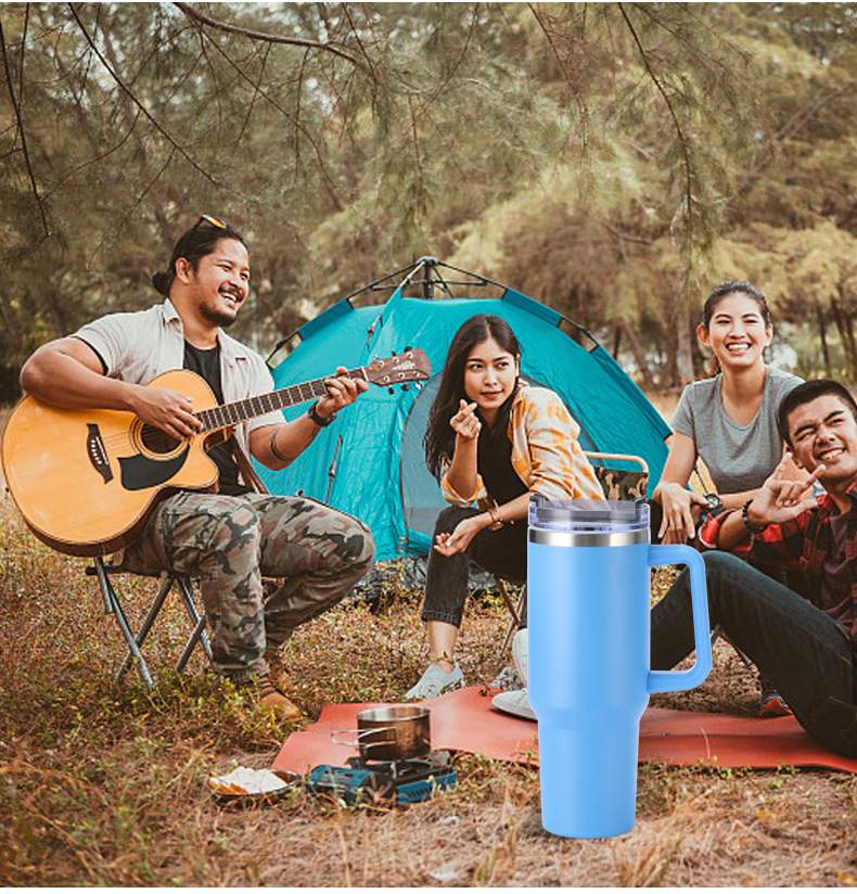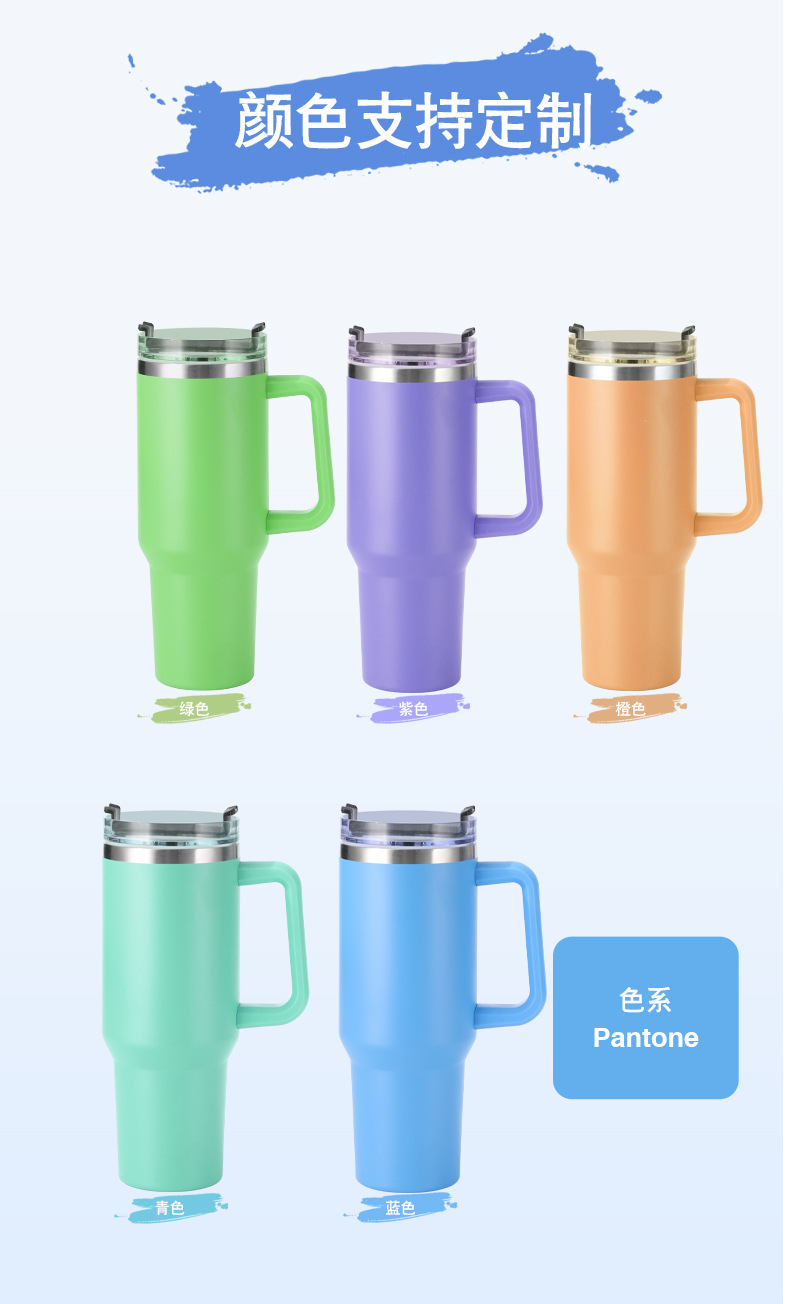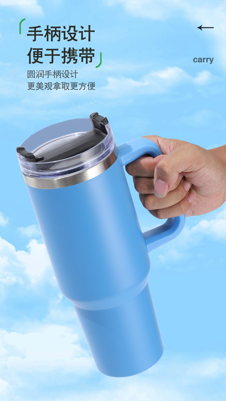 Taza de vacío taza de agua de doble capa de acero inoxidable 304 taza de agua con paja 40oz con mango Copa de coche fábrica al por mayor