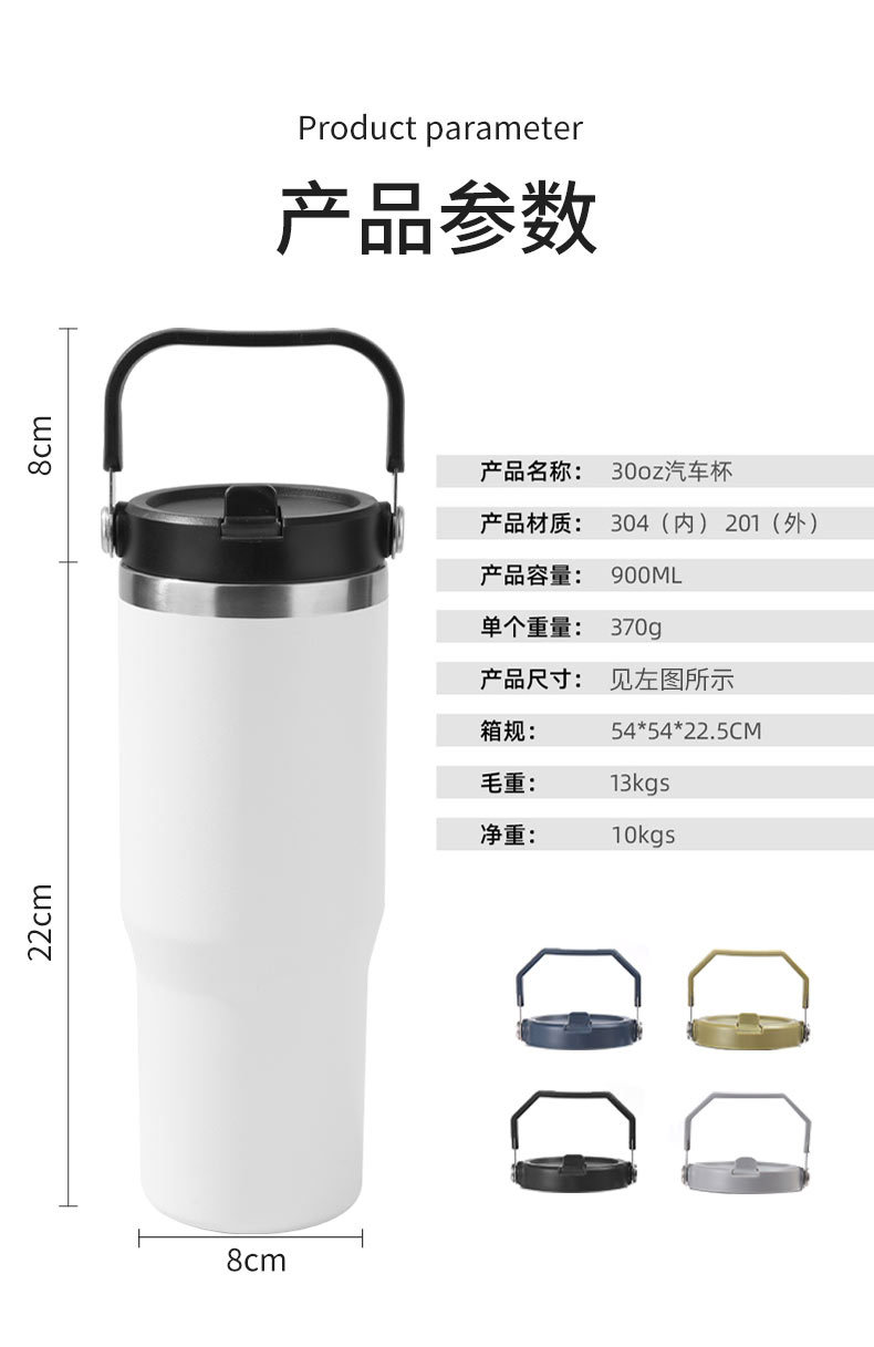 Cruz-frontera 30oz coche taza de gran capacidad de acero inoxidable aislamiento térmico helado taza conveniente coche taza de agua fábrica al por mayor