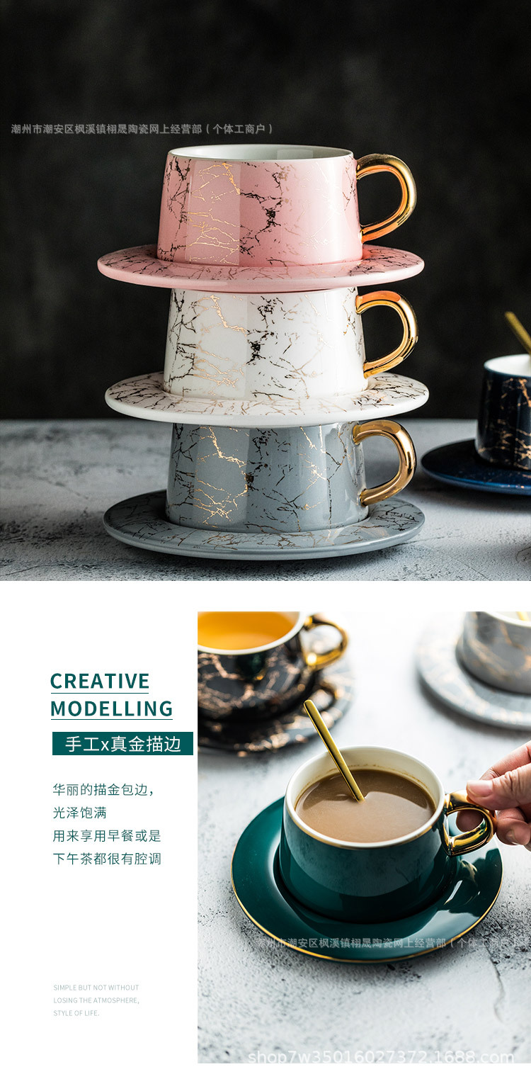 Tazas de café de lujo europeas de cerámica de oficina Taza de té de la tarde Taza de té de flores de oficina