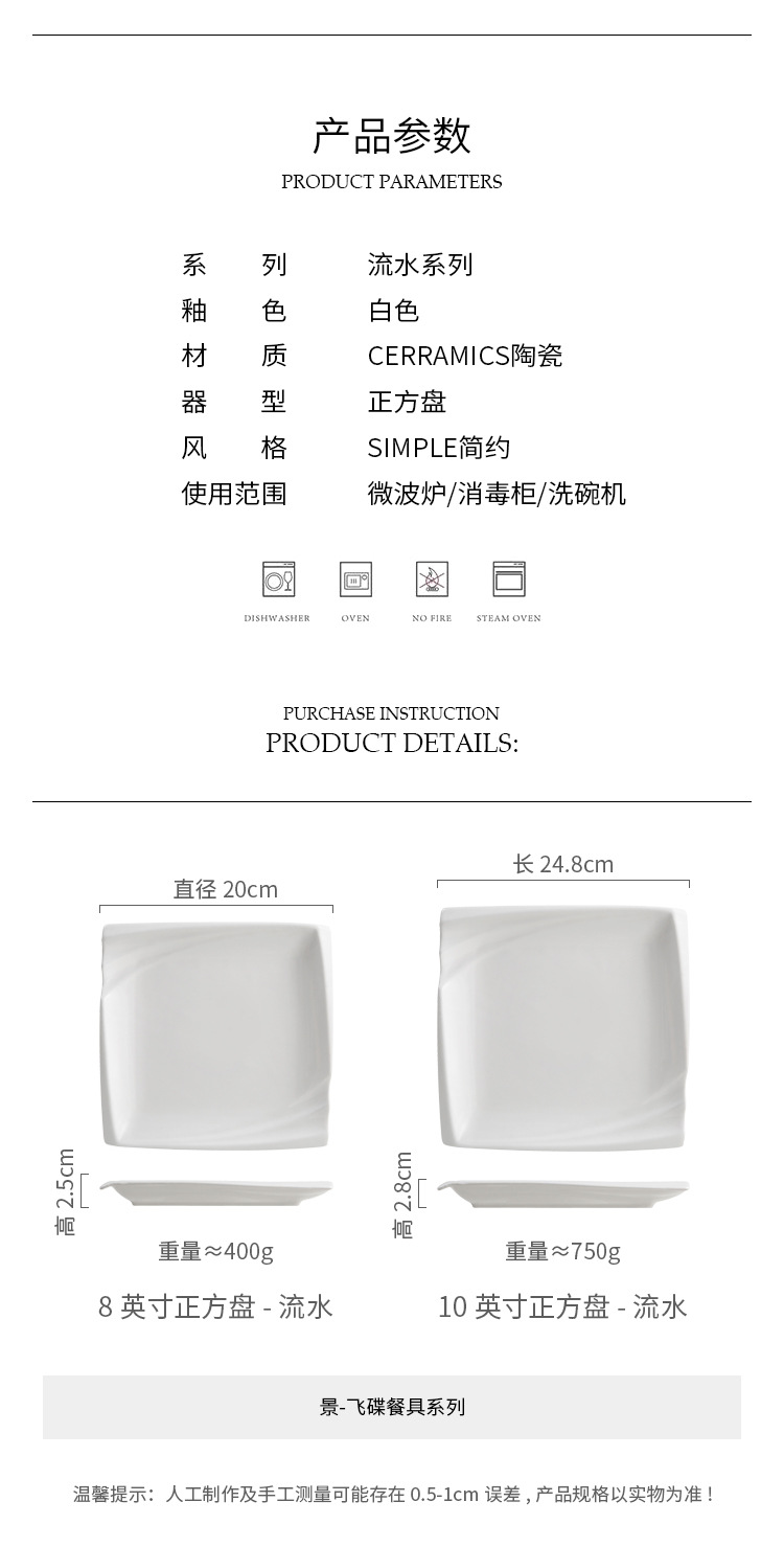 | Color | Placa cuadrada de 8 pulgadas - agua corriente, Placa cuadrada de 10 pulgadas - agua corriente |