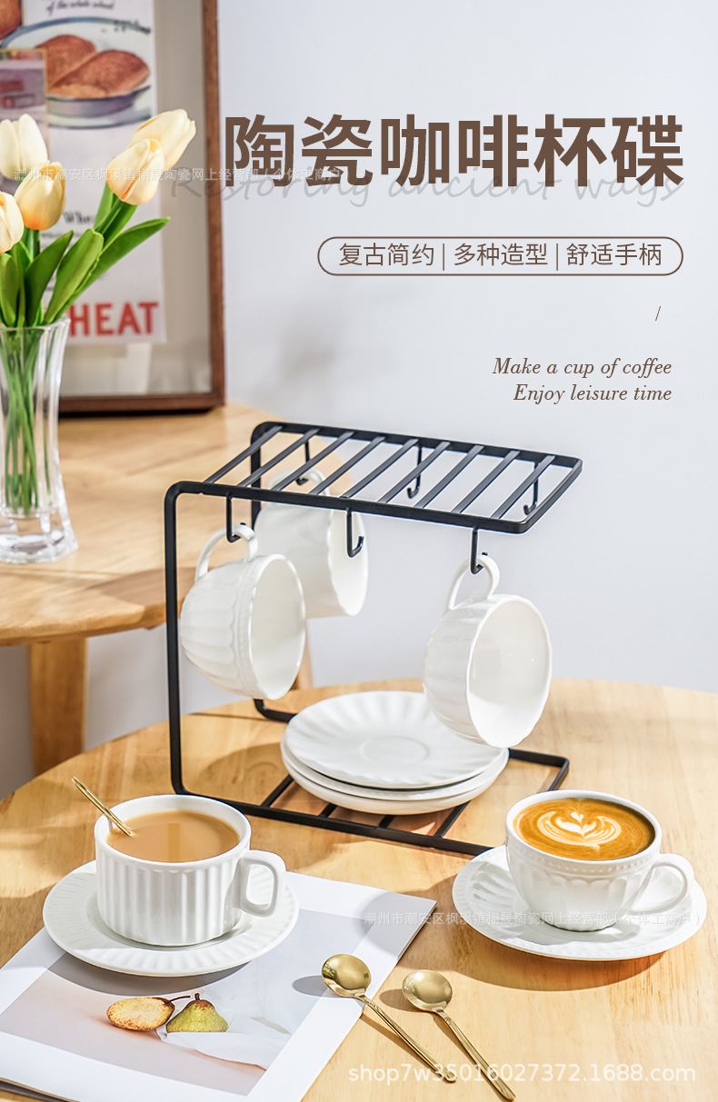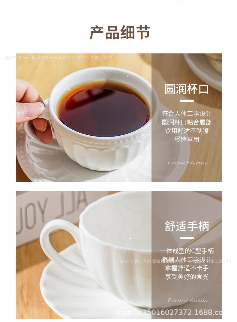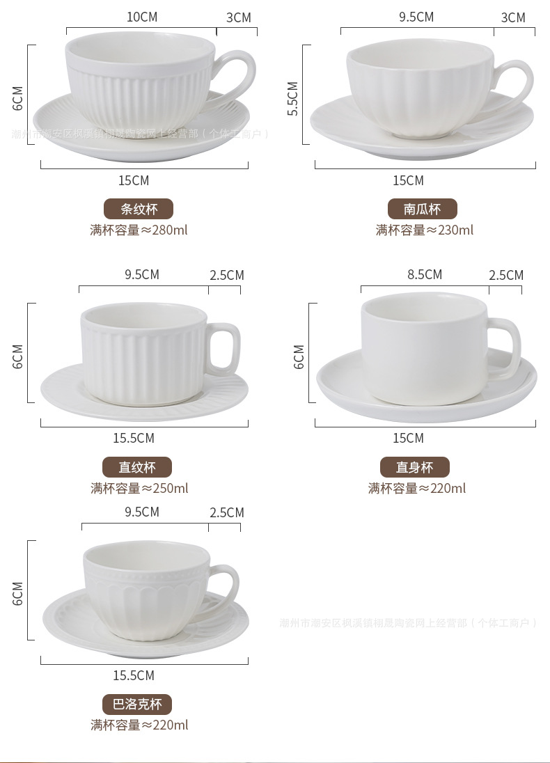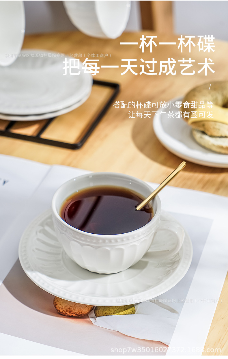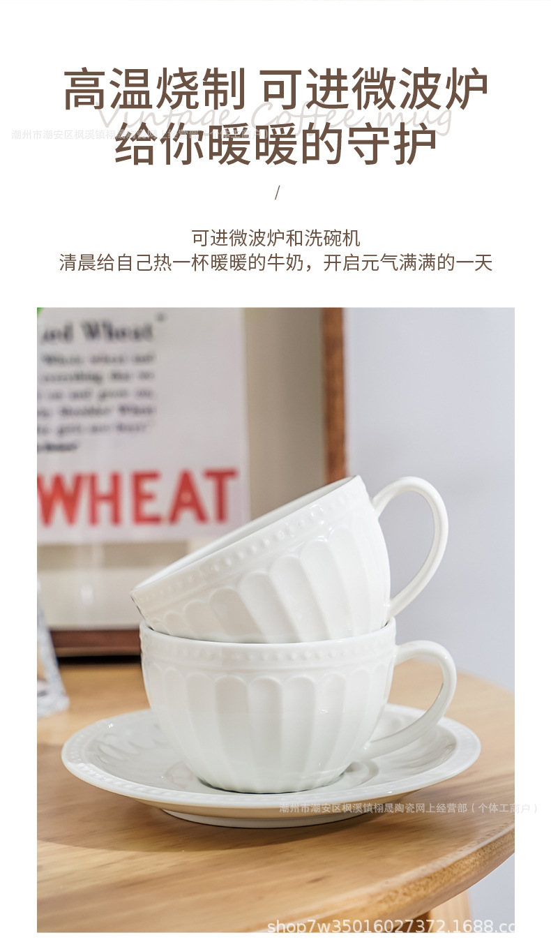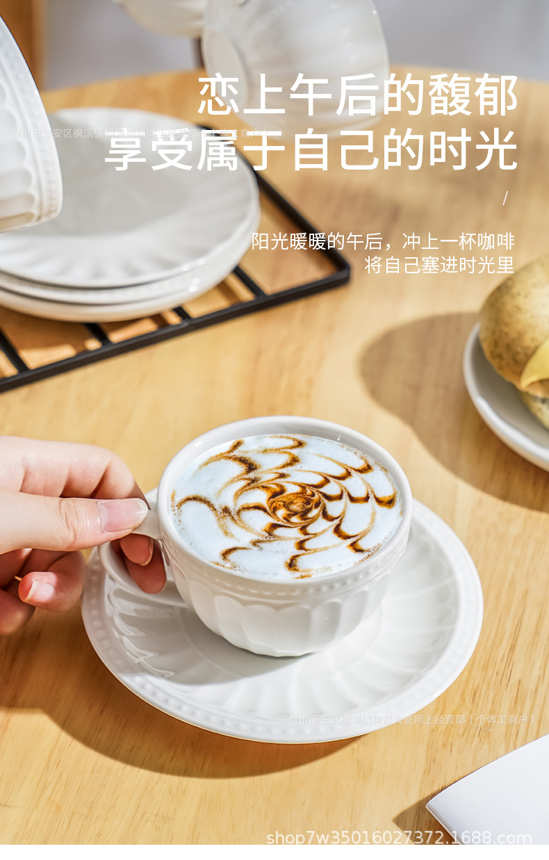 Juego de tazas y platillos de café de hotel Taza de cerámica blanca pura simple Taza de té de la mañana Juego de té de la tarde Taza de desayuno Taza de té con flores