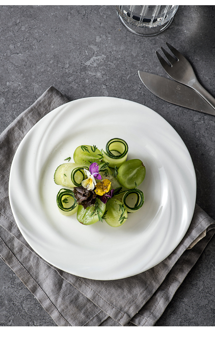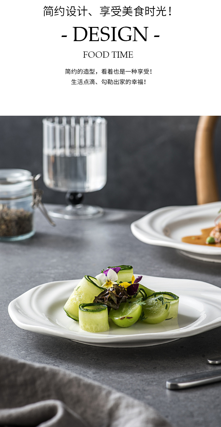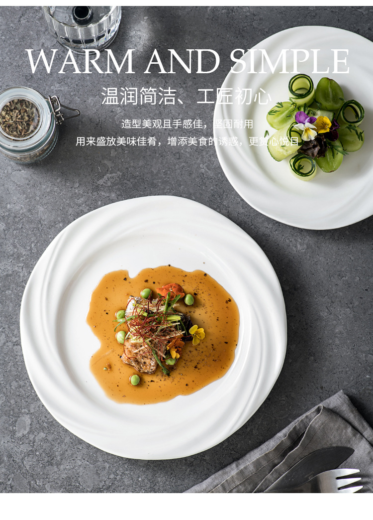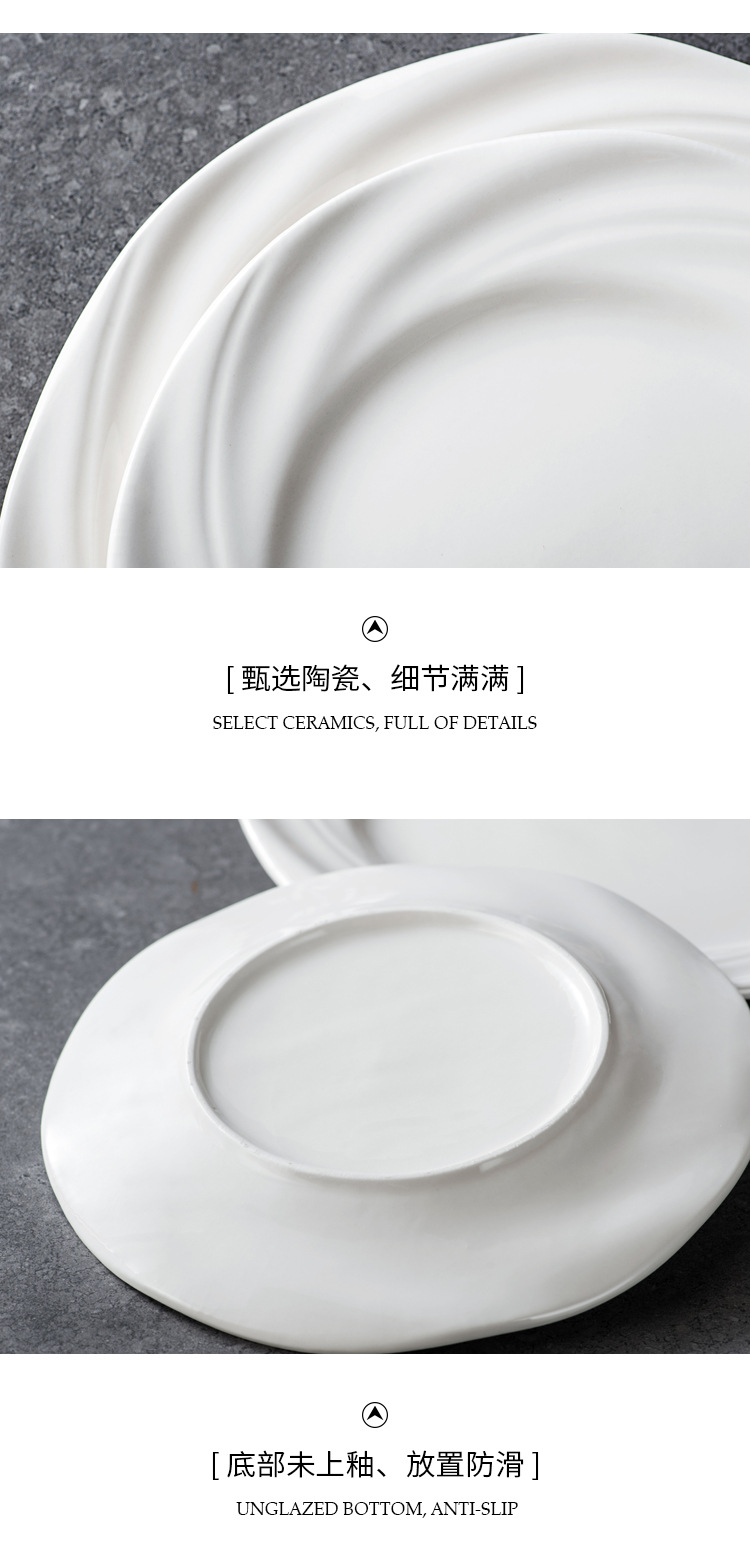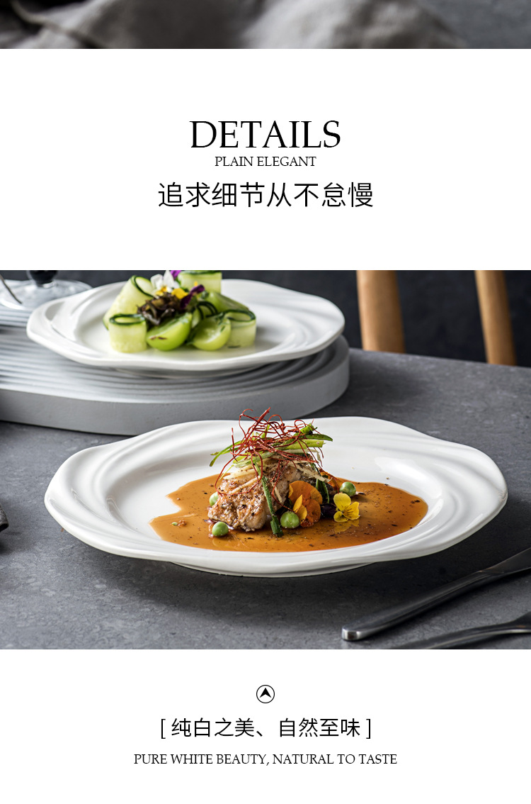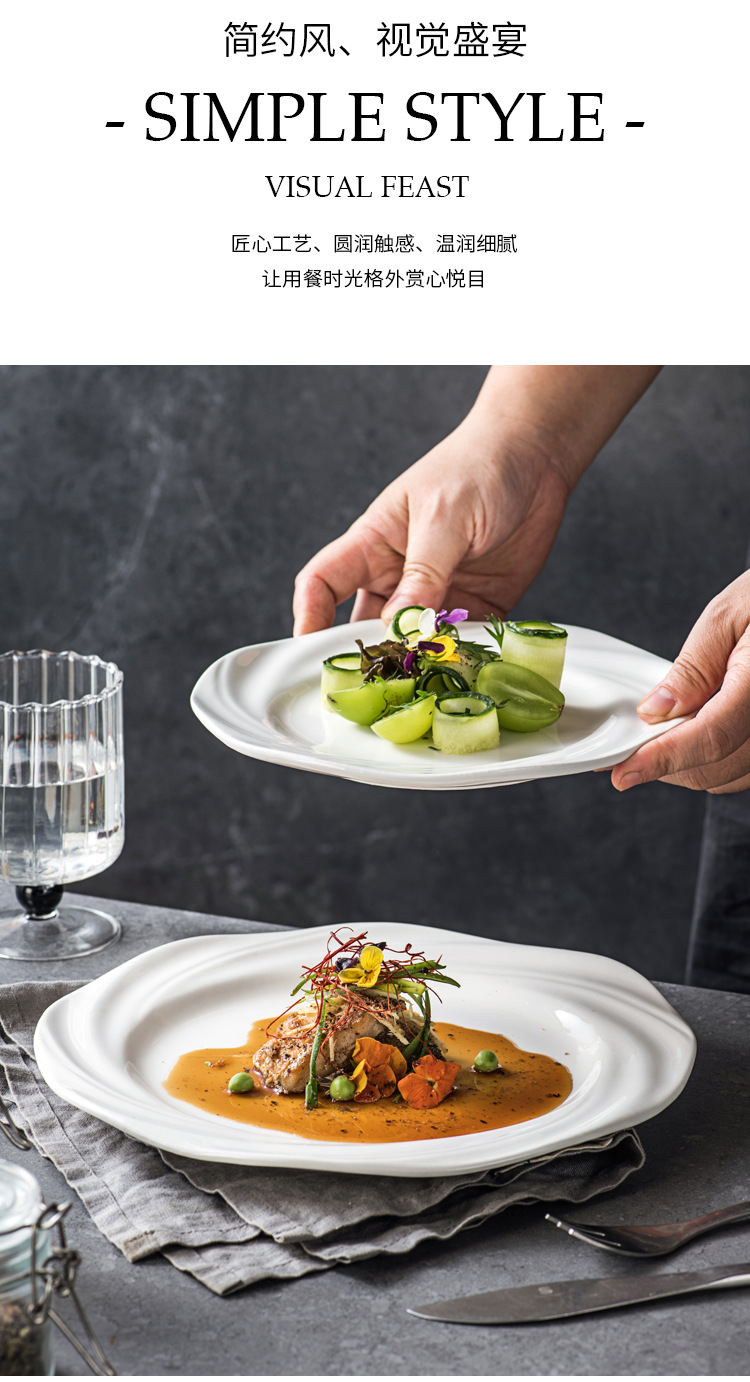 Plato blanco puro plato de comida occidental plato de pasta plato de desayuno sensación de diseño plato de platos caseros plato de pastel creativo plato de filete de estilo occidental