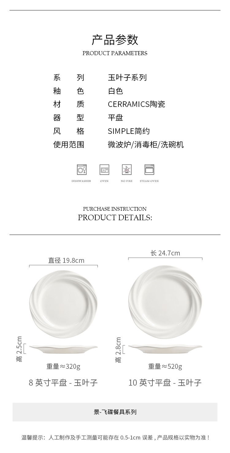 | Color | Plato plano de 8 pulgadas - hoja de jade, plato plano de 10 pulgadas - hoja de jade |