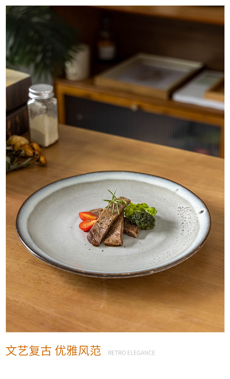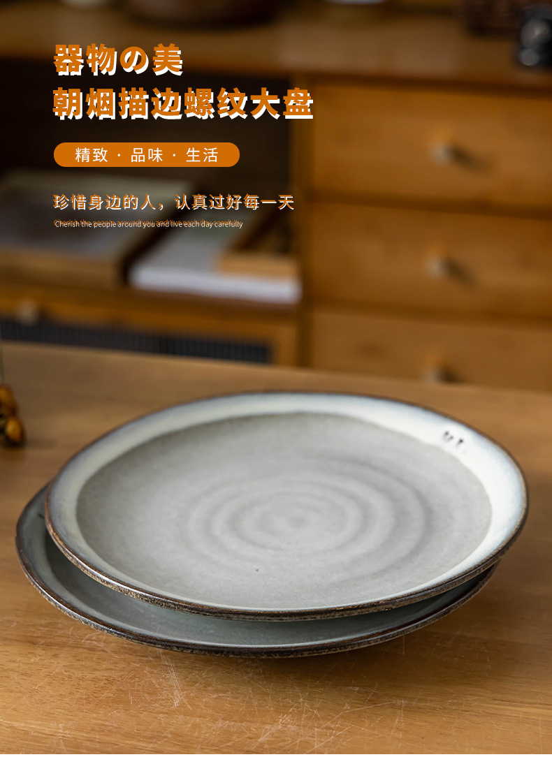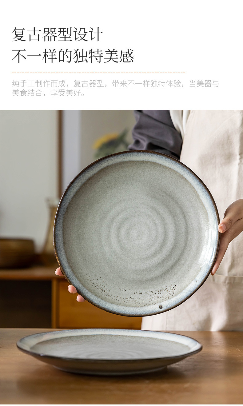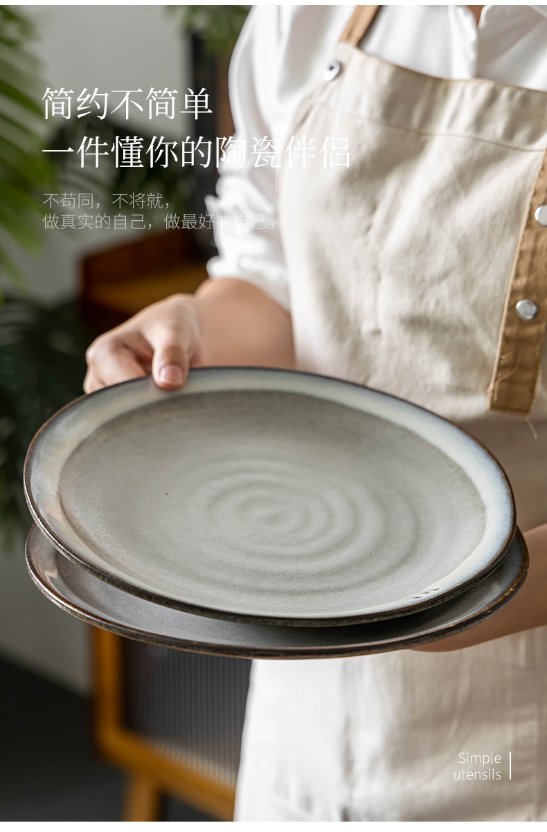 Bandeja plana roscada de viento, plato de cerámica japonesa, vajilla redonda especial para el hogar, plato grande, plato de carne occidental