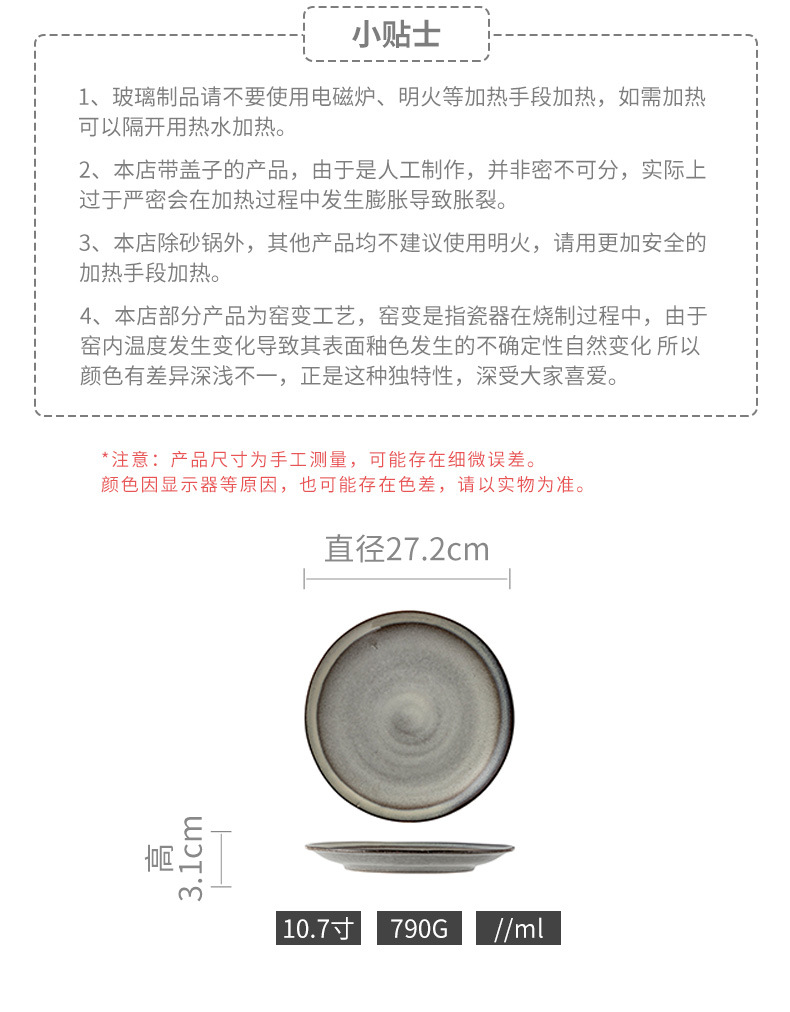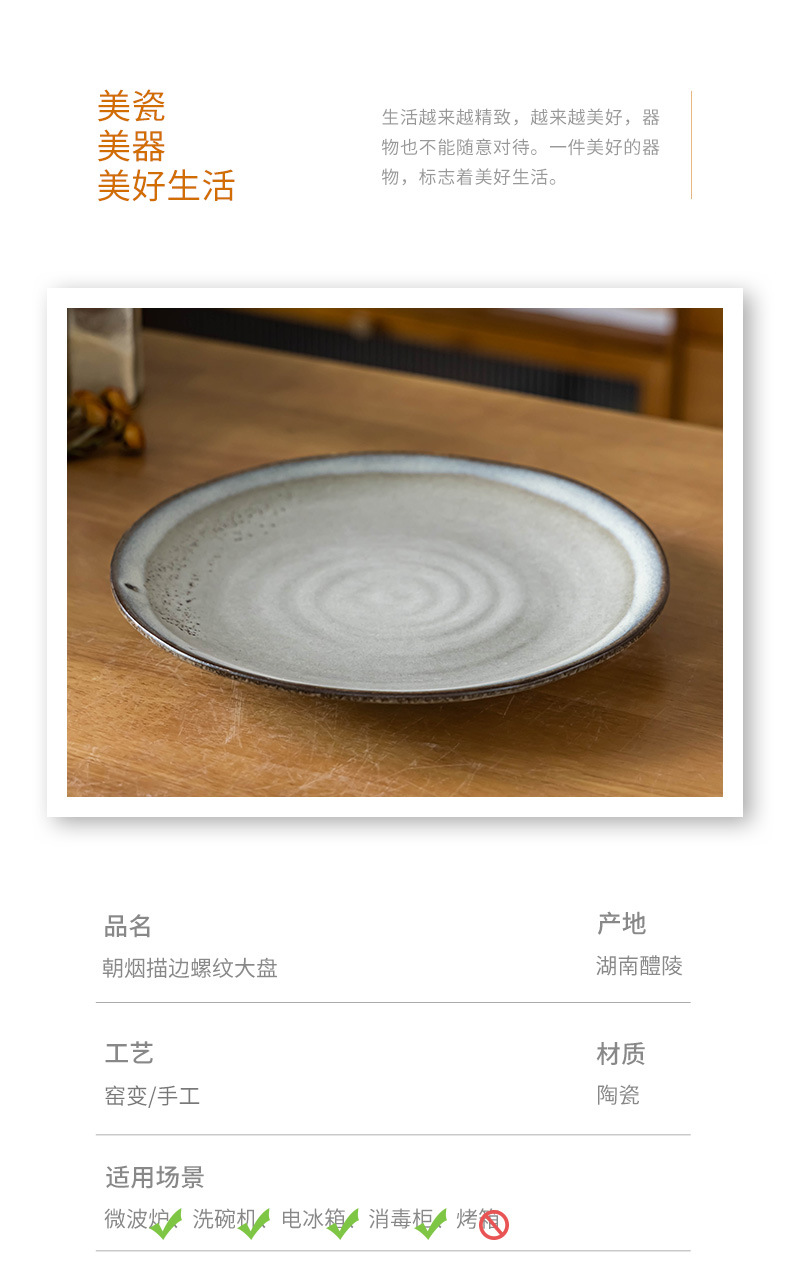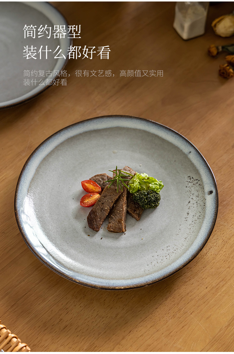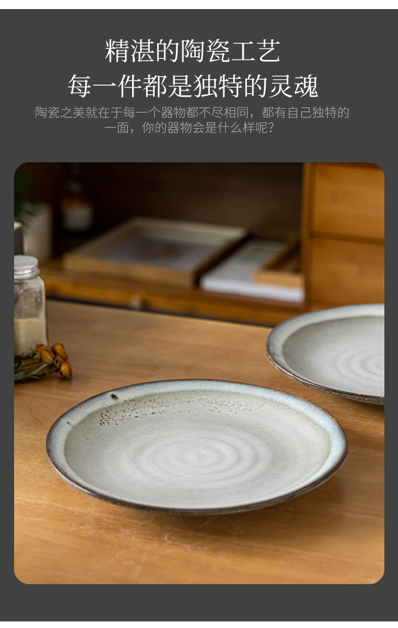 Bandeja plana roscada de viento, plato de cerámica japonesa, vajilla redonda especial para el hogar, plato grande, plato de carne occidental