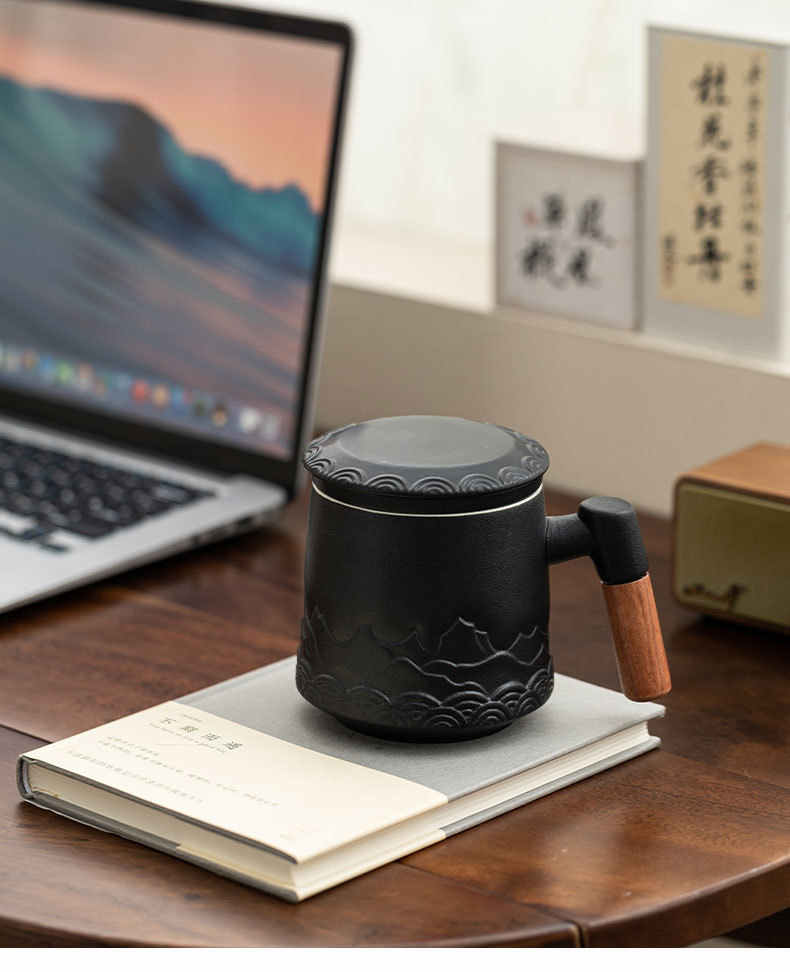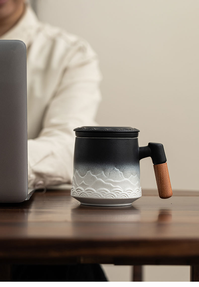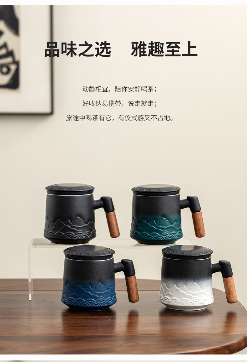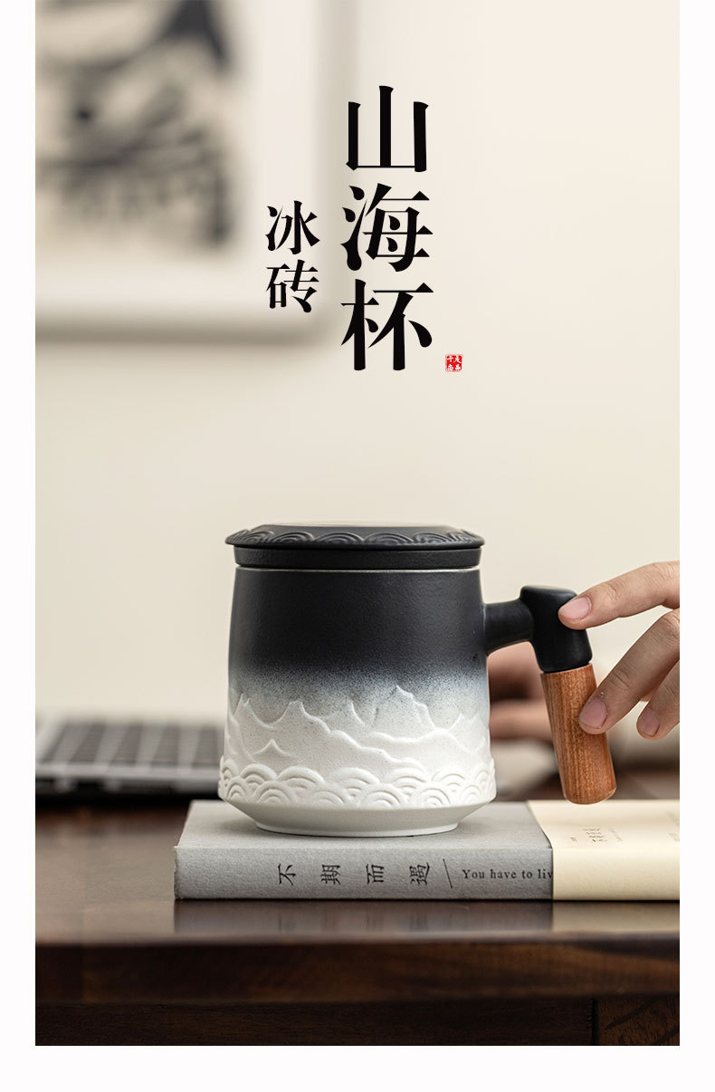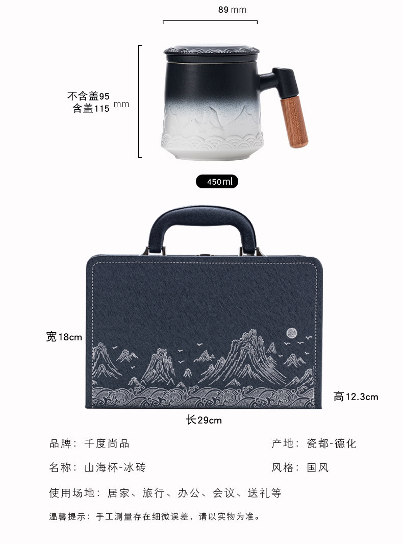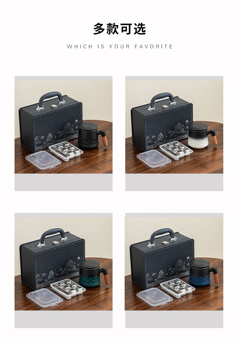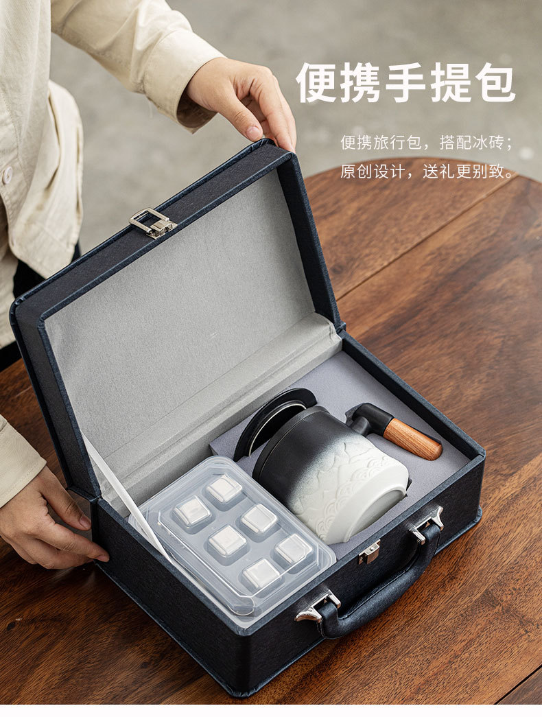 Conjunto de regalos de negocios taza de filtro de cerámica taza de chorro de arena gradiente taza de agua con caja de regalo de ladrillo de hielo LOGO grabado