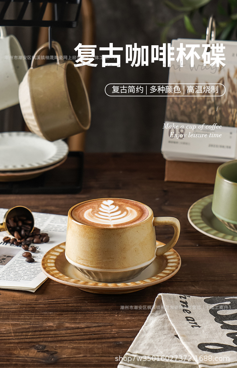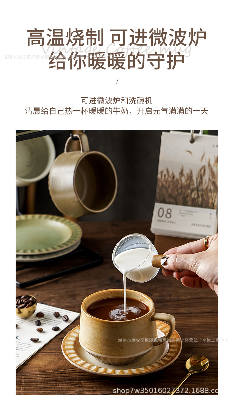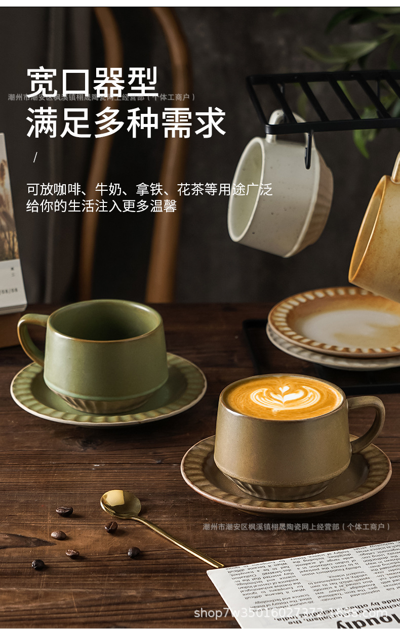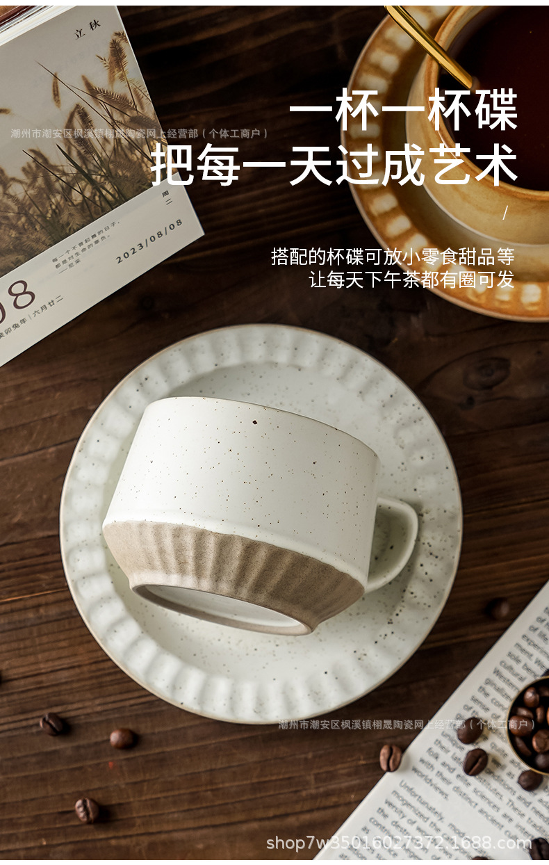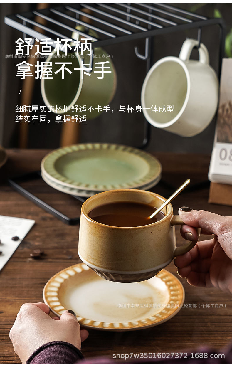 Retro cerámica rugosa taza de café conjunto de taza de té de cerámica casera instantánea cafetería latte taza de flores taza de marca