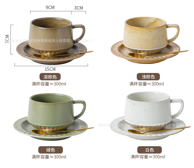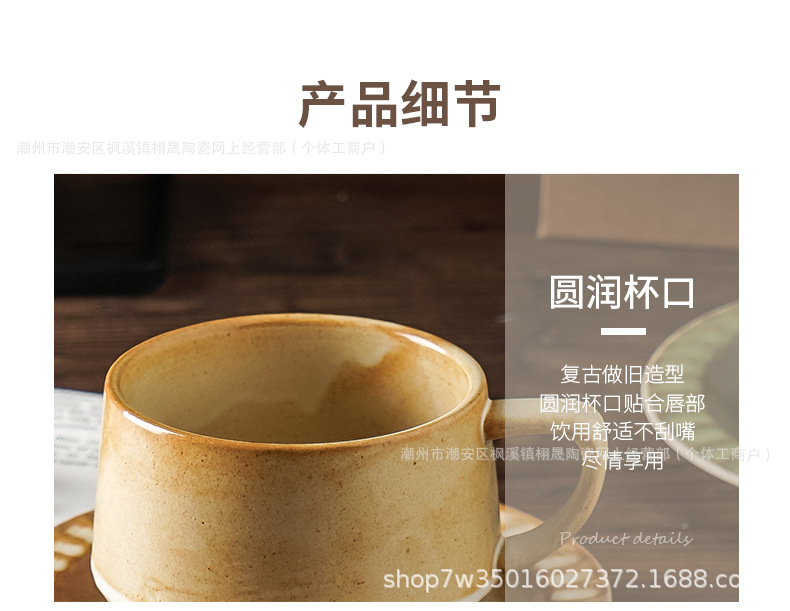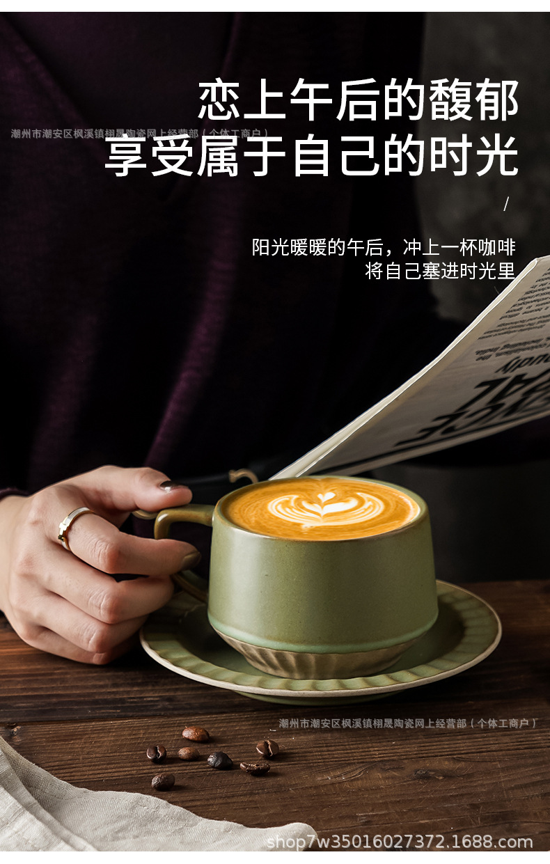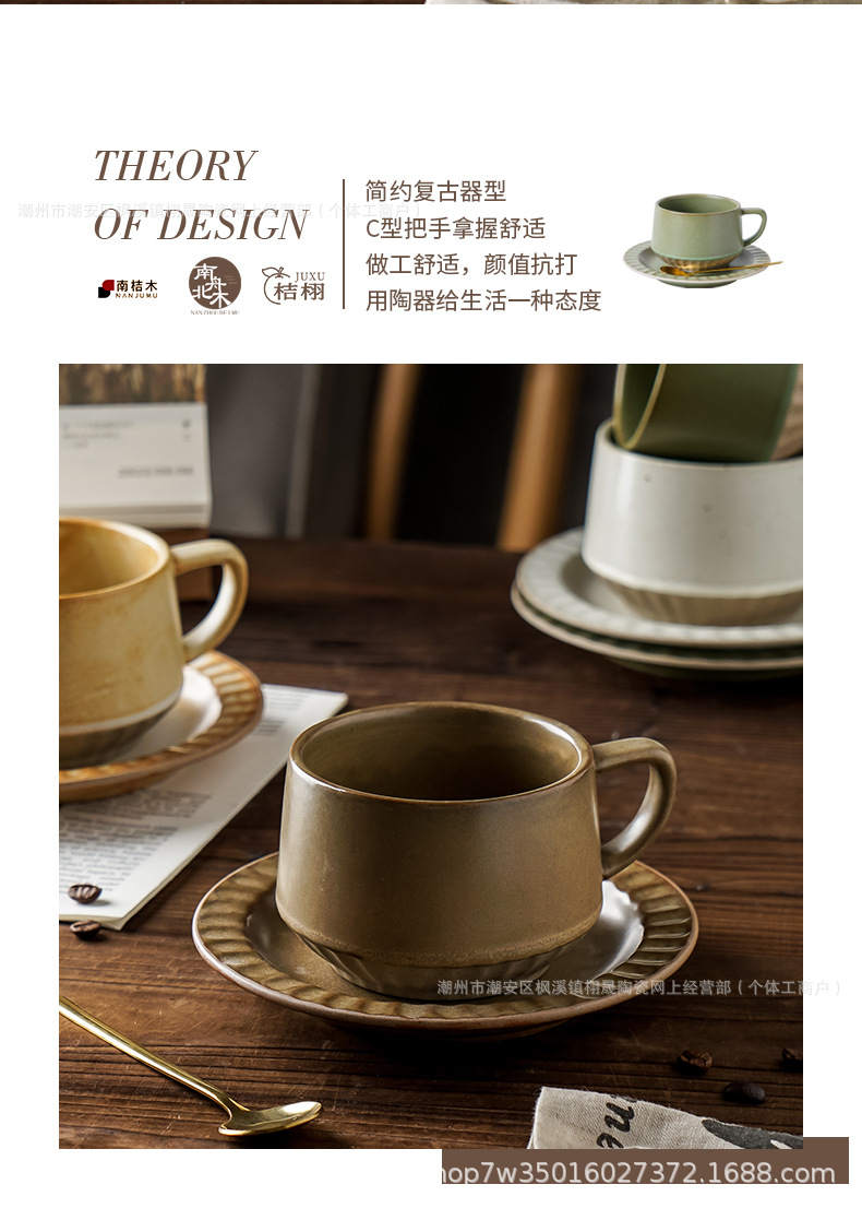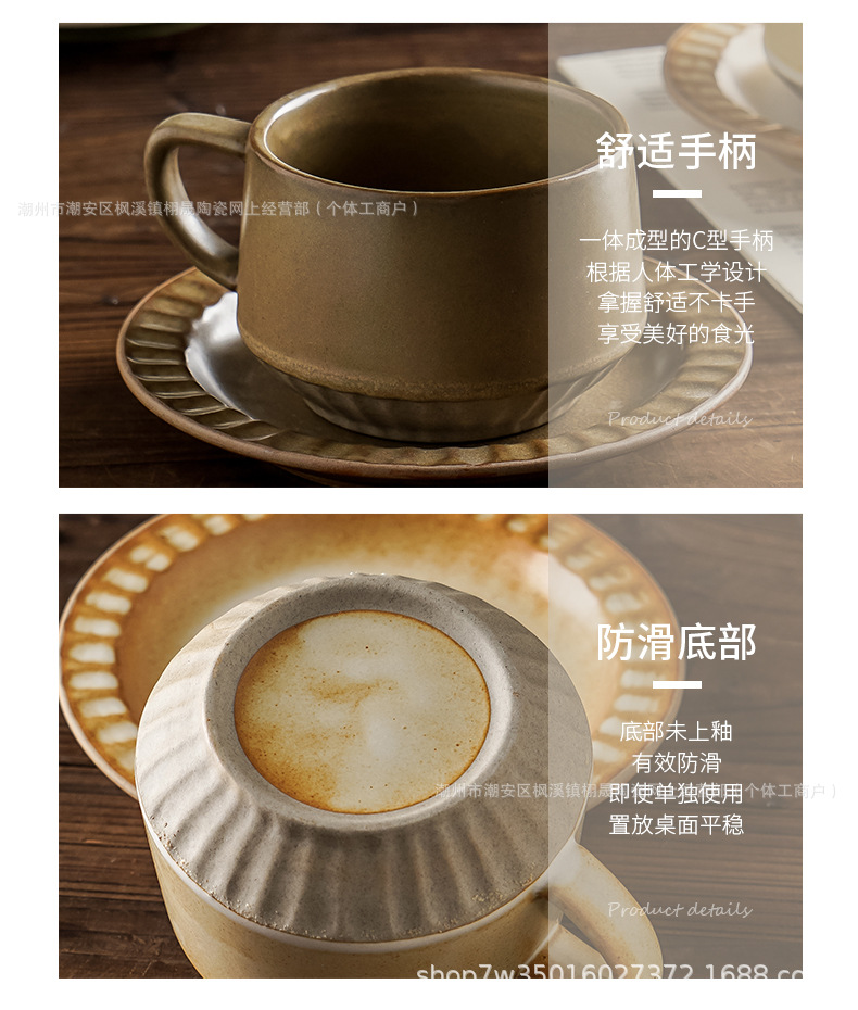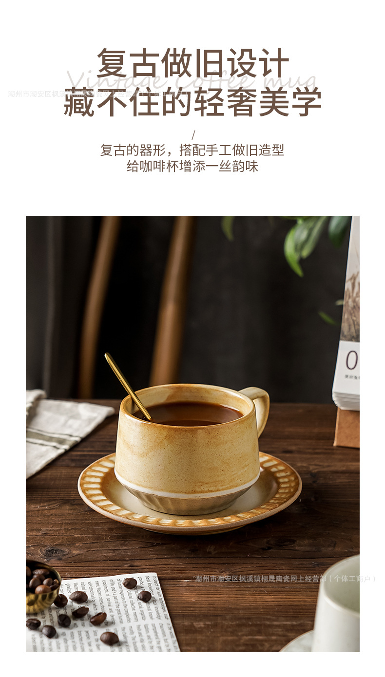 Retro cerámica rugosa taza de café conjunto de taza de té de cerámica casera instantánea cafetería latte taza de flores taza de marca