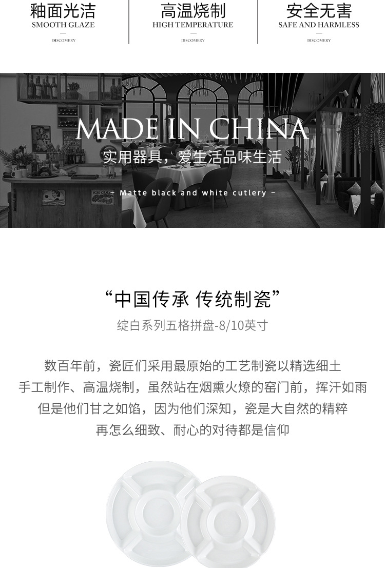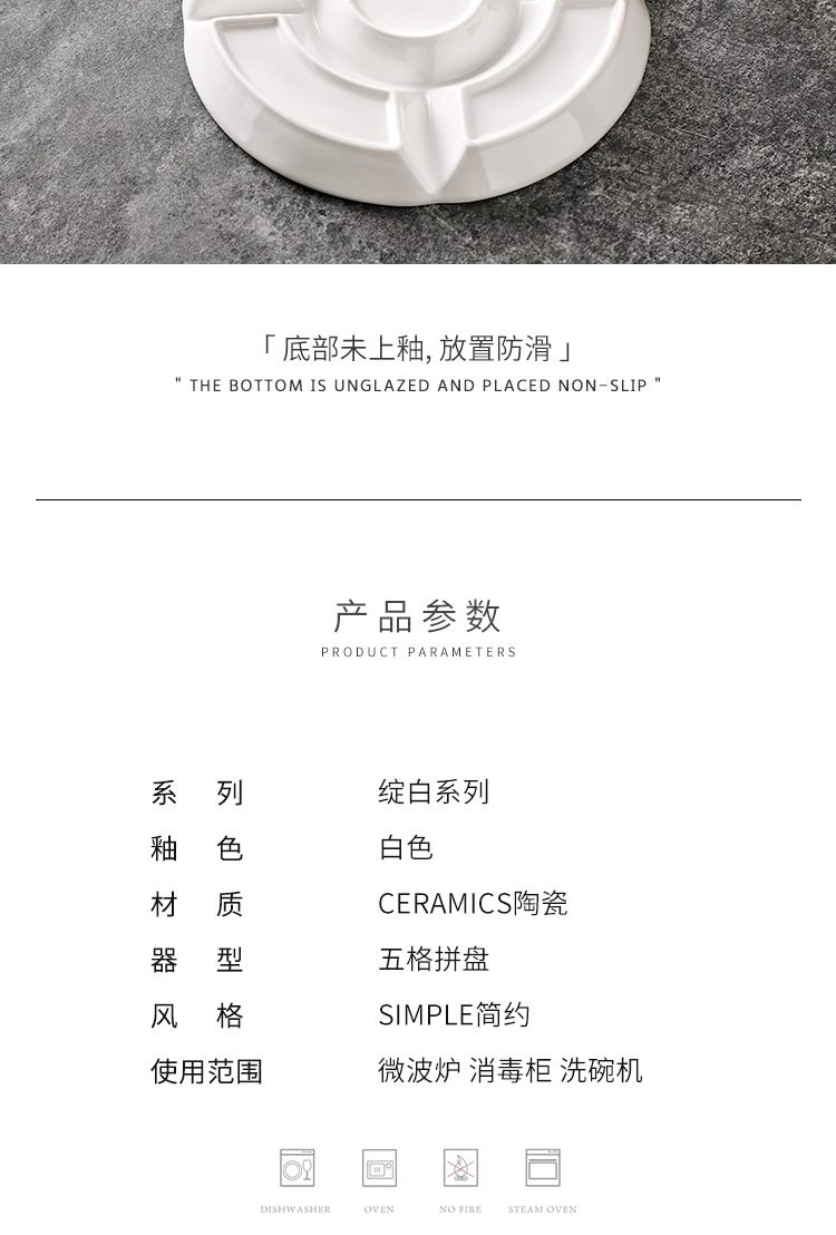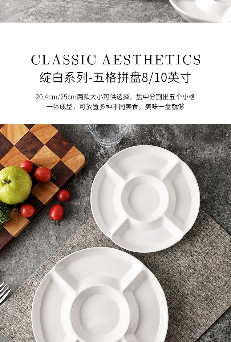 | Color | Plato de 5 casillas de 8 pulgadas - blanco, plato de 5 casillas de 10 pulgadas - blanco |