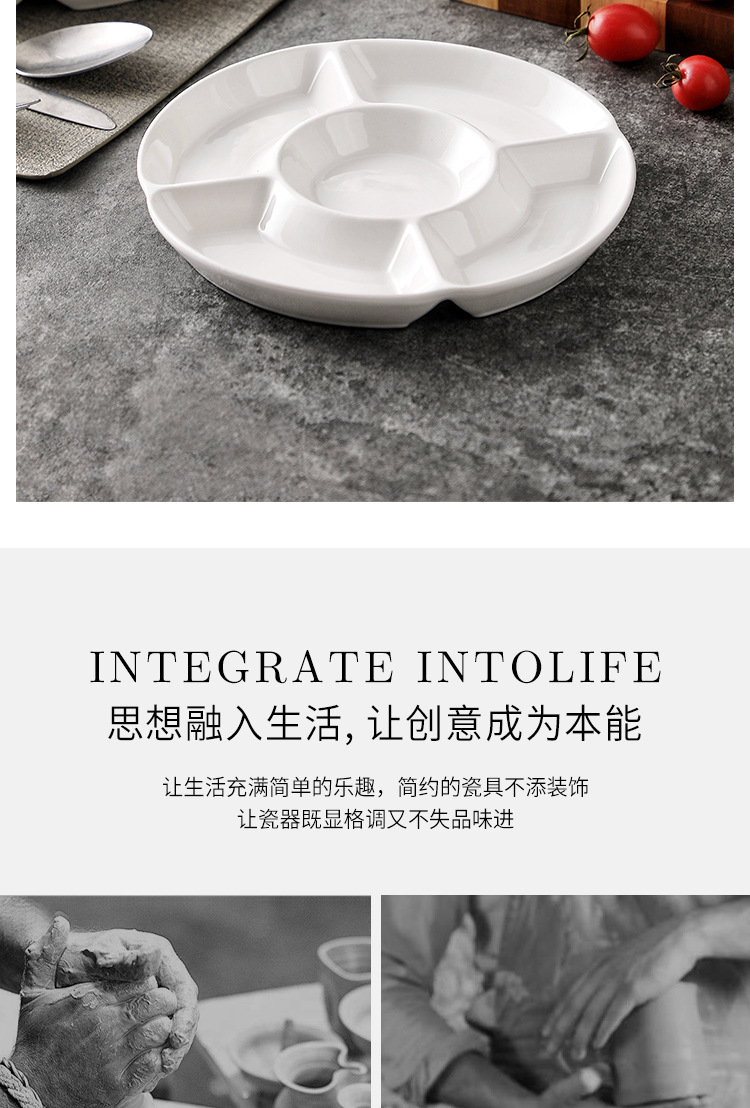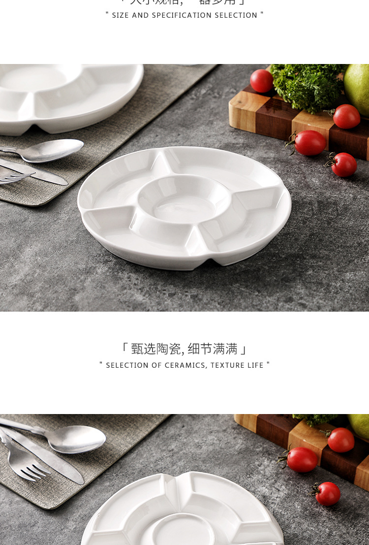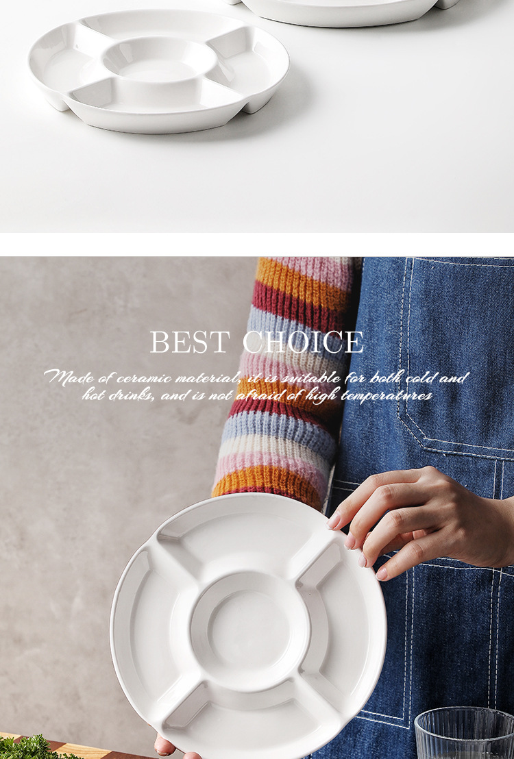 Plato dividido del hotel Plato de frutas secas de cerámica Plato de refrigerio Plato de cinco placas Plato de platos