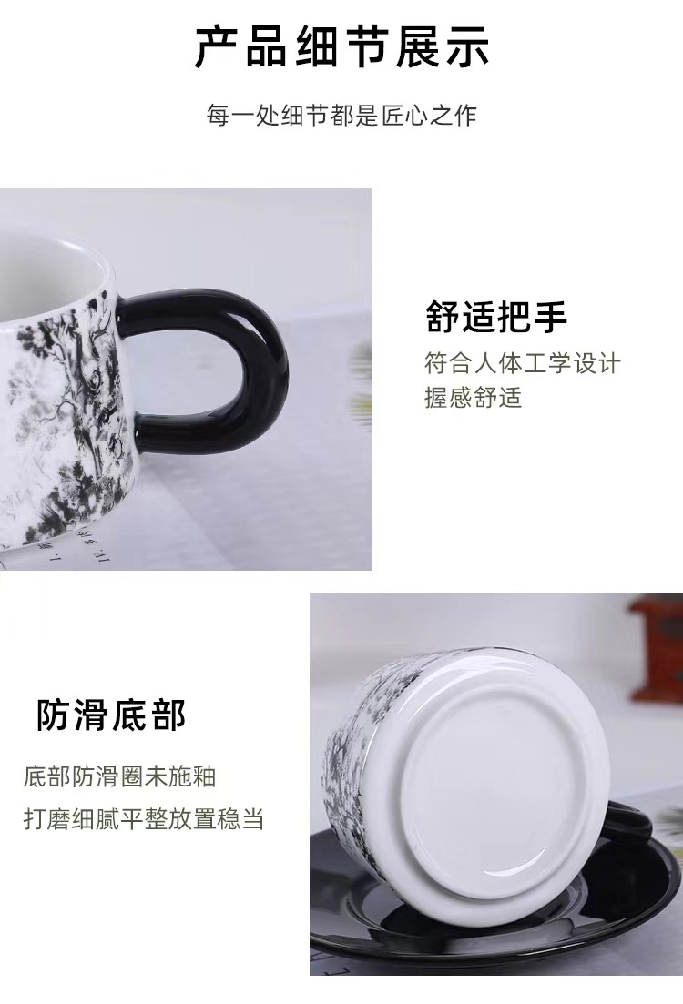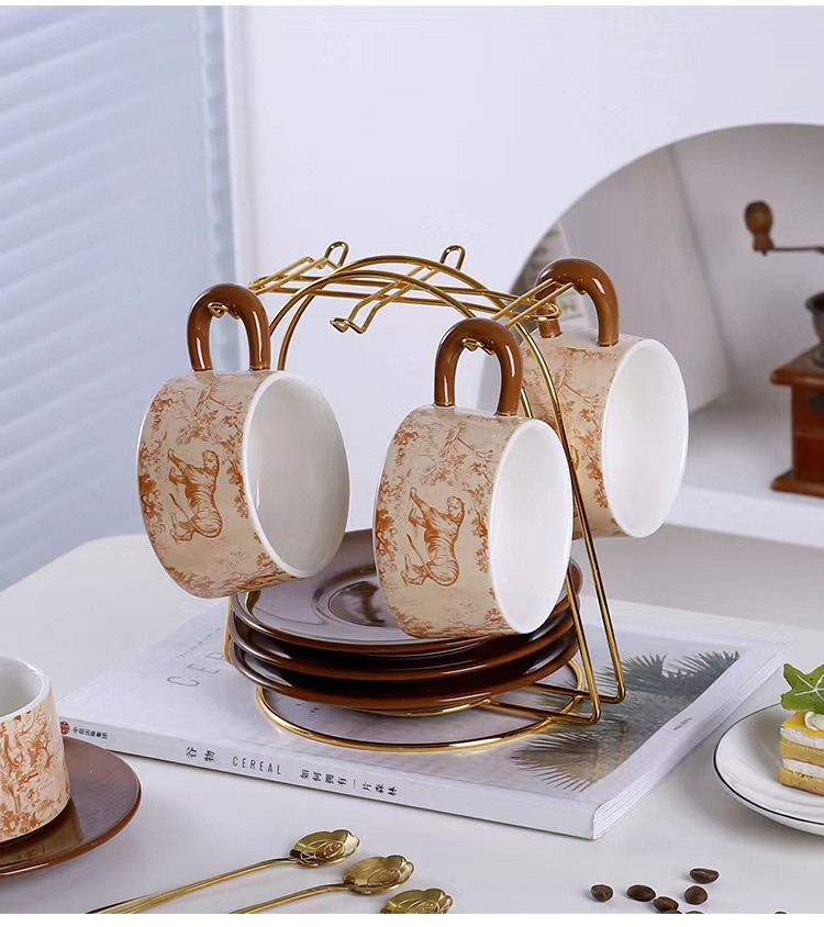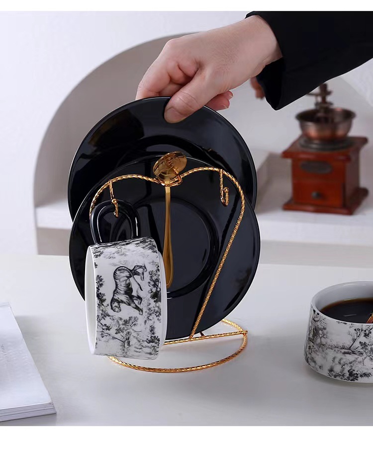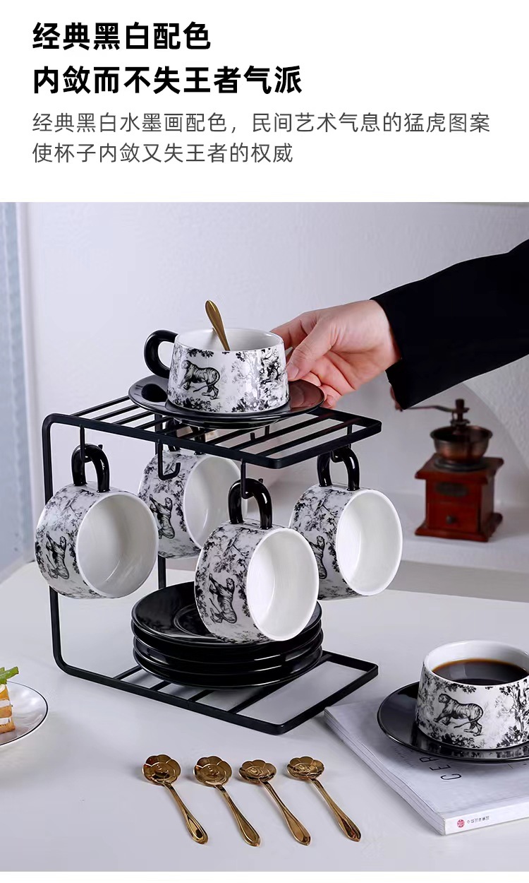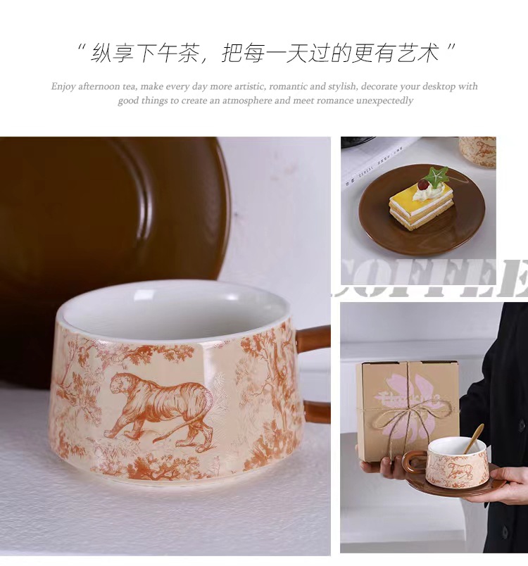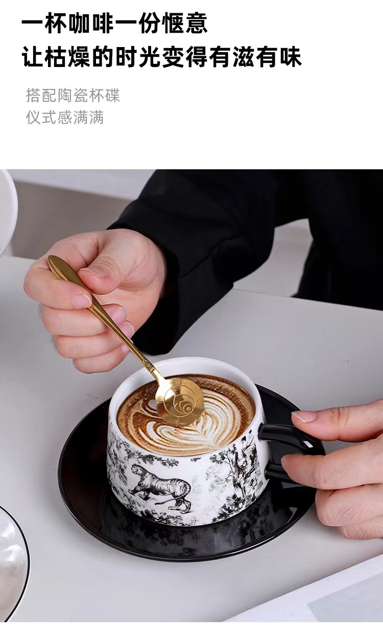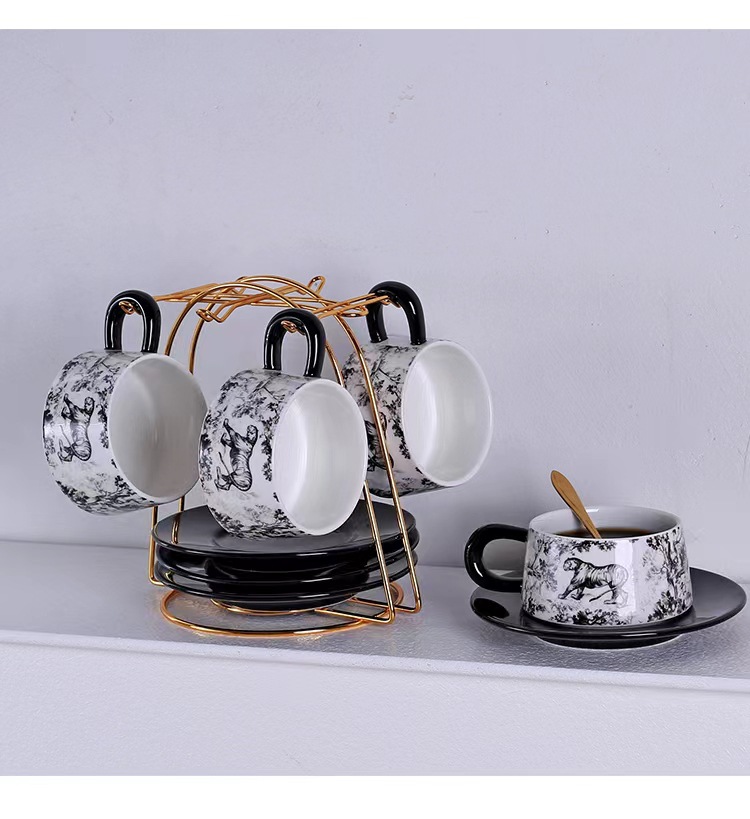 Tazas y platillos retro franceses de alto valor de la cara tigre y dragón con tazas de café con tazas de cerámica negra exquisita taza de menú de la tarde