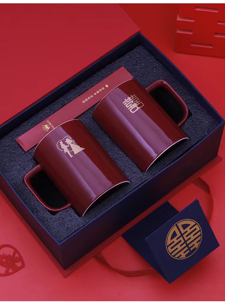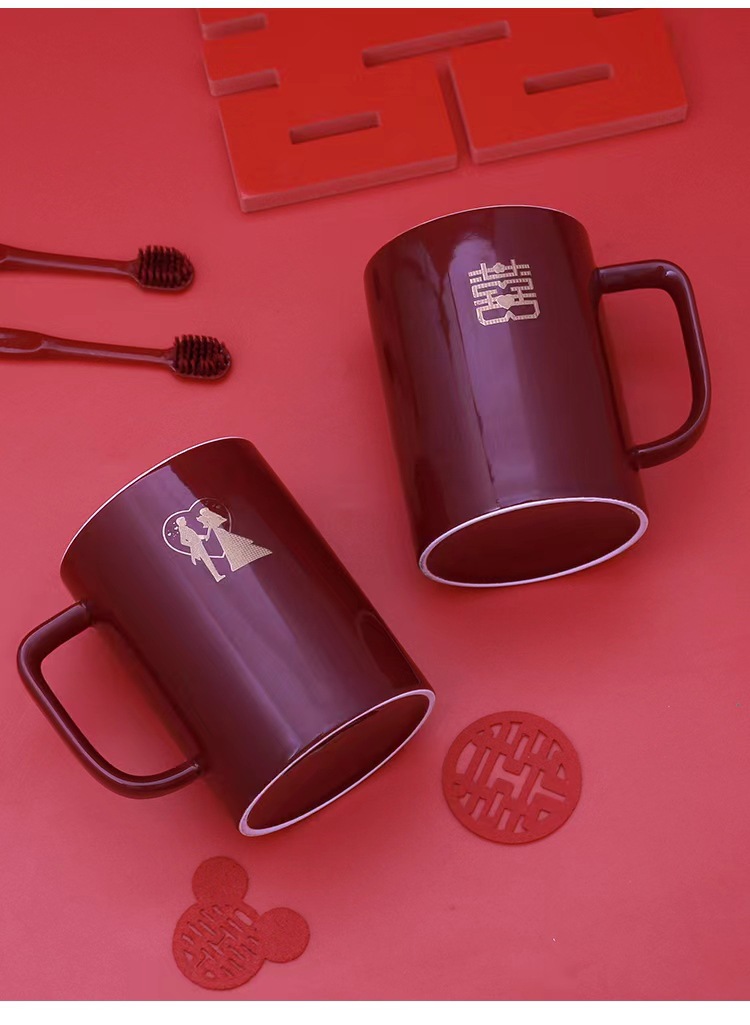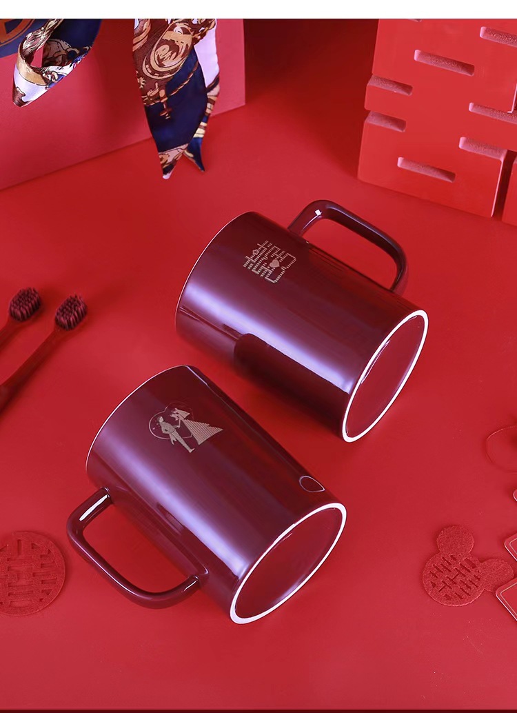 Taza de enjuague de boda, un par de tazas de cepillo de dientes de boda rojas, tazas de cepillo de dientes de boda, set de tazas de dientes de boda