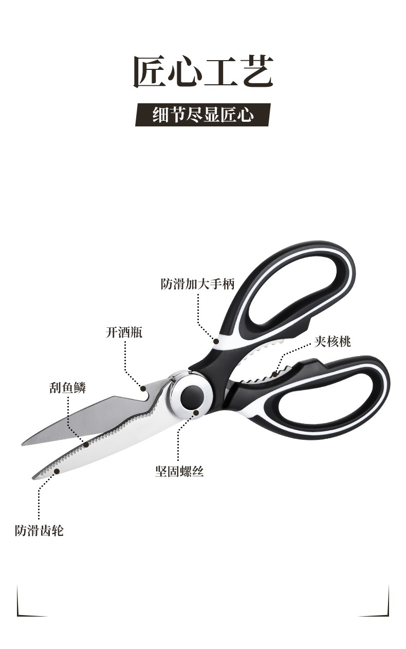 Tijeras de cocina multifuncionales para el hogar, huesos de pato, tijeras de hueso de pollo, tijeras de barbacoa, tijeras de panda de acero inoxidable, tijeras gruesas y potentes