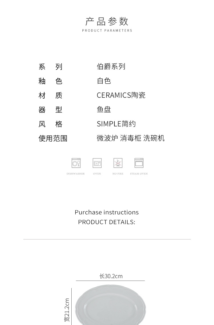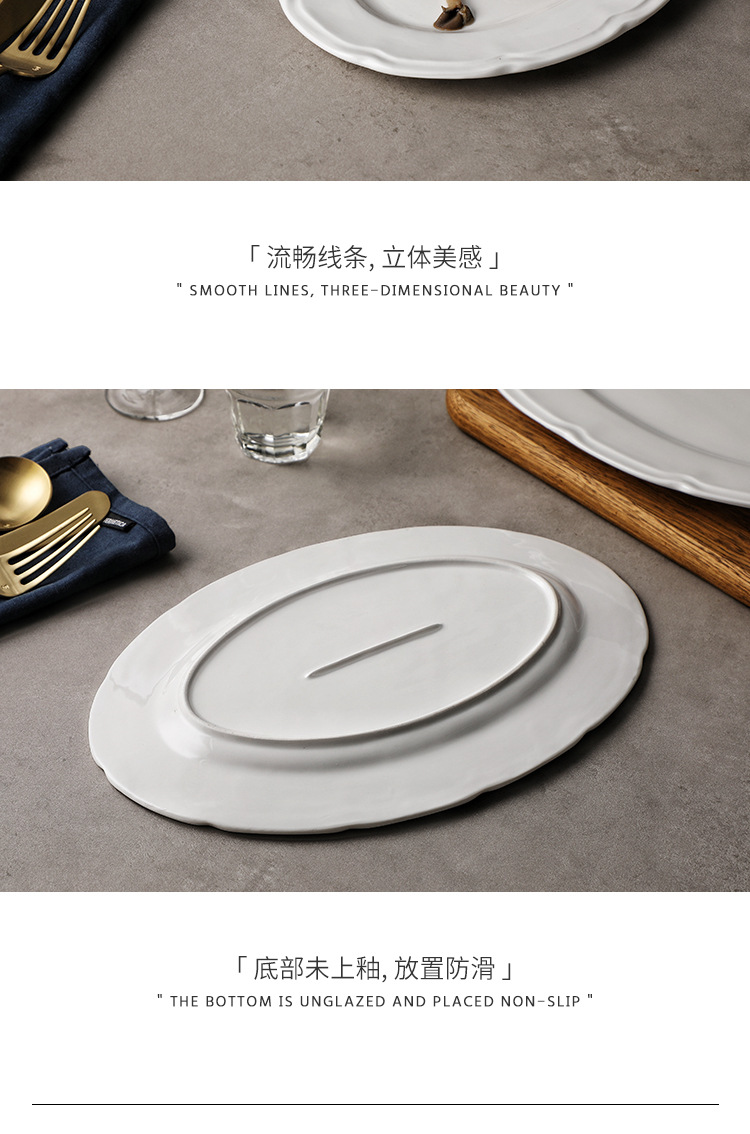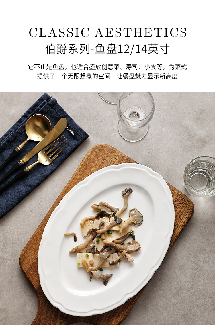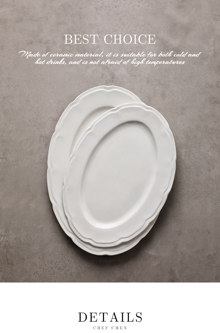 Plato de pescado de cerámica blanca pura, plato de pescado al vapor, plato de pescado asado, plato de platos grandes, plato de pescado nuevo, plato oval ancho