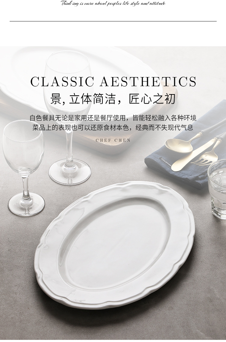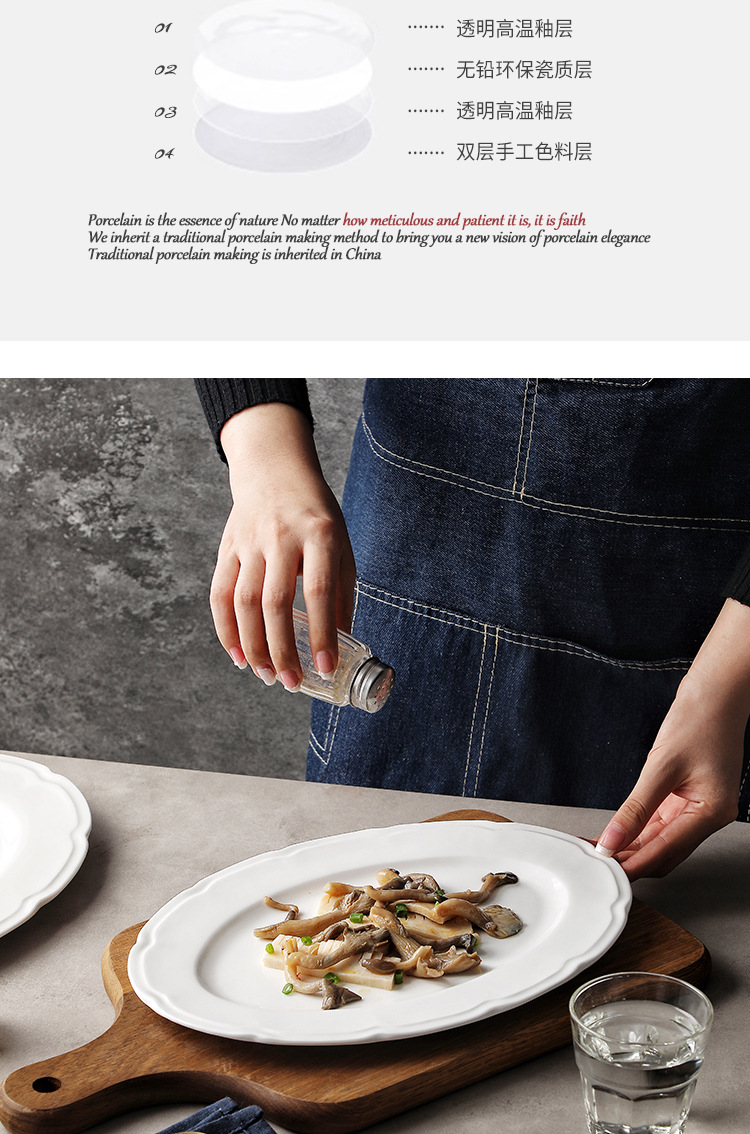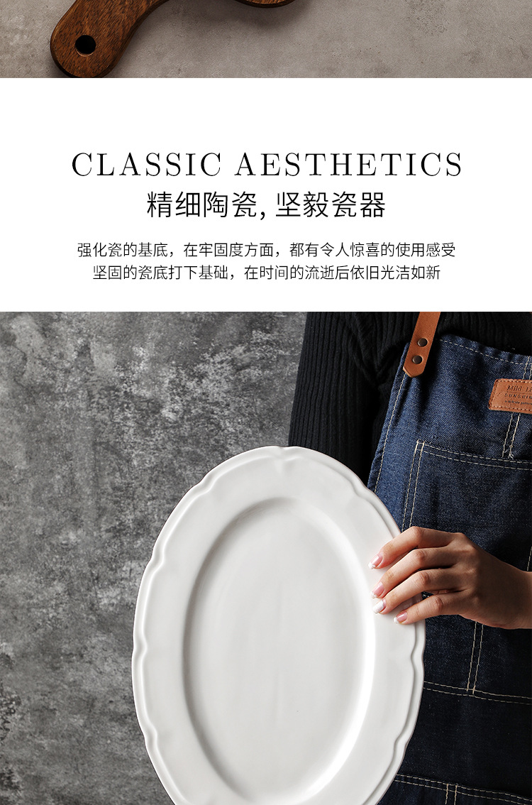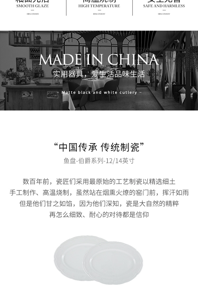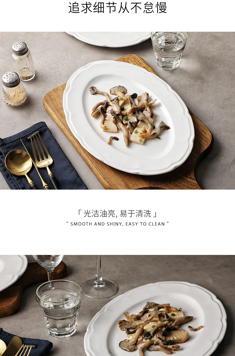 Plato de pescado de cerámica blanca pura, plato de pescado al vapor, plato de pescado asado, plato de platos grandes, plato de pescado nuevo, plato oval ancho