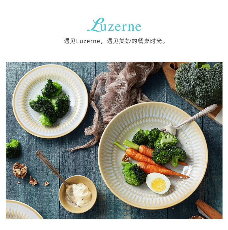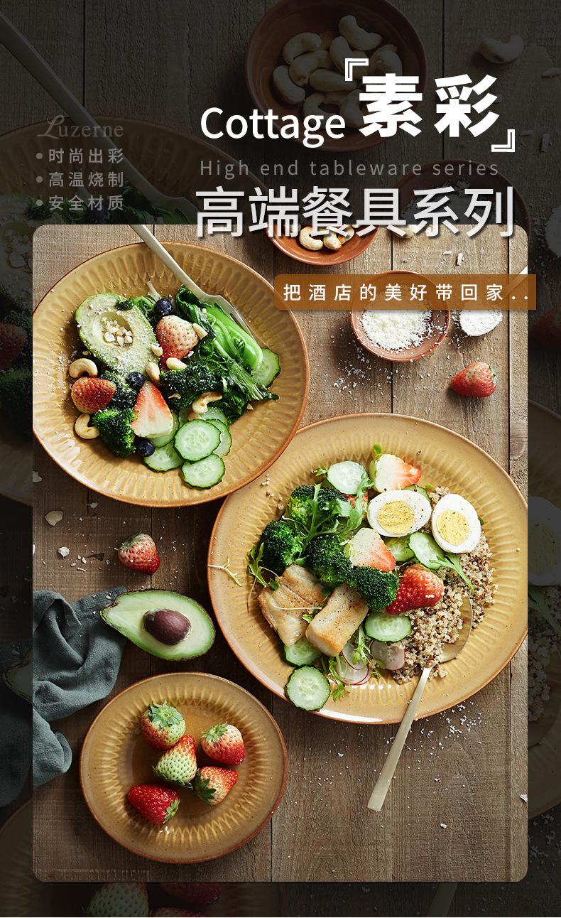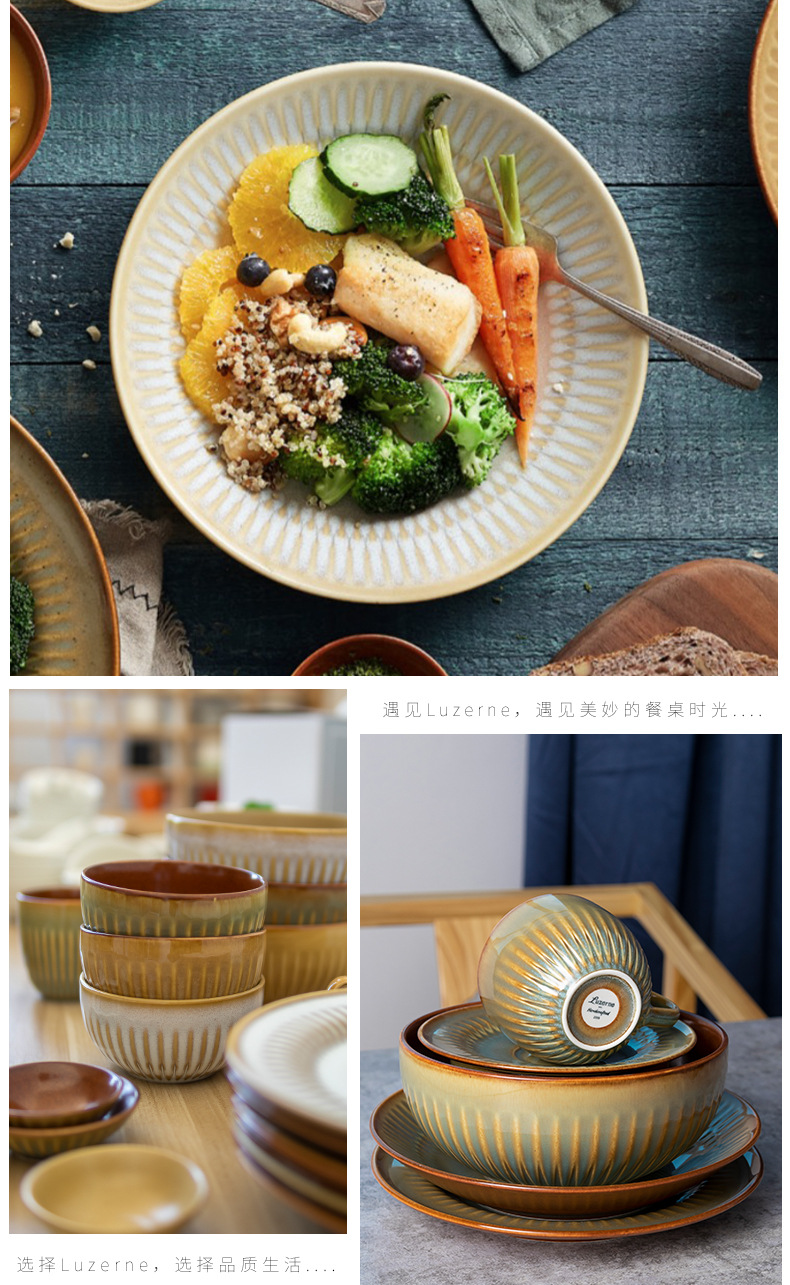 Comercio exterior transfronterizo Lusheng nueva porcelana de hueso de color liso serie retro europeo exquisito hogar vajilla plato tazón