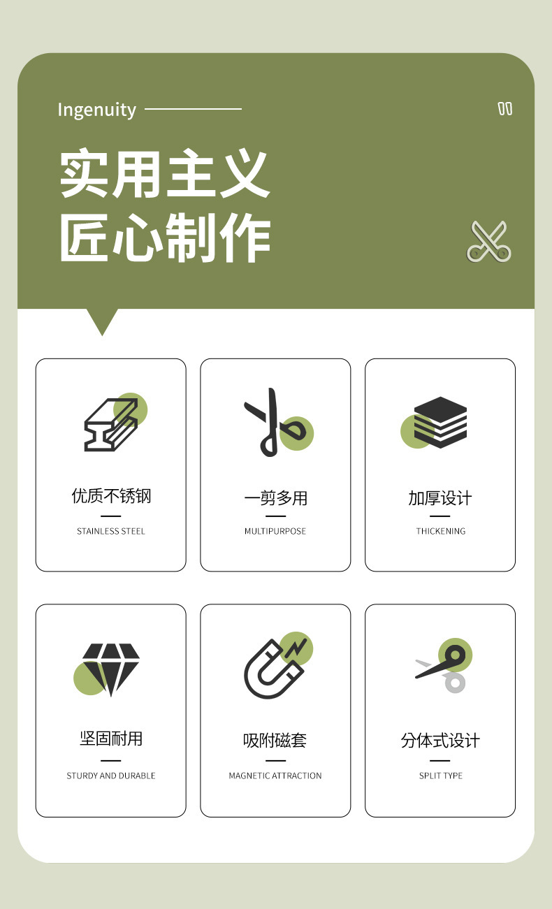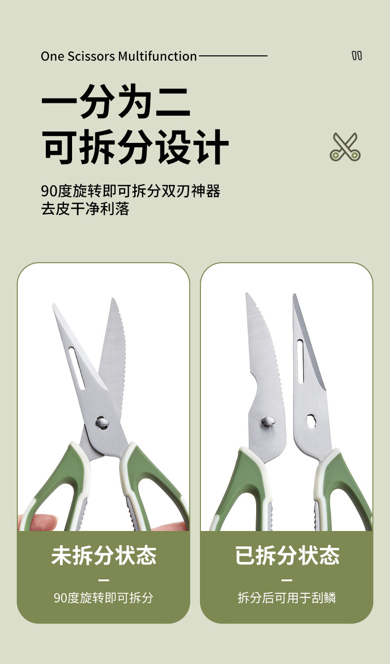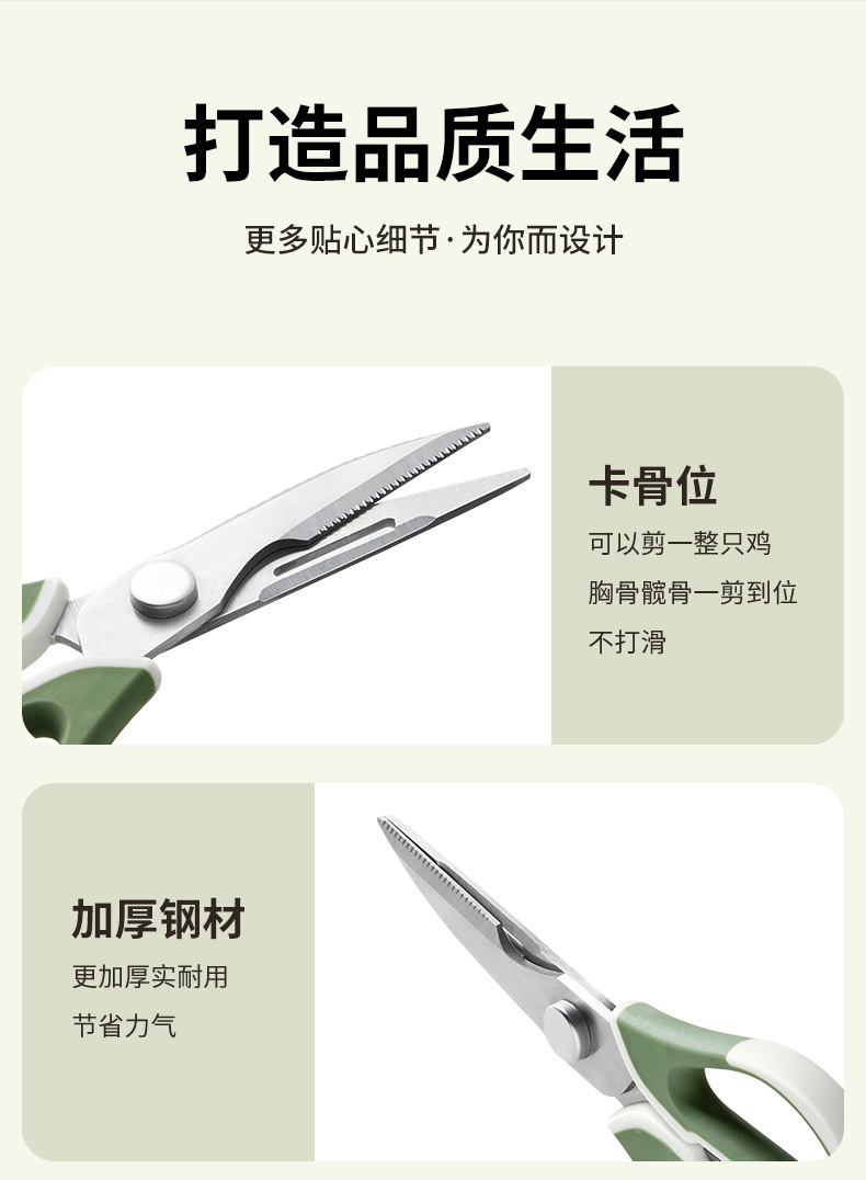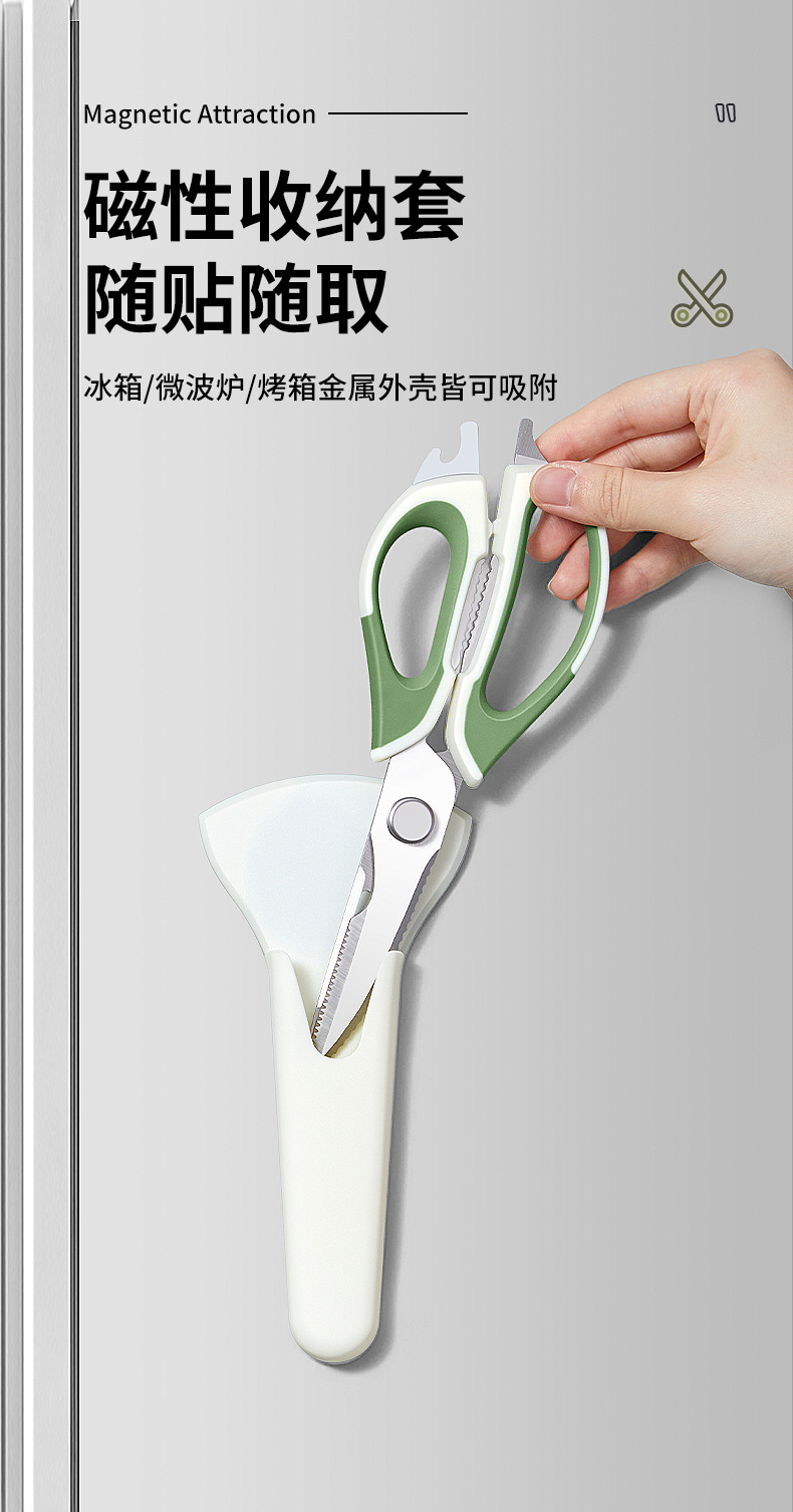 Nuevas tijeras de cocina verde de aguacate multifuncional tijeras de hueso de pollo de acero inoxidable asado frito tijeras de succión magnética