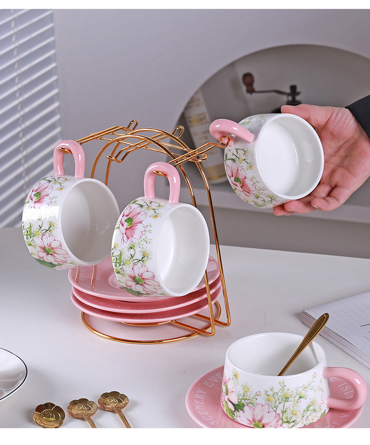 Estilo fresco pintado a mano pequeña margarita tulipán juego de tazas y platillos de té de la tarde en casa de oficina francesa de alto valor
