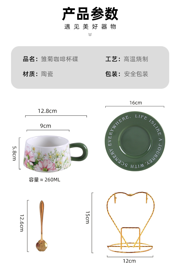 | Colores | Taza de café y platillo-polvo de margarita,Taza de café y platillo-Margarita verde,Taza de café y platillo en polvo de tulipán,Taza de café y platillo-Tulip Green,(Color mezclado) Caja de regalo de taza y disco de margarita,(Color mezclado) Tulipanes en una caja de regalo |