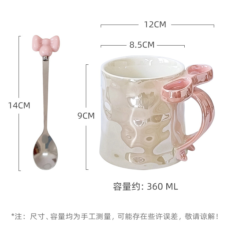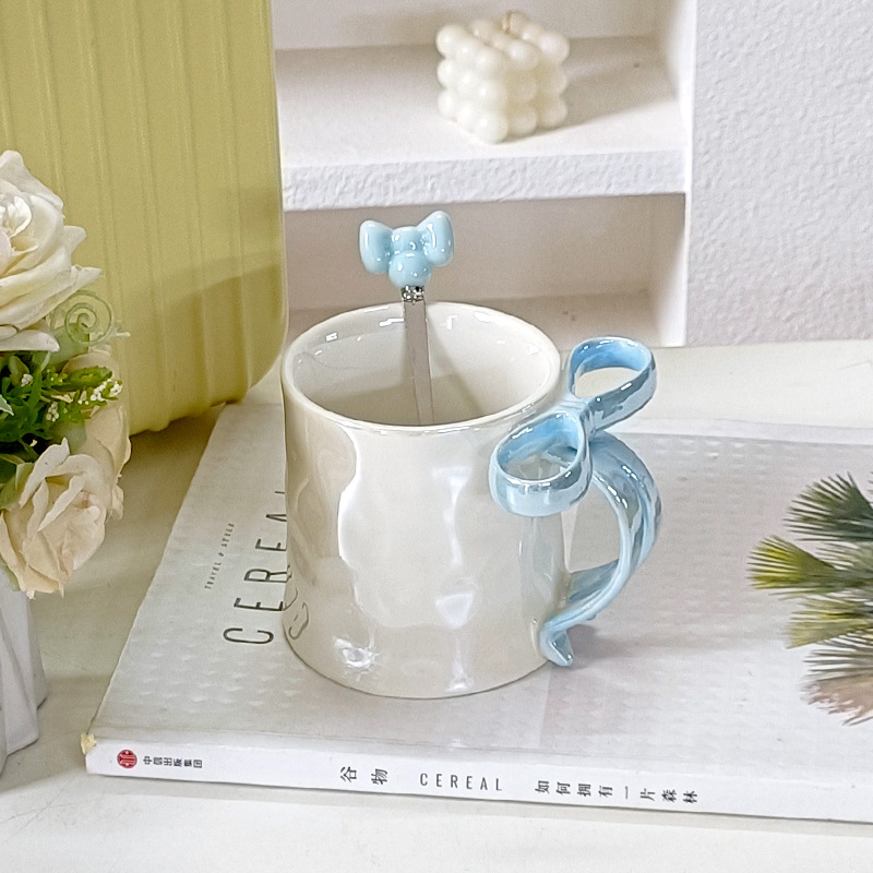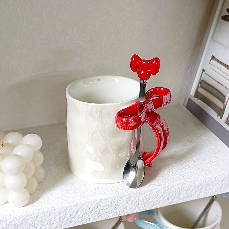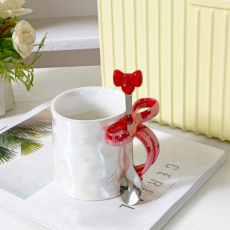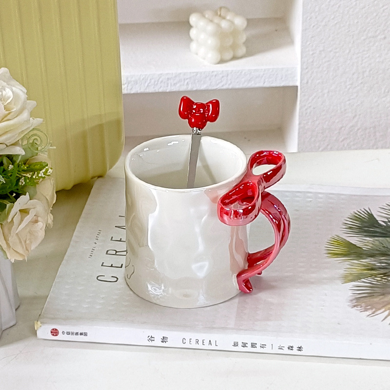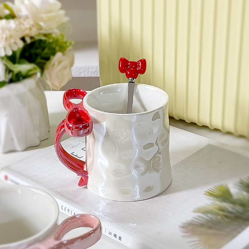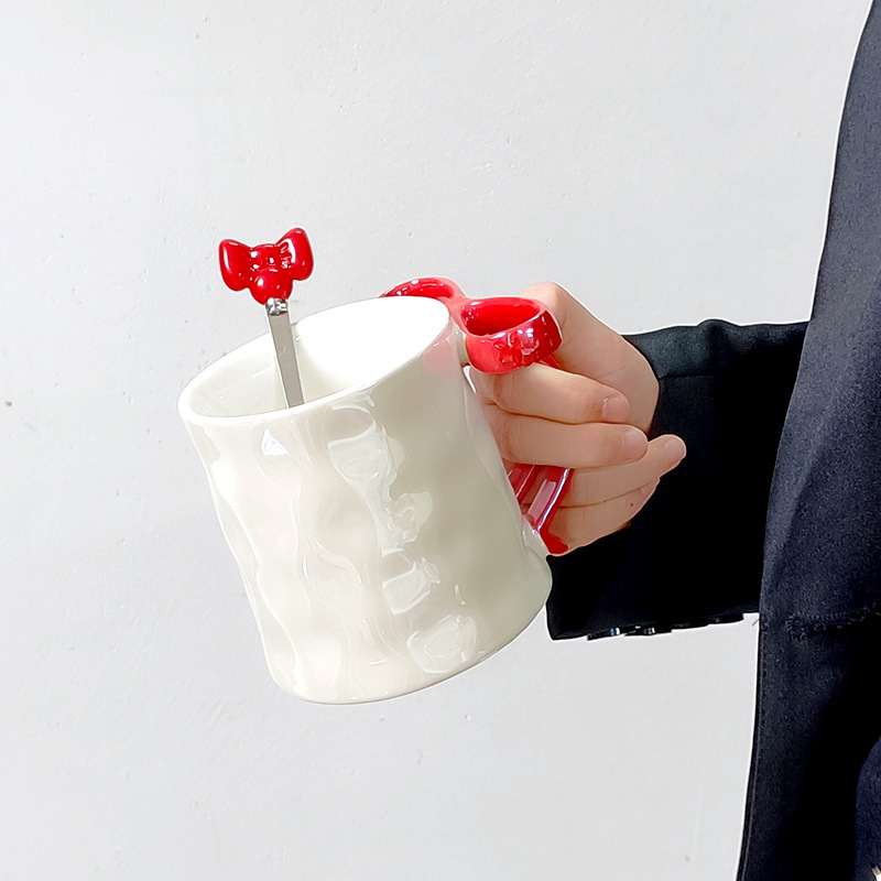 Taza de cerámica de arco estereoscópico para el hogar encantador corazón de una chica exquisita taza de café taza de marca alta sensación creativa lujosa ligera