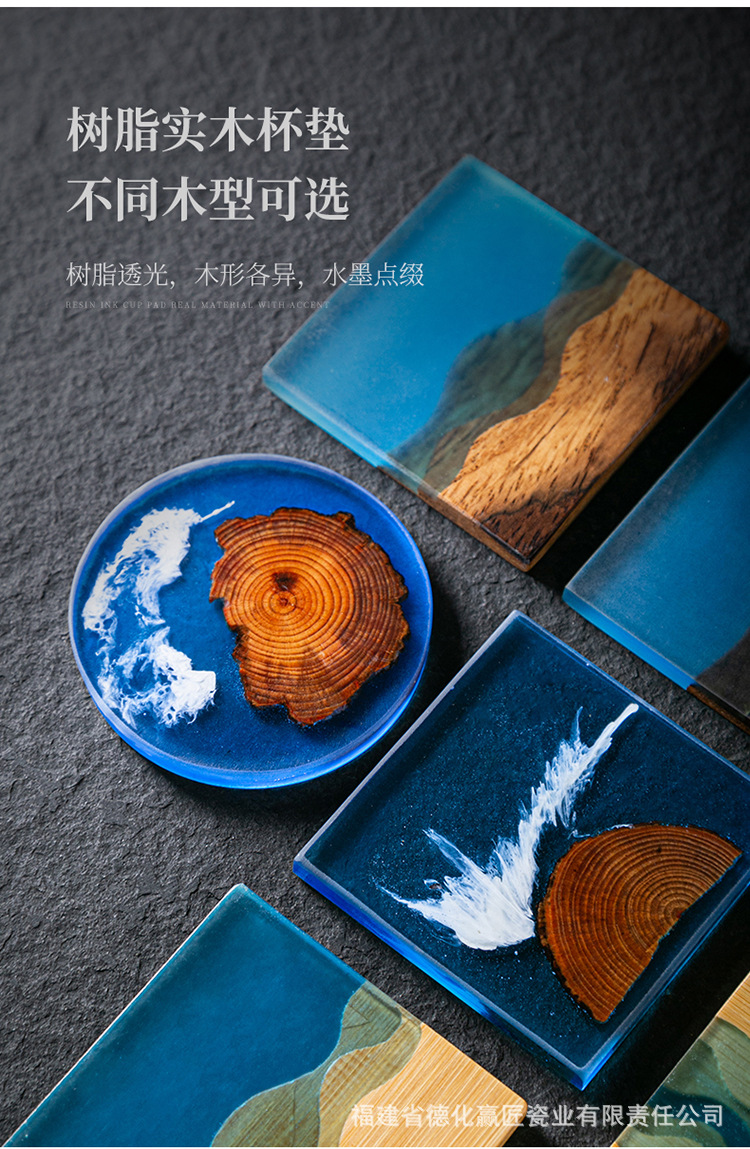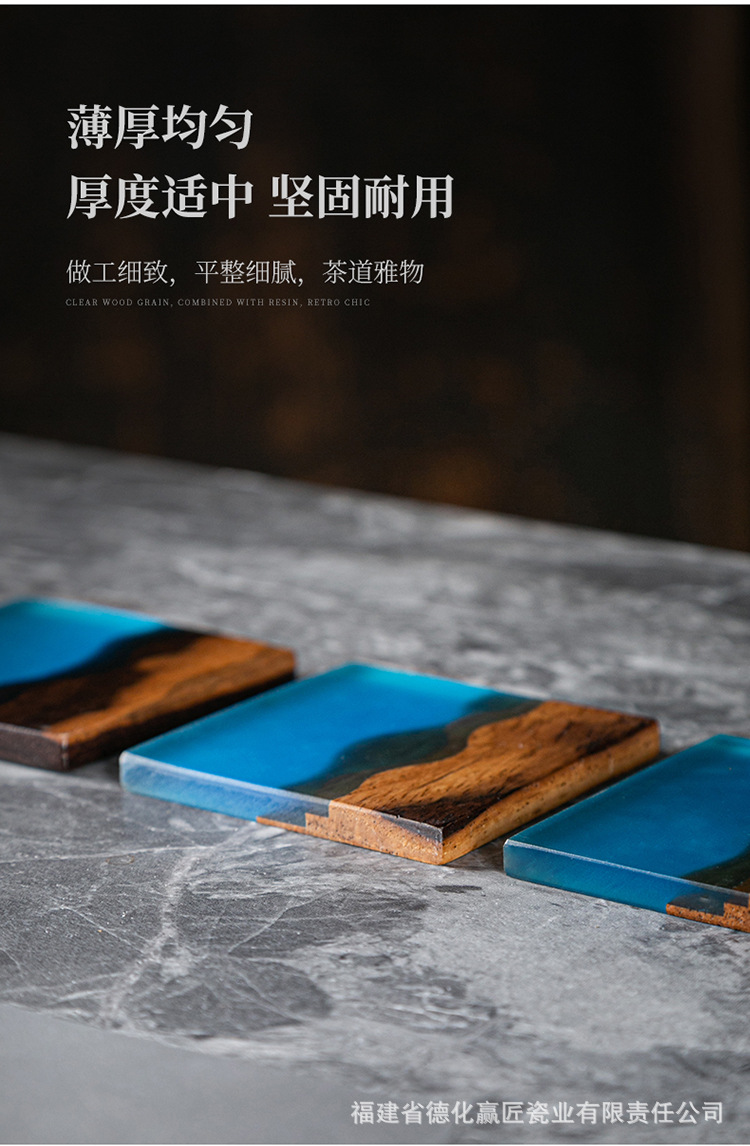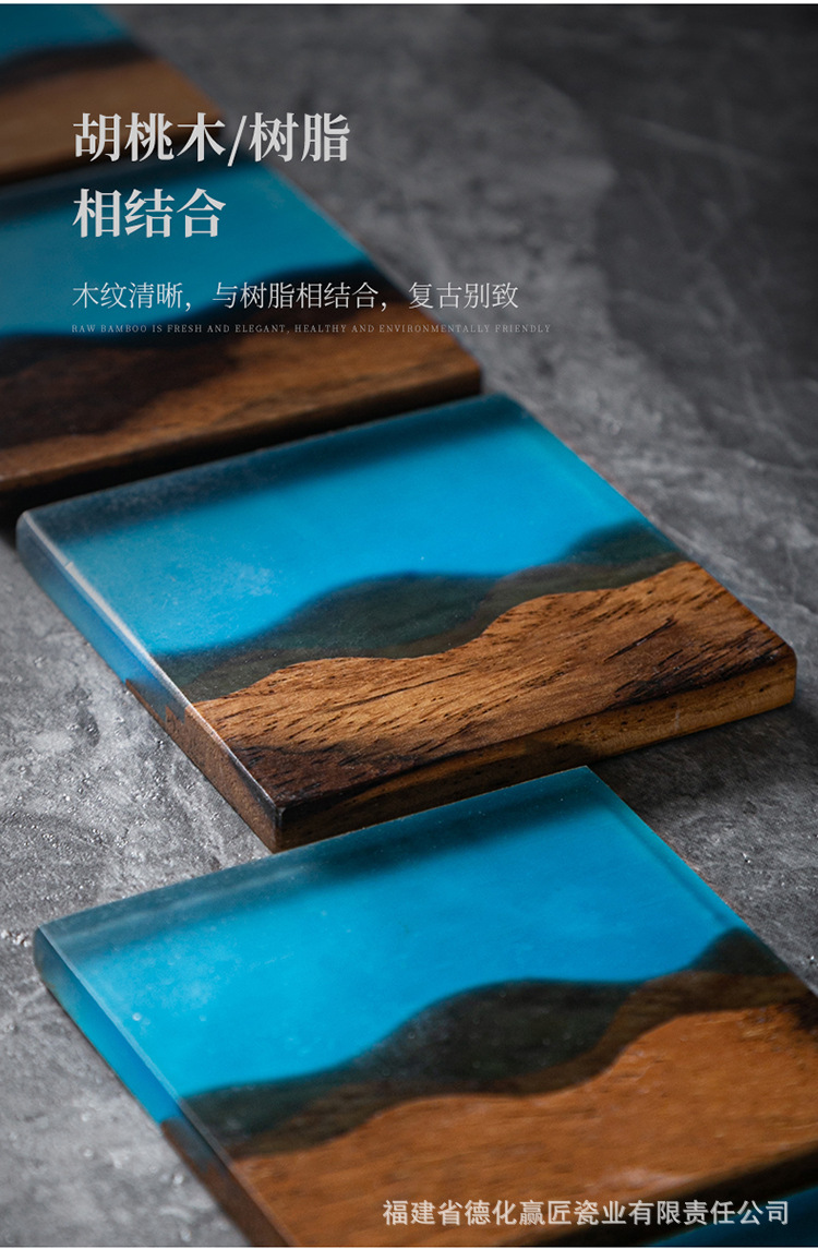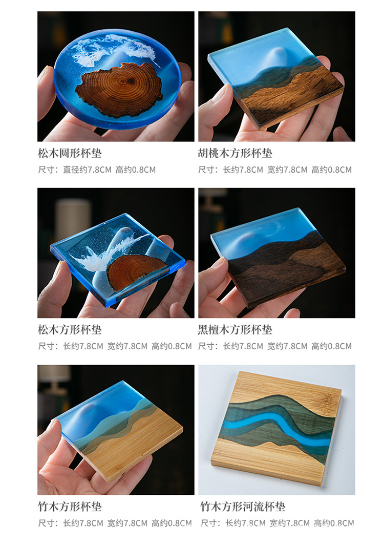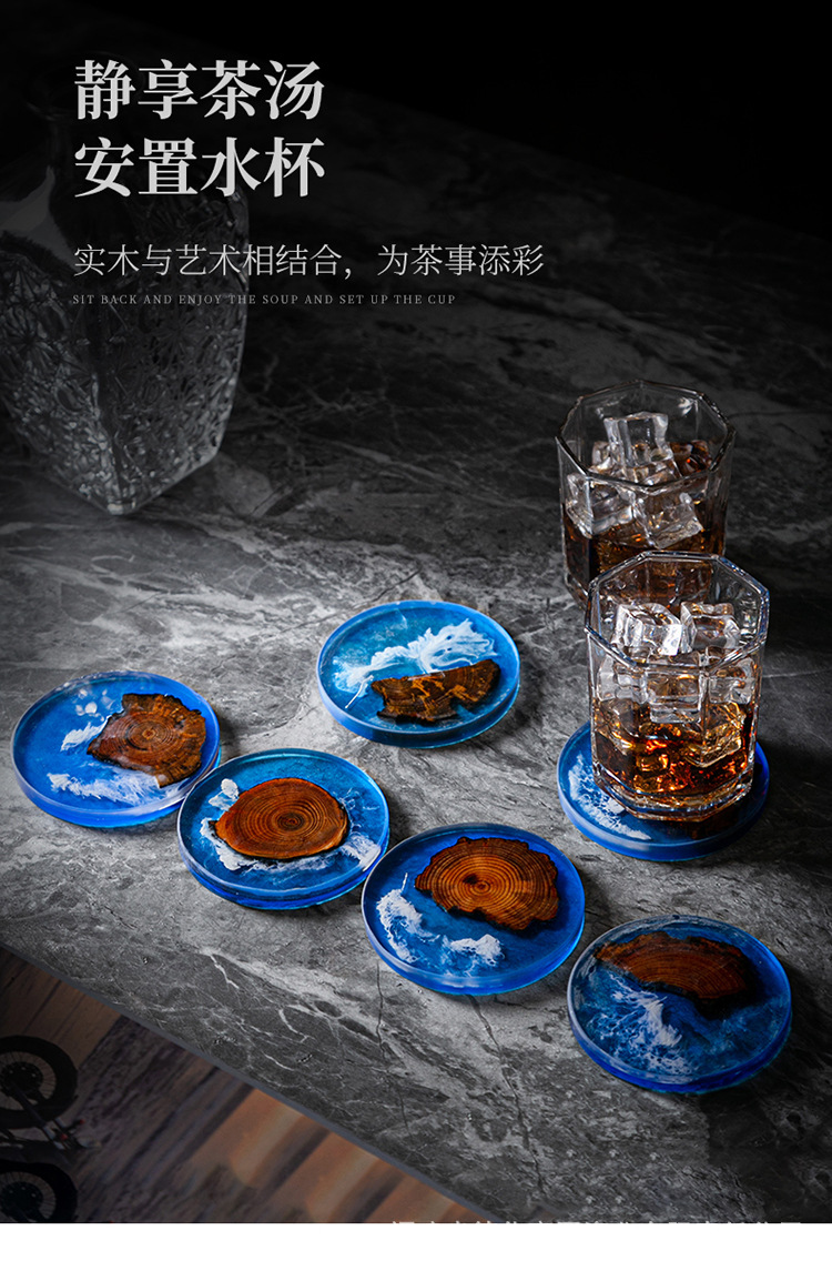 Cruz-frontera norte de pino epoxi resina río montaña azul estera de aislamiento olla teniendo madera maciza Zen onda titular de la taza