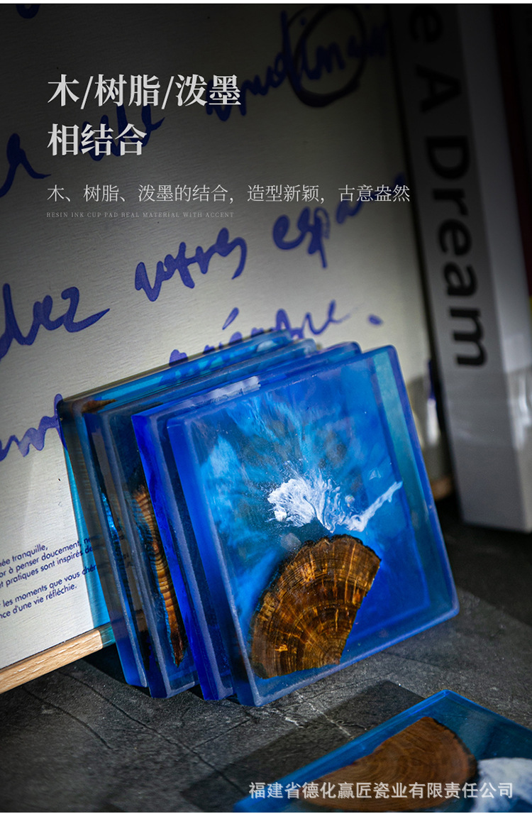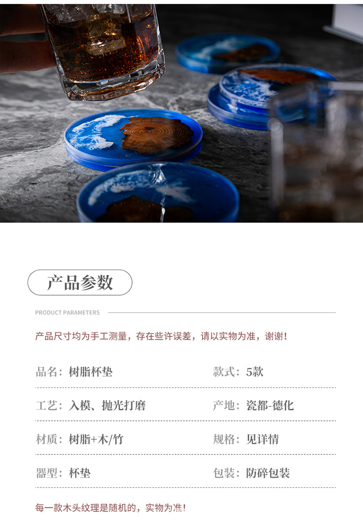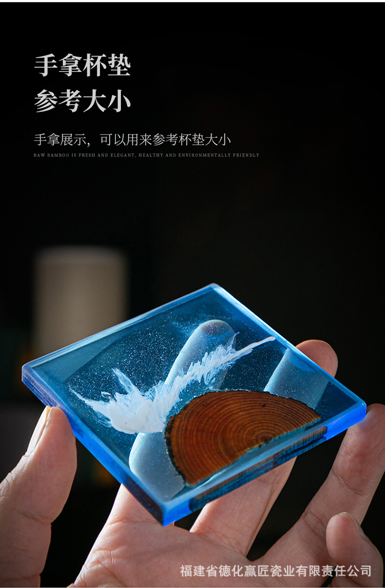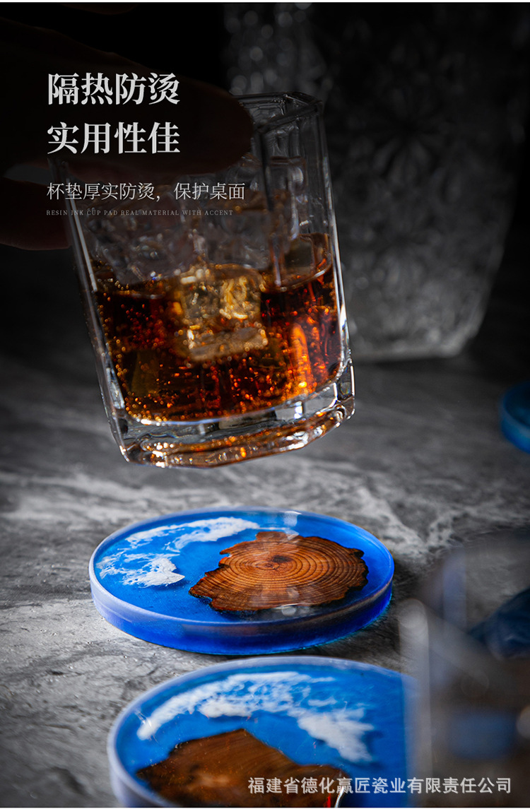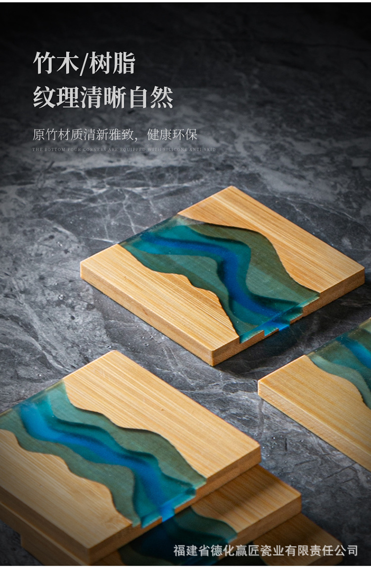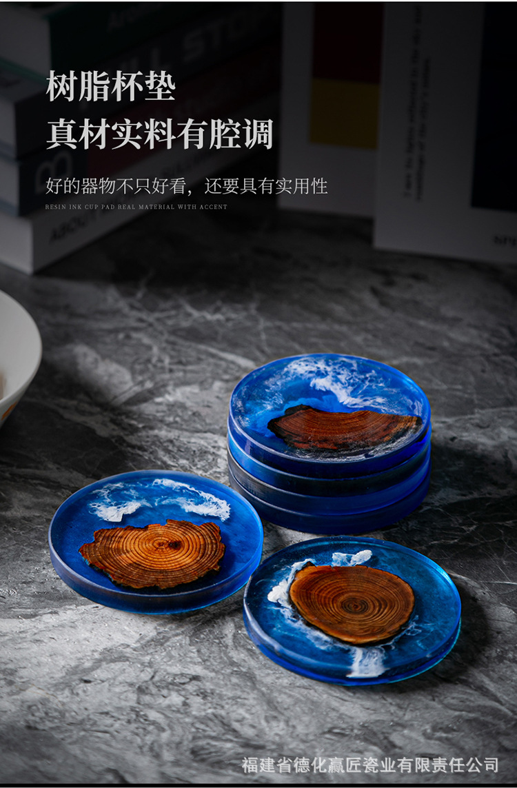 Cruz-frontera norte de pino epoxi resina río montaña azul estera de aislamiento olla teniendo madera maciza Zen onda titular de la taza