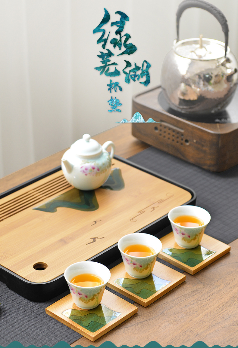De estilo japonés de madera maciza estera de la taza de té estera de aislamiento de bambú simple portavasos Junta creativa ceremonia del té partes del hogar juego de té Accesorios