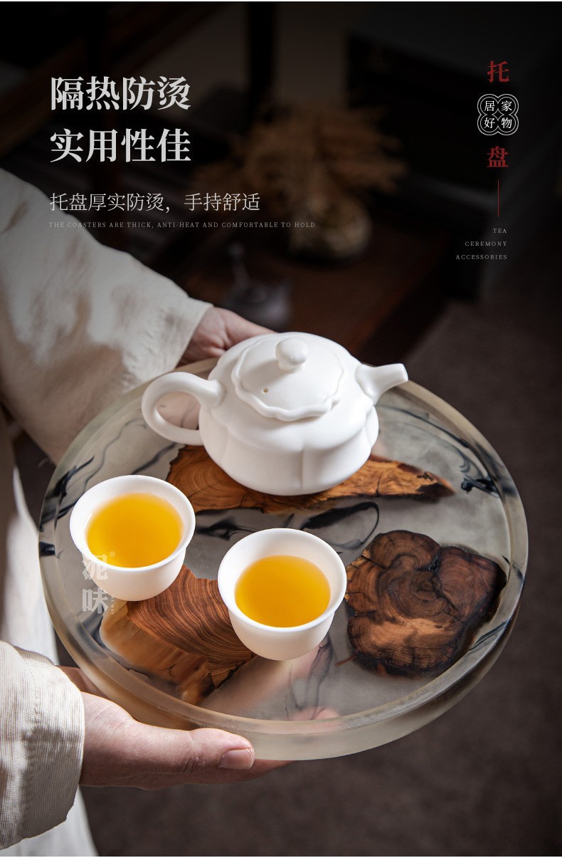Placa de madera entera retro olla bandeja de té seco Zen Kung Fu pequeña mesa de té resina simple bandeja de Té bandeja de té de mar