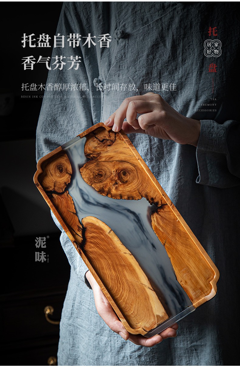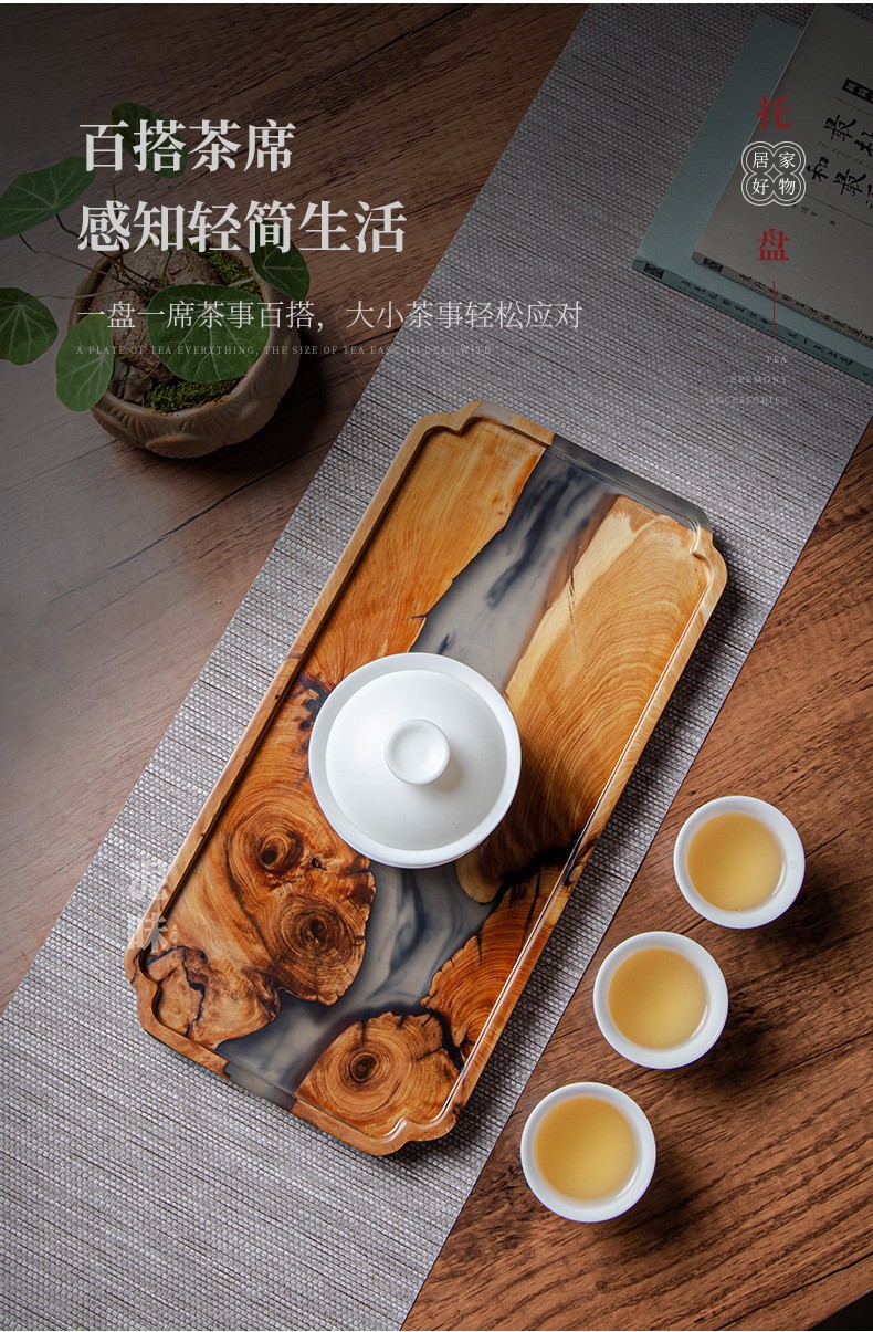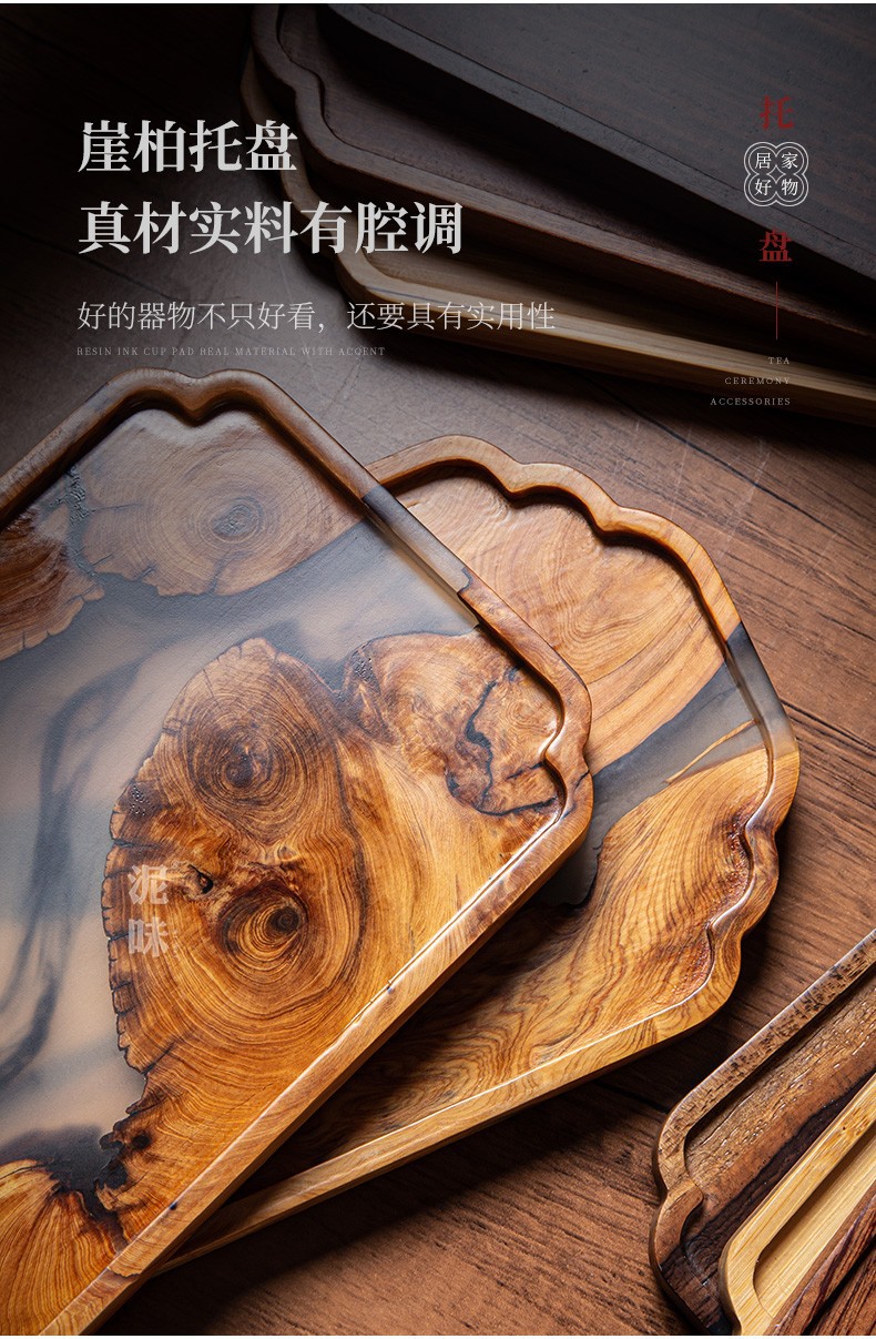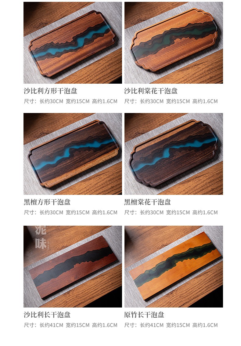 Yabai resina de estilo japonés Nogal Negro placa de madera maciza olla bandeja de té mesa de burbujas secas placa de madera cuadrada larga