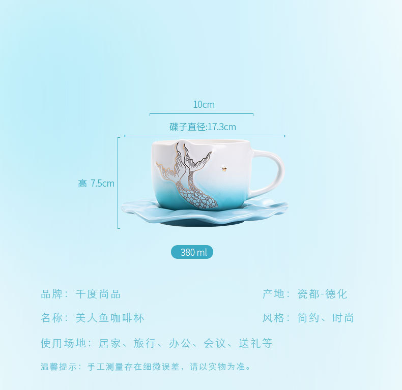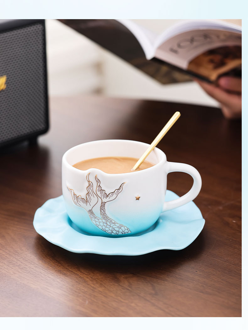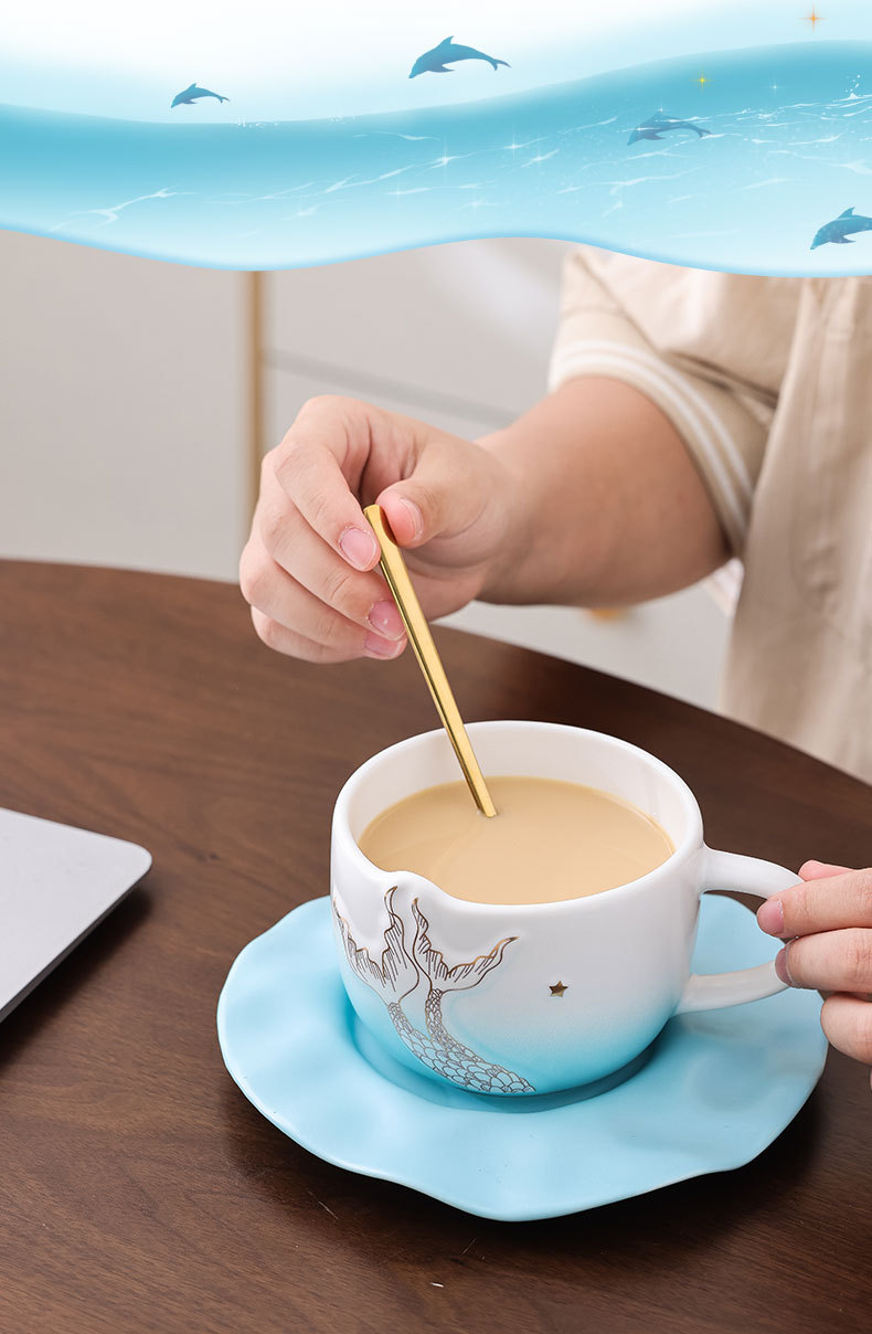 Sirena taza de café taza de concha taza de cerámica souvenirs cafetería de regalo en la tienda impresión de regalos LOGOTIPO publicitario
