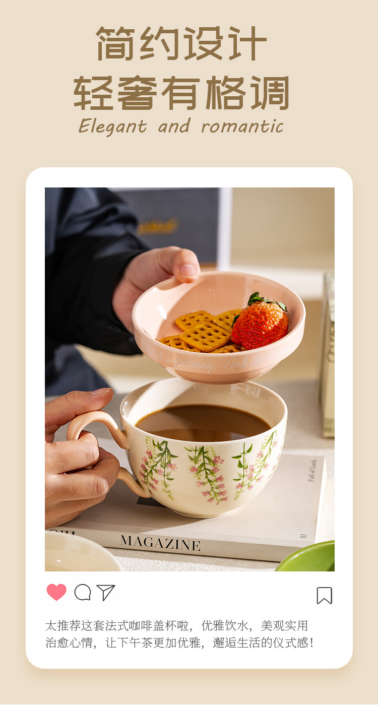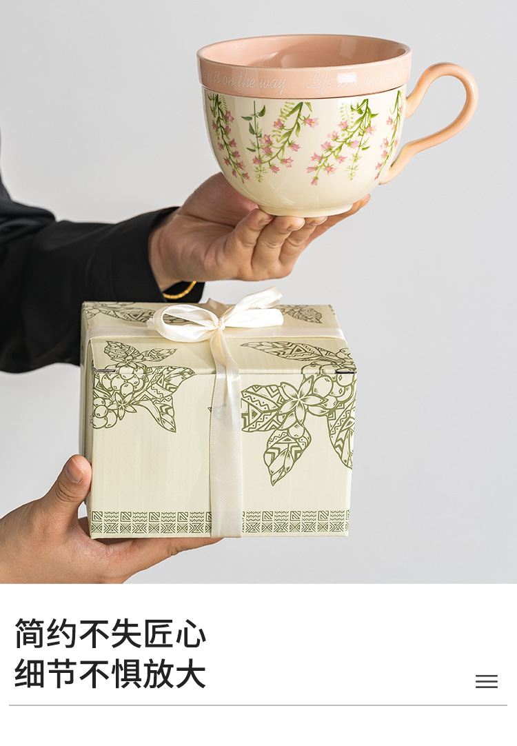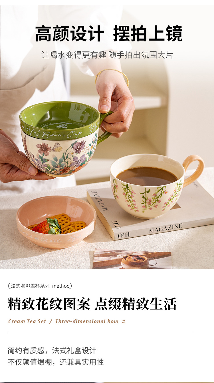 Lilly Wind Bell creativo y práctico taza de cerámica de gran capacidad con tapa multifuncional taza de desayuno taza de leche taza de yogur taza