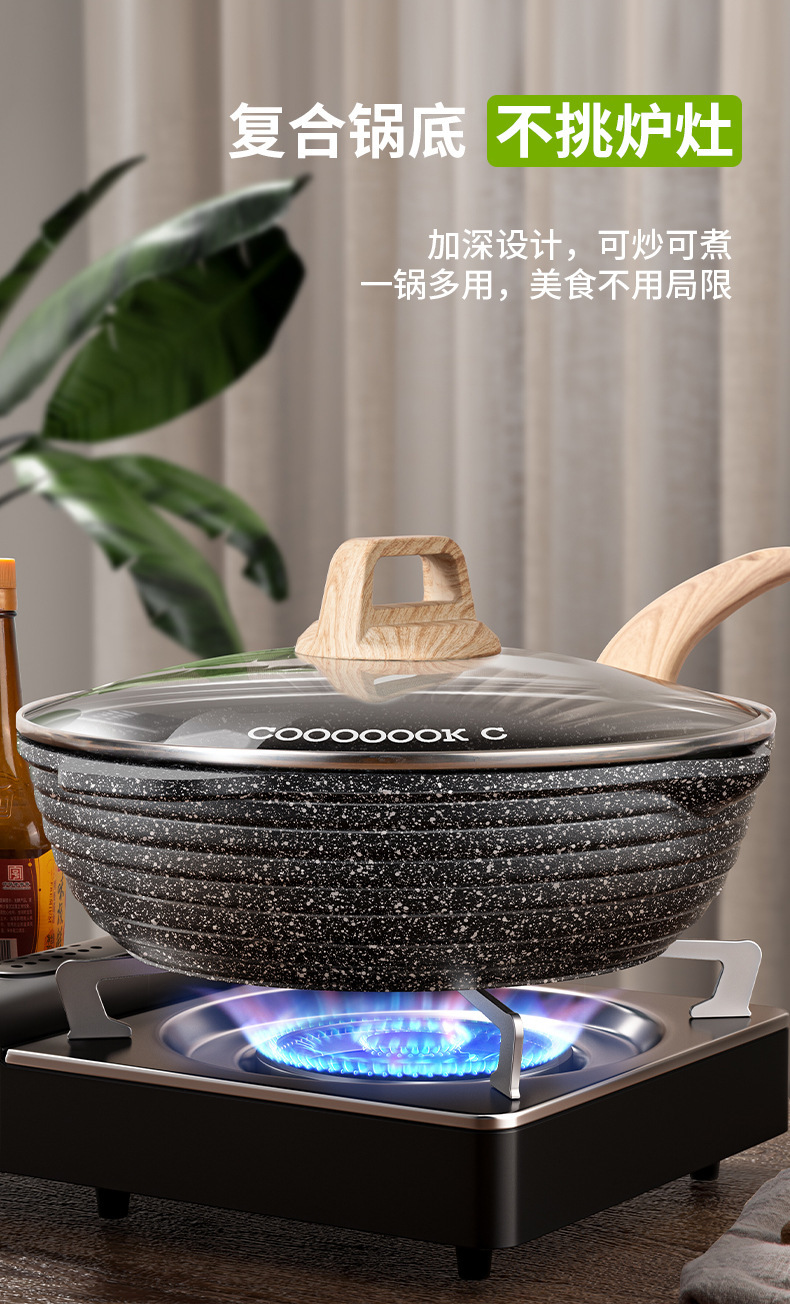 Cooker Dato 'Real Rice Stone Anti-adherent Hot Pot Pressed Hot Pot Household Hot Pot Electromagnetic Gas Cooker Applicable Pan