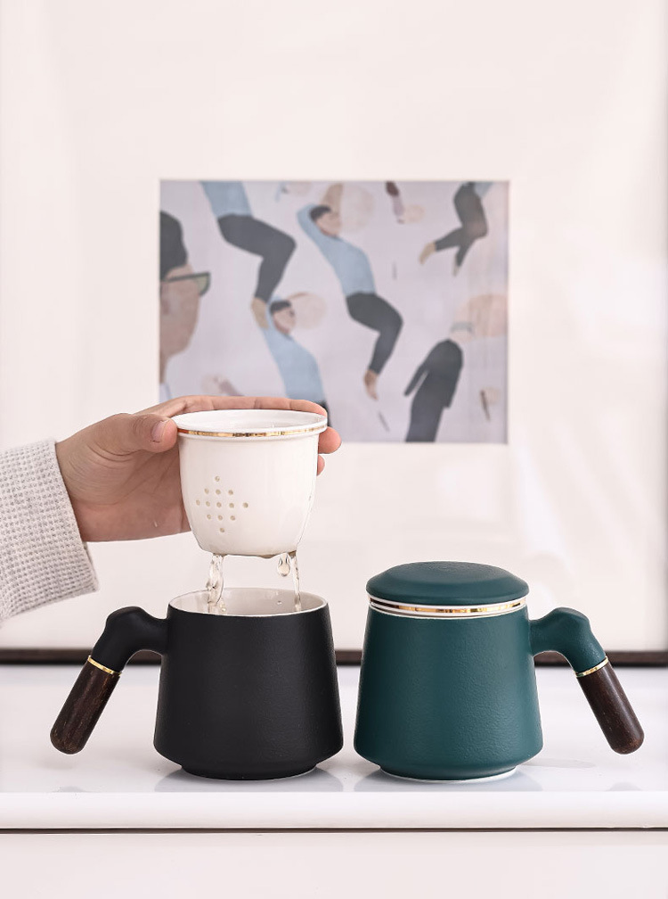 Lubao con tres piezas de taza de cerámica con taza de regalo de mano con taza de té con tapa de té con logotipo tallado