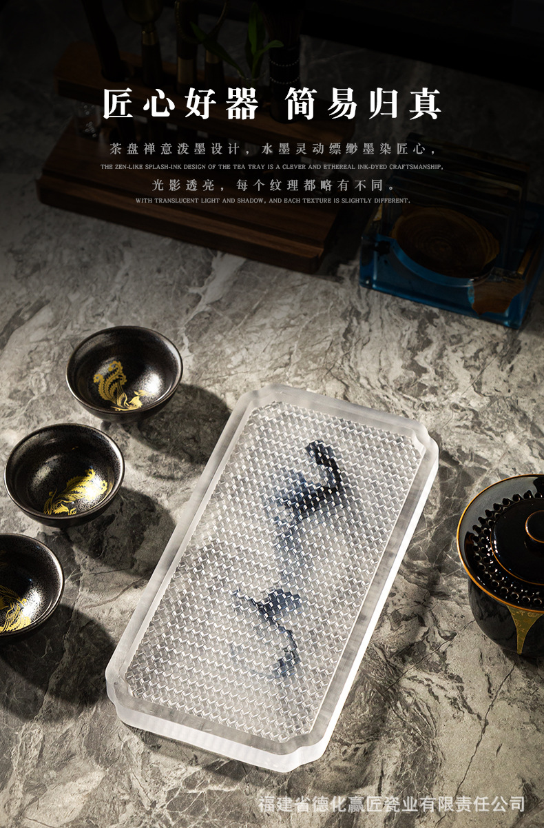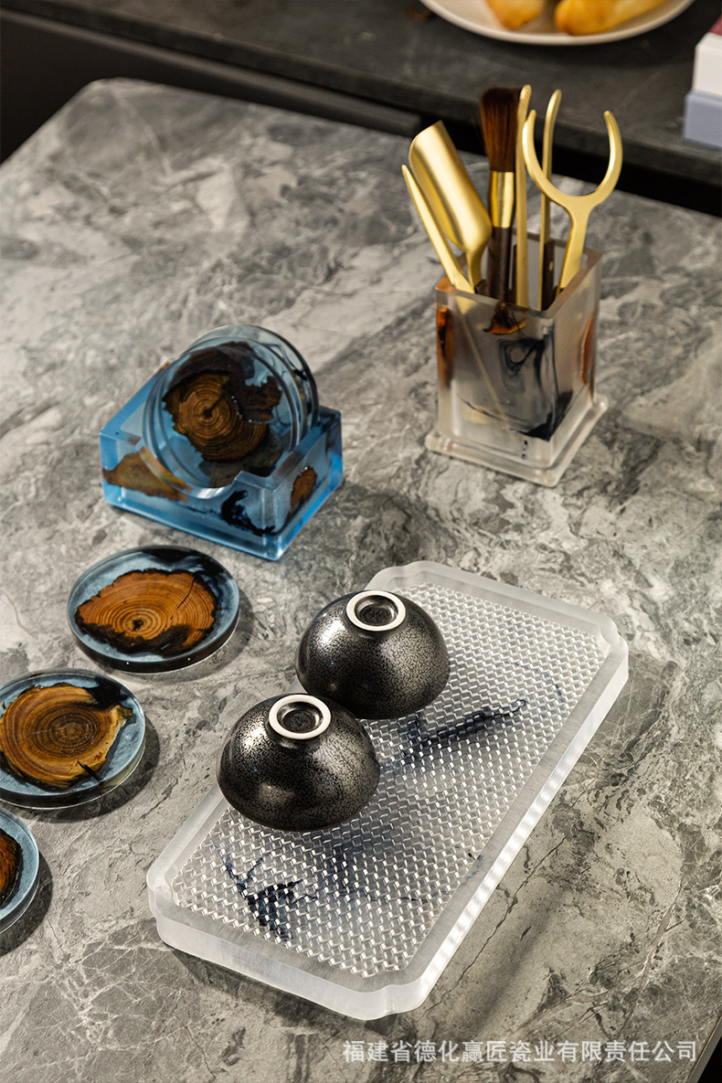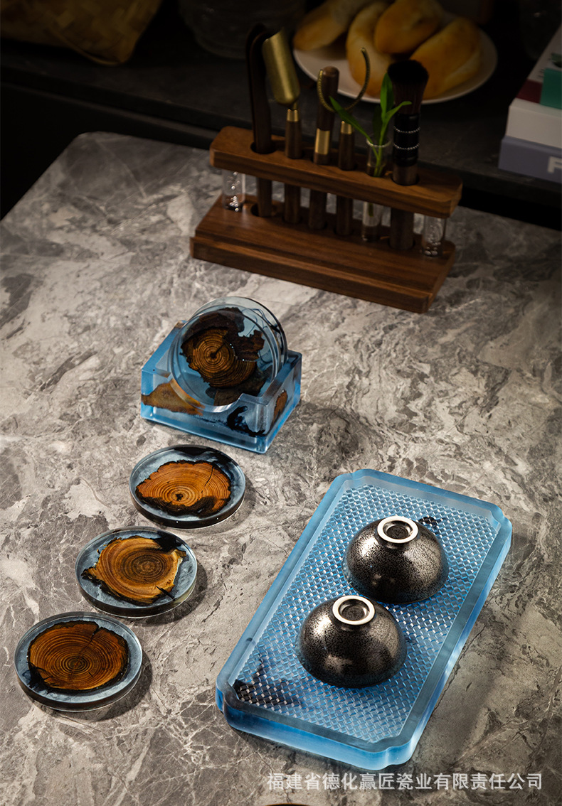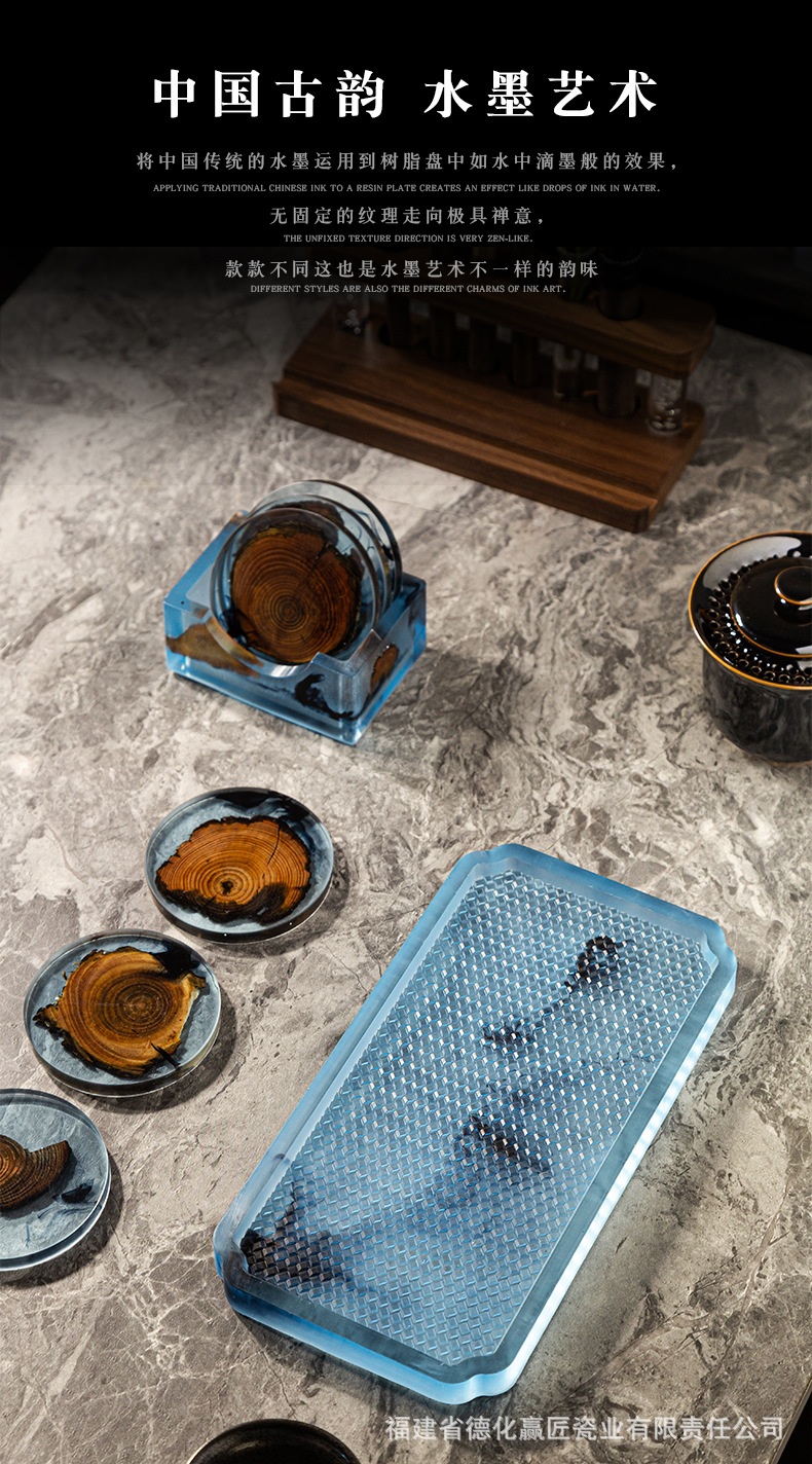 Wengjie tinta transfronteriza seca tabla de té bandeja de madera aislamiento térmico doméstico resina de soporte de goma simple bandeja de té multifuncional