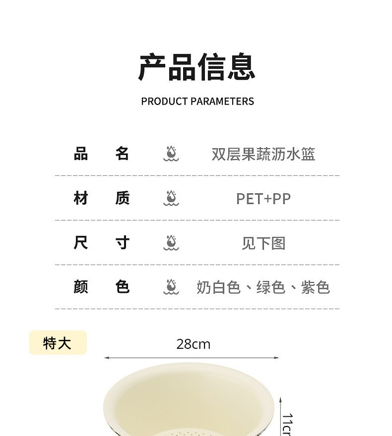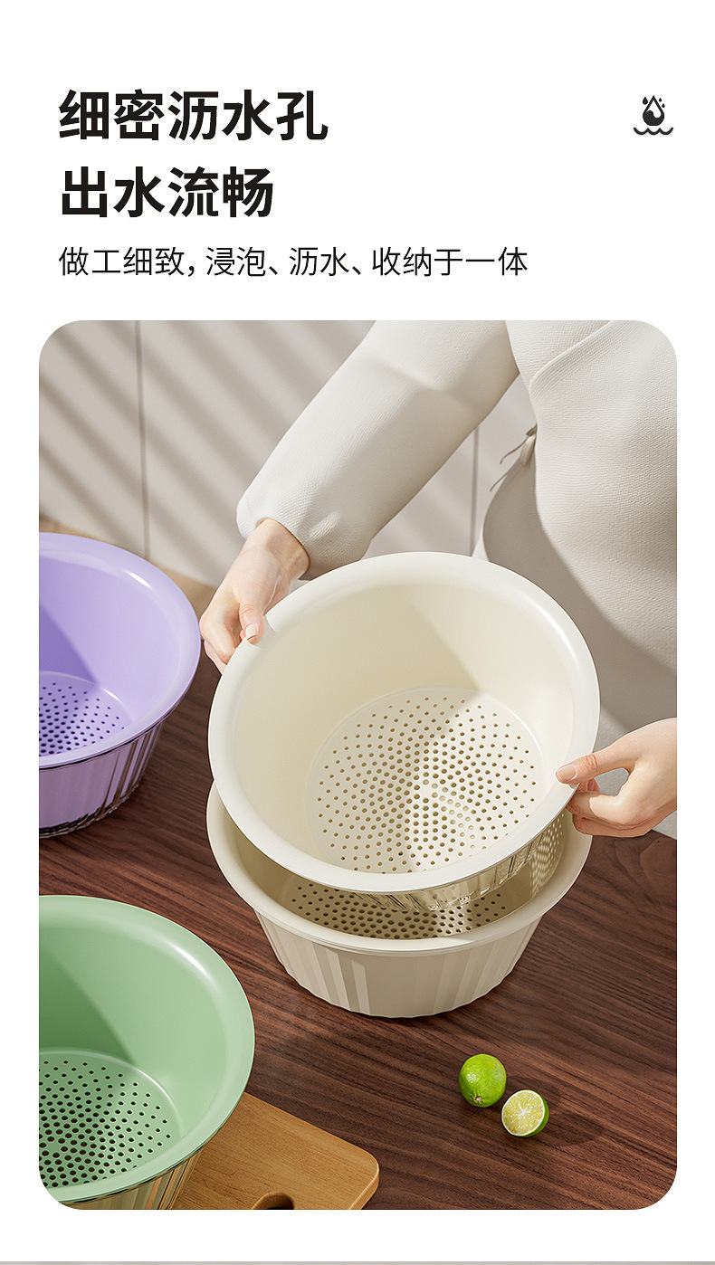 Nuevo fregadero de verduras de doble capa, plato de frutas de plástico para el hogar, cocina gruesa, filtro de agua multifuncional, canasta de lavado de arroz azul