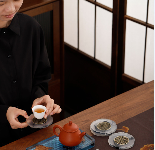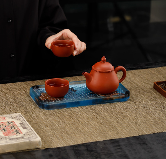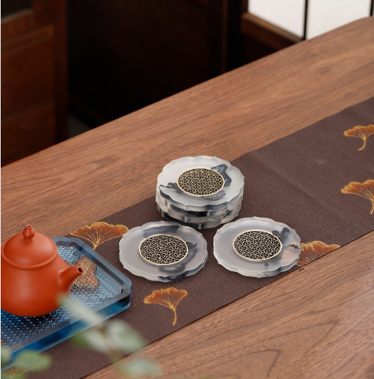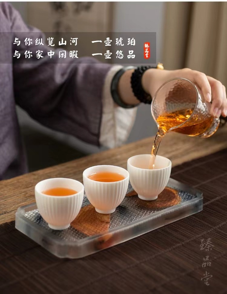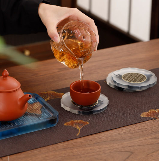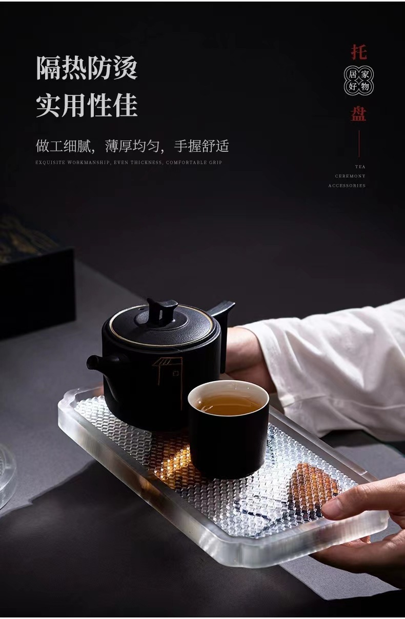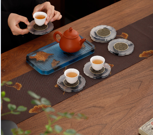 bandeja de burbujas secas de cristal tinta transfronteriza taza de resina aislante de calor bandeja de madera sólida bandeja de té bandeja de tetera de una sola capa