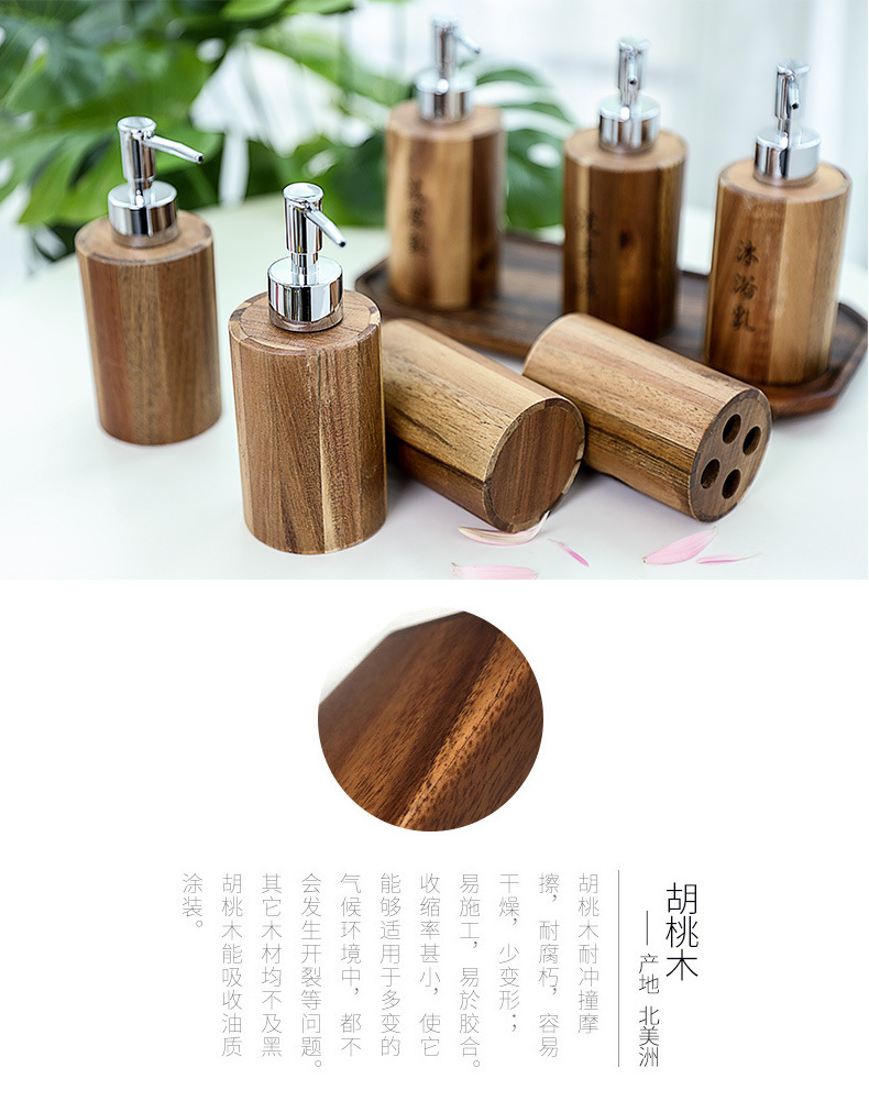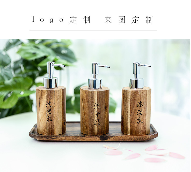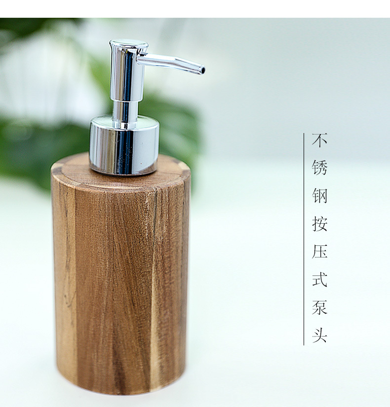 Botella dividida de madera, conjunto de botella de lavado de baño de presión, champú, desinfectante para manos, botella vacía, botella de loción portátil