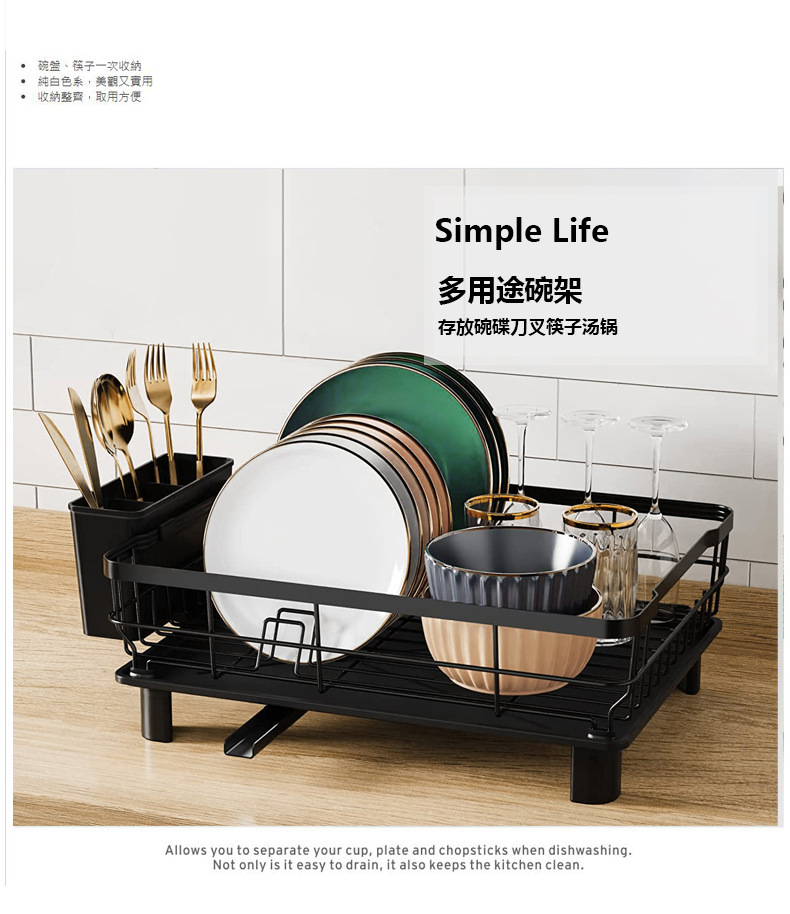 Estante de platos de cocina estante de almacenamiento sin perforación de fábrica venta directa de una sola capa de platos de almacenamiento de platos de mesa de piscina simple creatividad