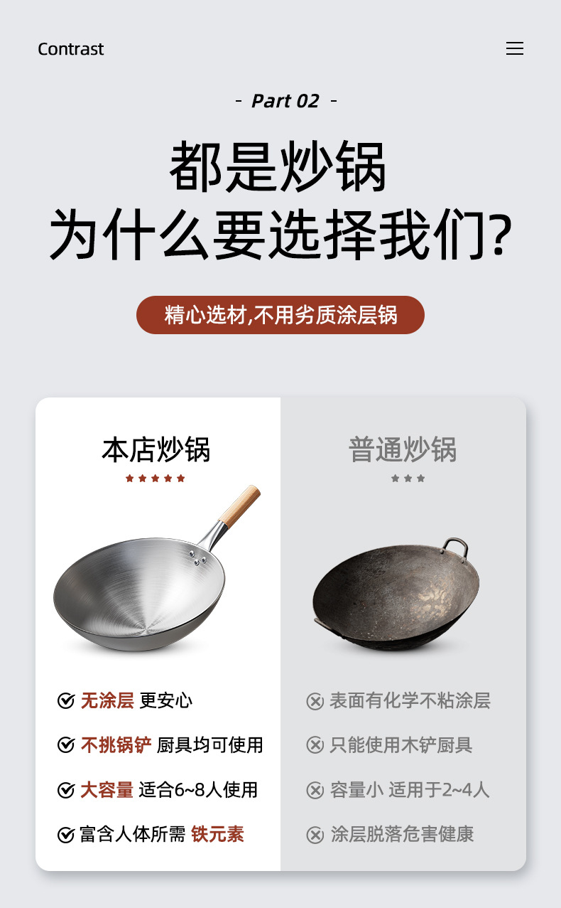 Nuevo estilo antiguo cocinero de hierro para cocinas de cocina de restaurante para cocinas antiadherentes para cocinas de gas sin recubrimiento para salsa al por mayor