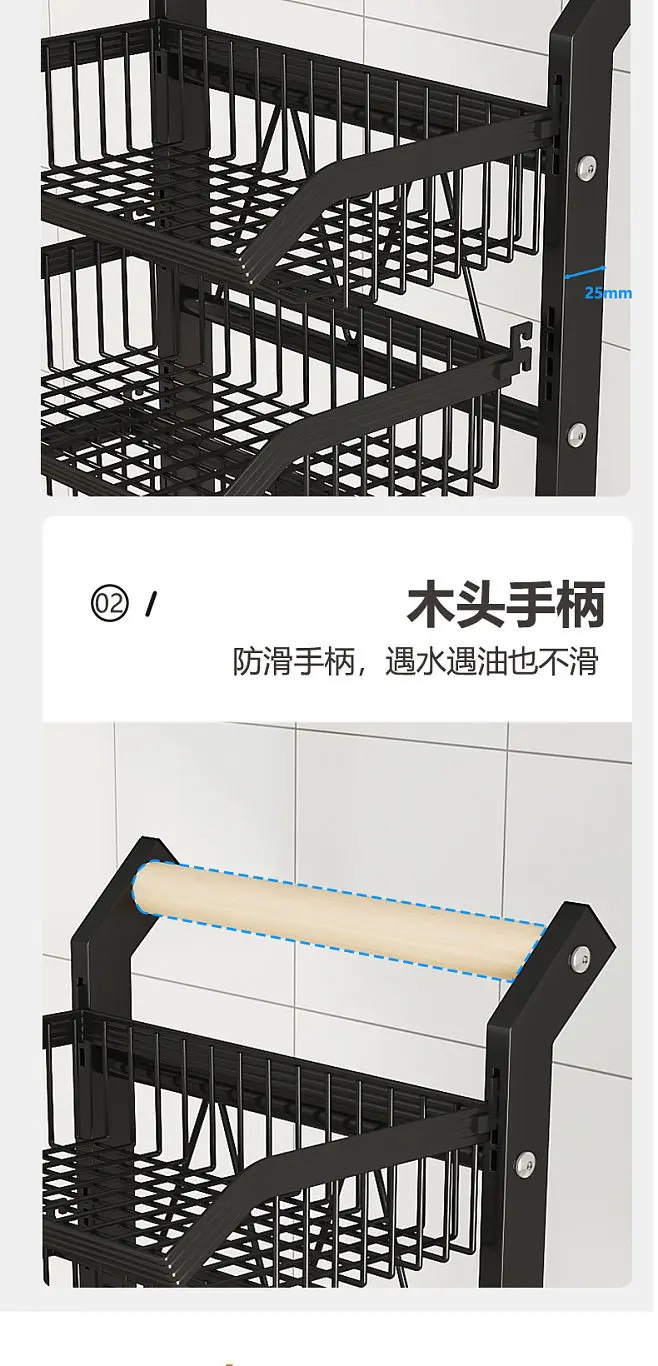 Estante de almacenamiento de cocina desmontable multicapa de carro pequeño tipo fijación de tierra estante de almacenamiento de verduras y frutas de esquinas estrechas