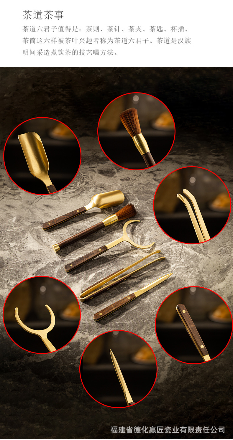 Ceremonia del té transfronteriza seis caballeros combinación conjunto completo de piezas de té kung fu bambú té abrazaderas de té pinzas madera sólida