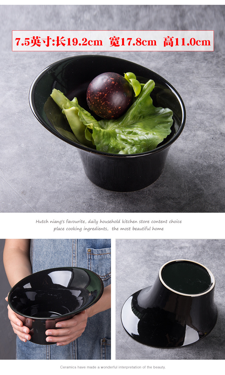 Negro esmerilado tazón de cerámica oblicua olla caliente plato de verduras plato de fruta plato de ensalada
