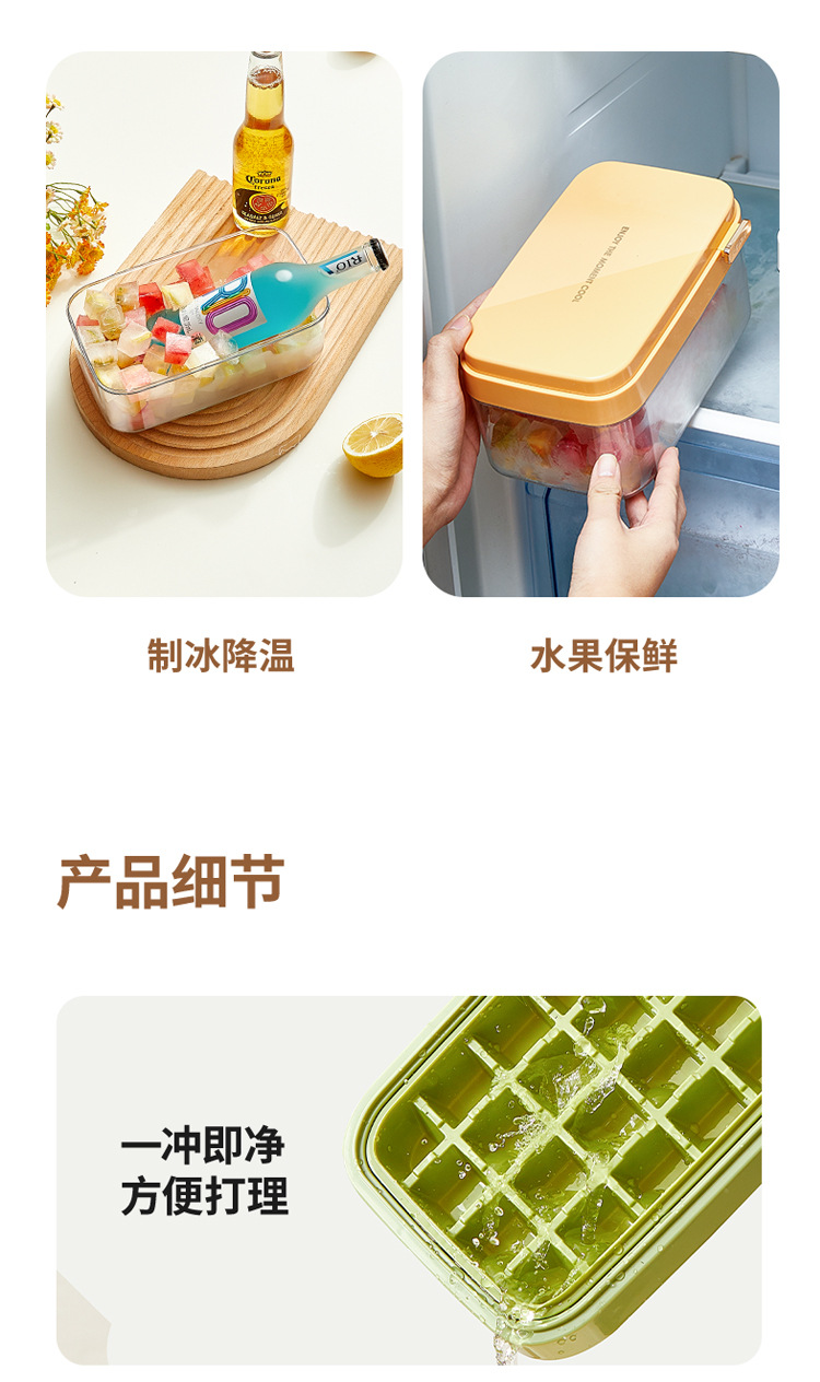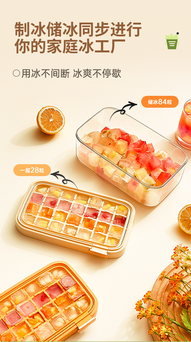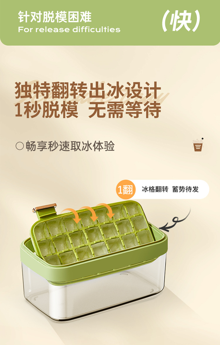 Nuevo molde de hielo flip 28 grados de hielo de grado alimenticio con cubierta caja de almacenamiento de hielo caja de hielo de congelador doméstico al por mayor